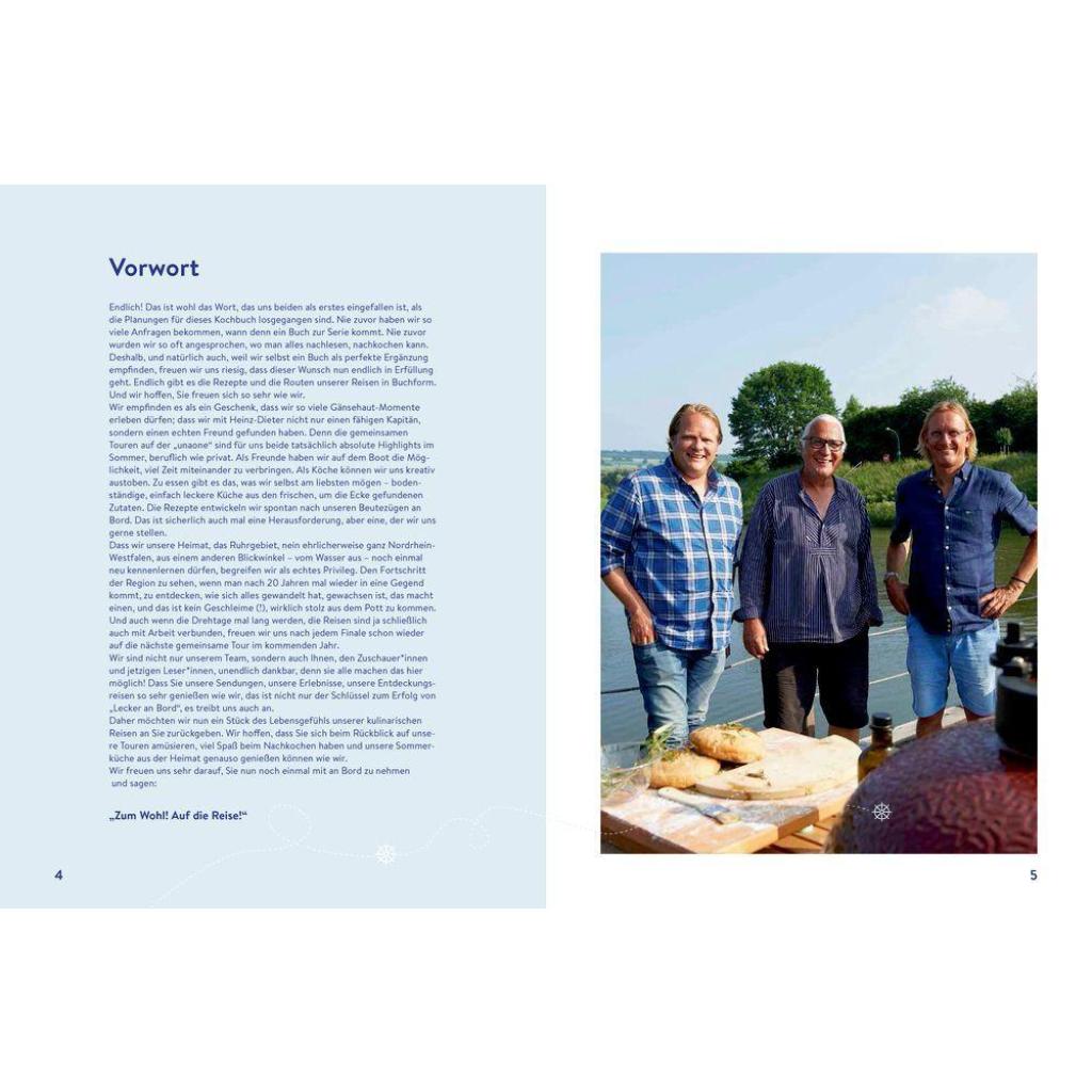 Das Kochbuch zur WDR-Sendung "Lecker an Bord" mit allen Rezepten! An Bord der "unaone" schippern die Fernsehköche Björn Freitag und Frank Buchholz über malerische Flüsse und Kanäle entlang der schönsten Orte in NRW, immer auf der Suche nach kulinarischen Schätzen und neuer Inspiration für köstliche Gerichte. An Land erkunden sie mit dem Rad die Region und zeigen viele Highlights auch abseits der touristischen Pfade. Sie besuchen Menschen, die gute Lebensmittel lieben und für ihre Projekte alles geben. Ob Bio-Fleisch für den Grill oder frisch geerntetes Gemüse - zurück auf dem Hausboot wird mit den regionalen Zutaten einfach und lecker gekocht. Auf der Bootstour von Dorsten nach Rheine, auf der Weser bis nach Lübecke, vom Niederrhein ins Ruhrgebiet oder auf der Route der Industriekultur: Björn Freitag und Frank Buchholz nehmen Sie mit ins wunderschöne NRW und zeigen Ihnen die besten Ausflugstipps und die vielen idyllischen Orte, die unsere Region zu bieten hat. Ein Kochbuch für den Urlaub in der Heimat!