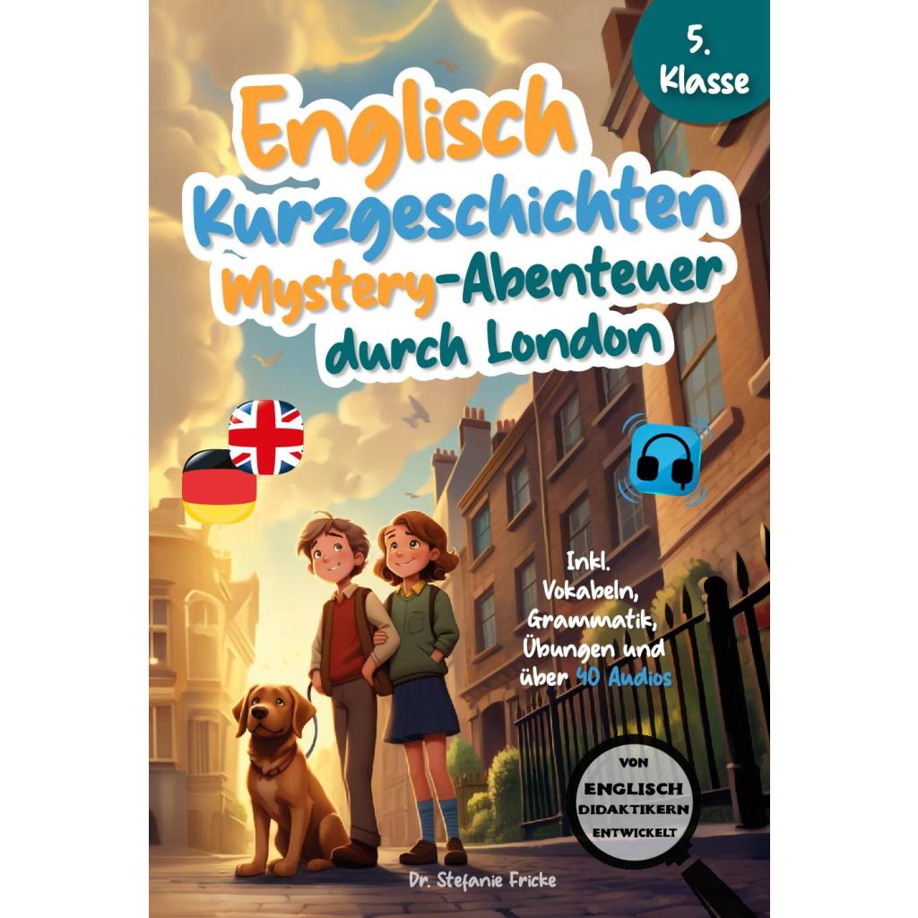 Dieses Buch hilft Kindern, ihre Englischkenntnisse durch Lesen, Hören und Üben zu verbessern und sich mit mehr Freude der englischen Sprache zu nähern. Die Abenteuergeschichten unterstützen Kinder dabei, die Sprache besser zu verstehen und anzuwenden. Dieses Buch bietet folgende Vorteile: Pädagogisch wertvoll: Das Buch wurde von einer Didaktikerin und Mutter von zwei Kindern (10 und 12 Jahre) entwickelt. Sie kennt die Sorgen von Eltern und hat sie bei der Bucherstellung berücksichtigt. Vokabeln lernen Schritt für Schritt: Mit diesem Buch vertiefen Kinder bekannte Vokabeln und lernen spielend leicht neue. Kinder verinnerlichen neue Wörter kontextbezogen und erweitern den Wortschatz Kapitel für Kapitel. Grammatik verbessern: In jedem Kapitel gibt es gut durchdachte und strukturierte Übungen zur Grammatik. So üben Kinder wichtige Grammatikstrukturen ohne Druck und wie nebenbei. Hörverständnis trainieren: Kinder können sich die über 40 Audios immer wieder anhören. So verstehen sie die gesprochene Sprache leichter und legen den Grundstein für die mündliche Interaktion. Denn je besser ein Kind die gesprochene Sprache versteht, desto leichter wird es Grammatik und Wortschatz auch praktisch anwenden. Landeskunde und interkulturelles Wissen: In diesem Lernbuch wird eine spannende Schnitzeljagd quer durch London beschrieben. Beim Lesen lernen Kinder viel über London und berühmte Sehenswürdigkeiten. Englisch Lernen mit mehreren Sinnen: Durch Lesen, Hören und Üben lernen oder wiederholen Kinder bekannte und neue Vokabeln, typische Satz- und Grammatikstrukturen, Textverständnis und die richtige Aussprache von Wörtern.