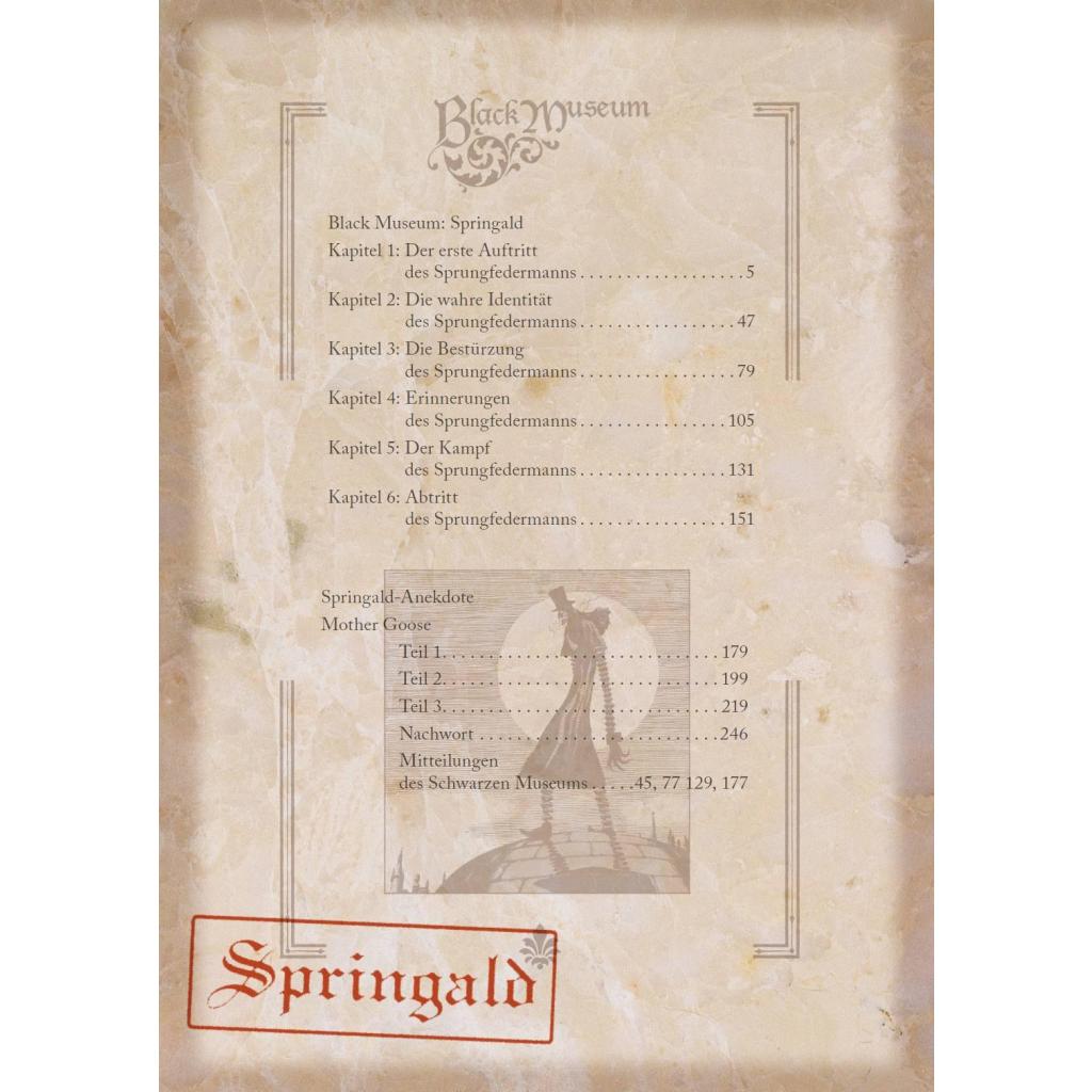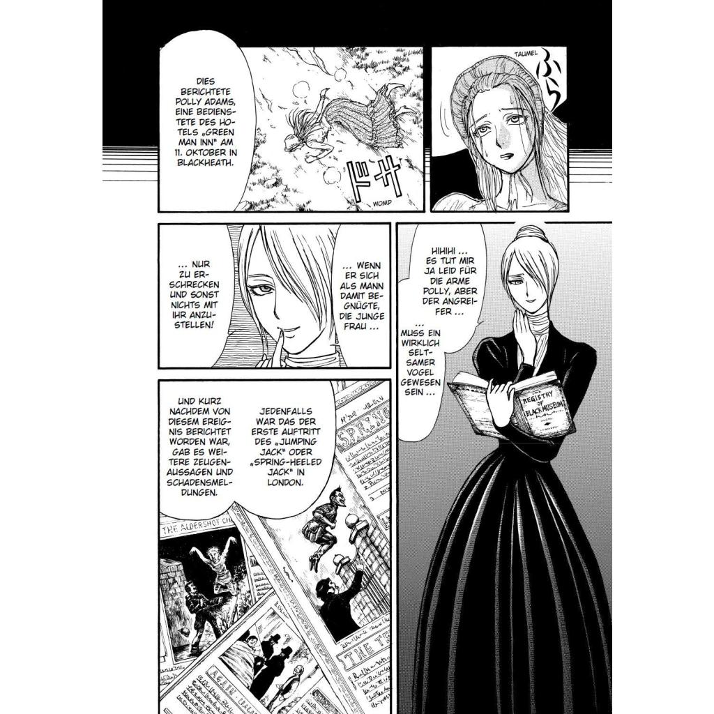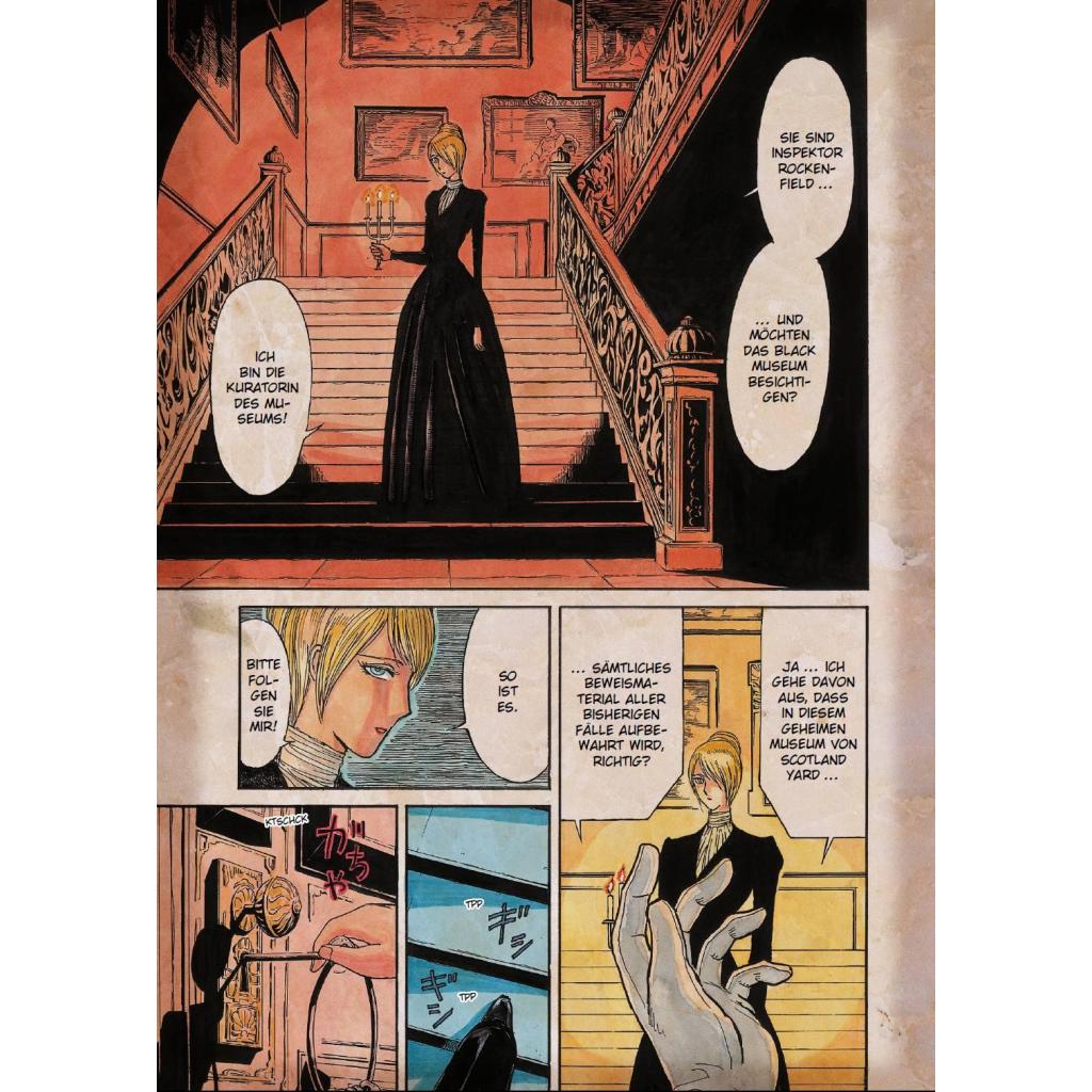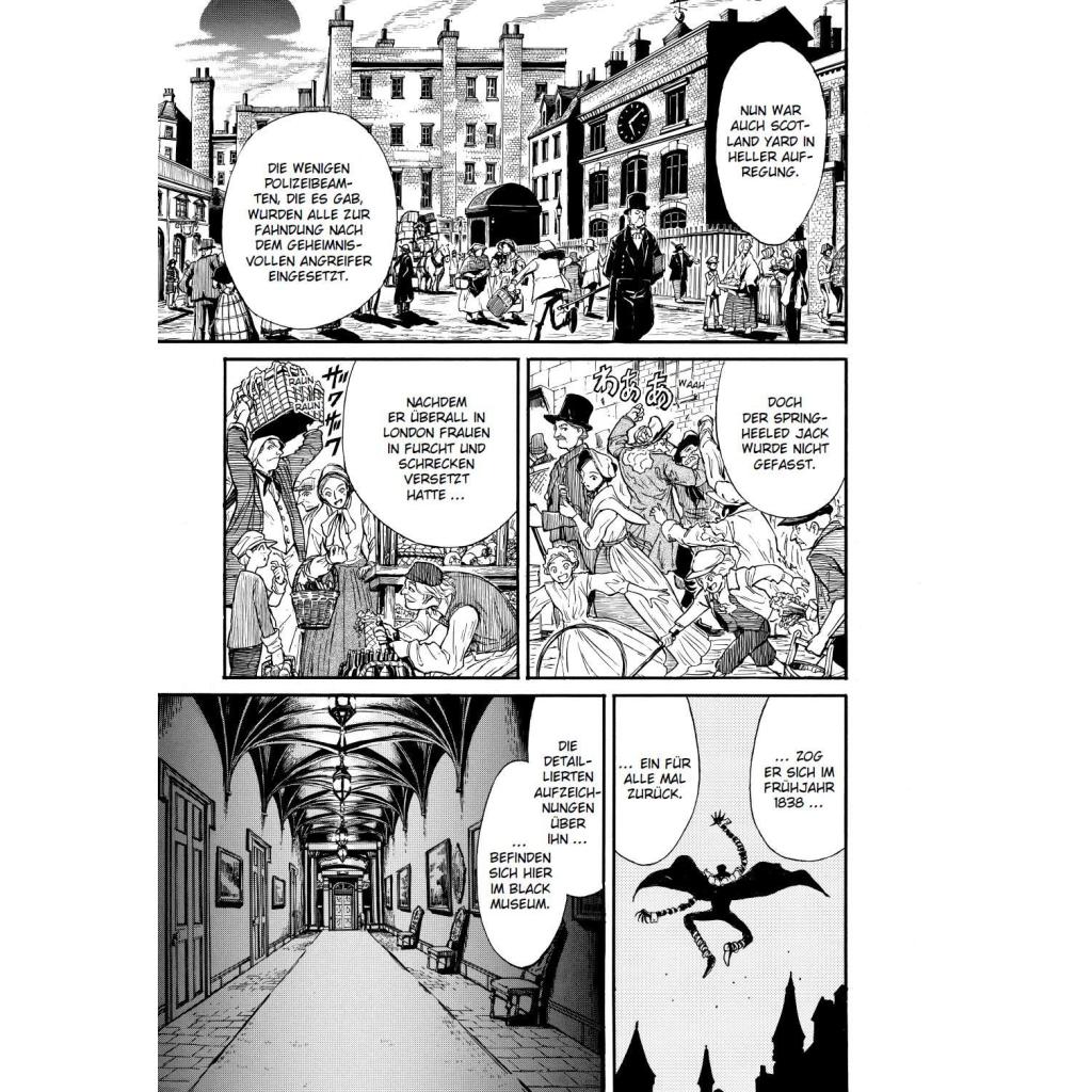 Im Black Museum finden sich Relikte vieler düsterer Fälle Scotland Yards ... Das erwartet dich in diesem Band: Im London des 19. Jahrhunderts treibt ein Serienmörder sein Unwesen, und alle seine Opfer sind Frauen. Zeugen berichten von einem wild lachenden und hochspringenden Phantom. Ist es etwa der "Spring-Heeled Jack", der drei Jahre zuvor mitten in der Nacht Frauen auf den Straßen Londons erschreckt hat? Ein Inspektor der London Metropolitan Police ermittelt und lenkt die Pferdekutsche entschlossen zum Anwesen eines Adligen... Die abgeschlossene Geschichte in einem Band! Für Fans von Detektiv Conan, Death Note und Mystery-Thriller!