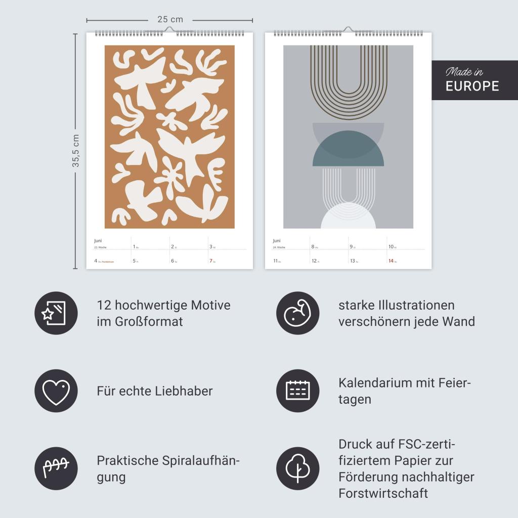 Wochenplaner 2026 in modernem Design für den trendigen Galerie-Look. Wandkalender mit Platz für Termine und Kunst-Postern zum Aufhängen