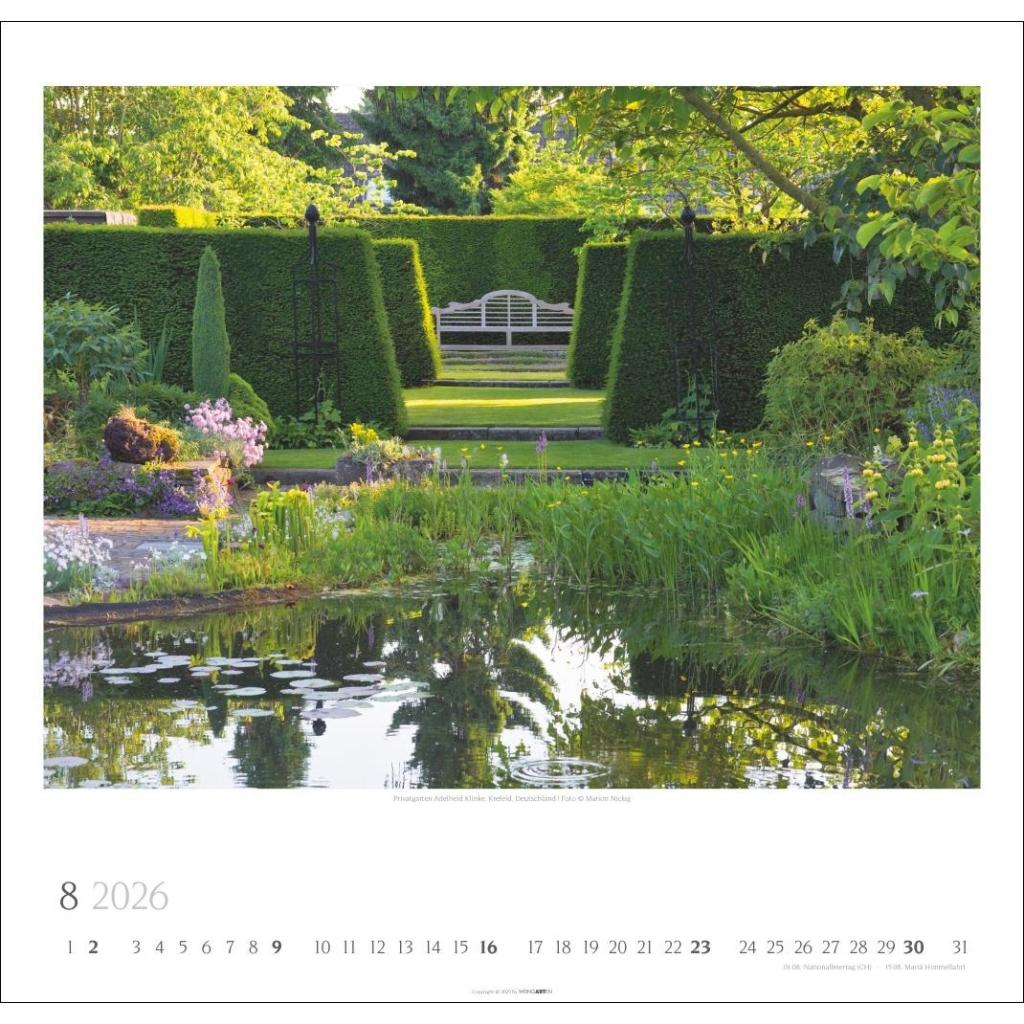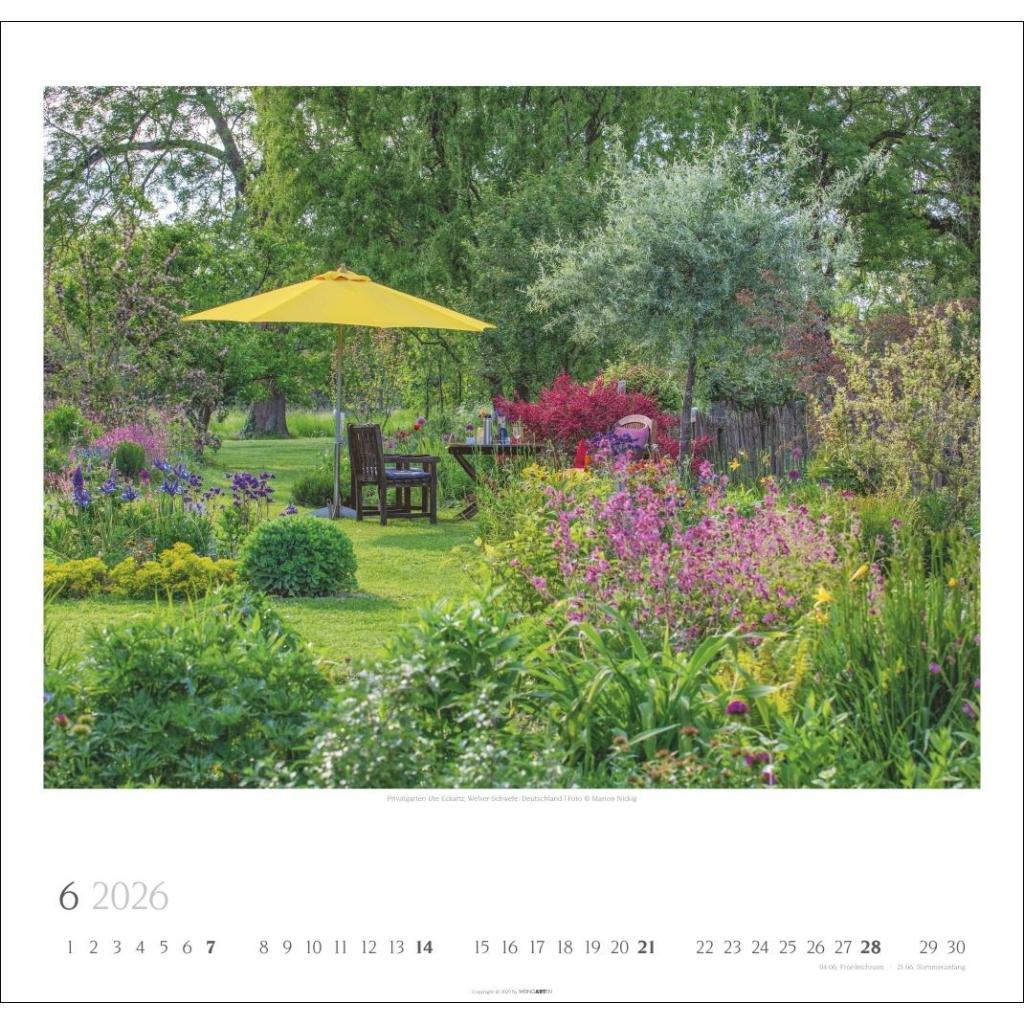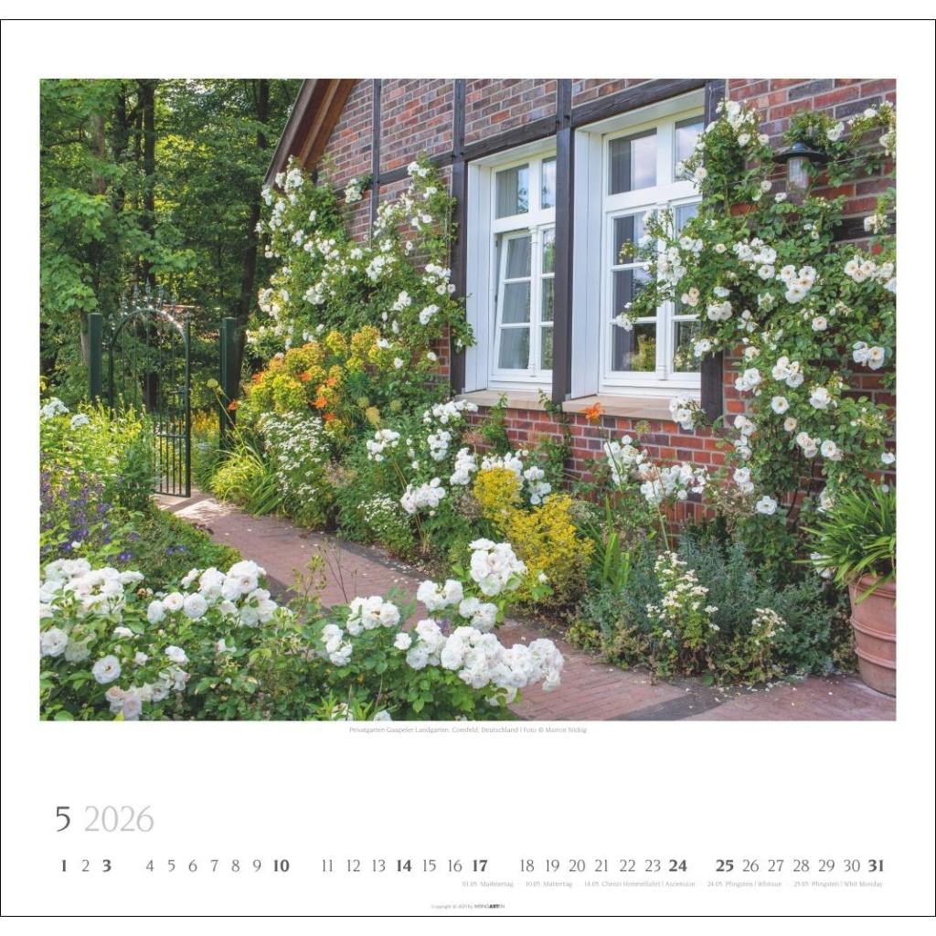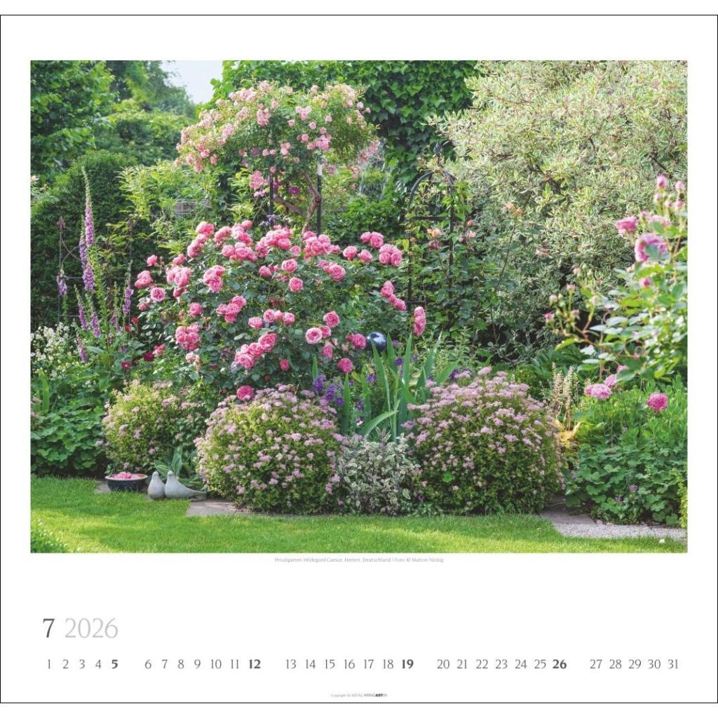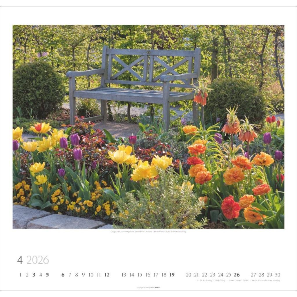 Wandkalender mit 12 Fotos romantischer Gärten. Farbenprächtiger Bildkalender für die Wand. Quadratischer Fotokalender.