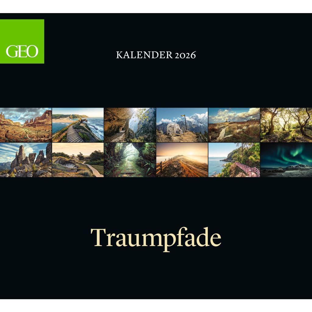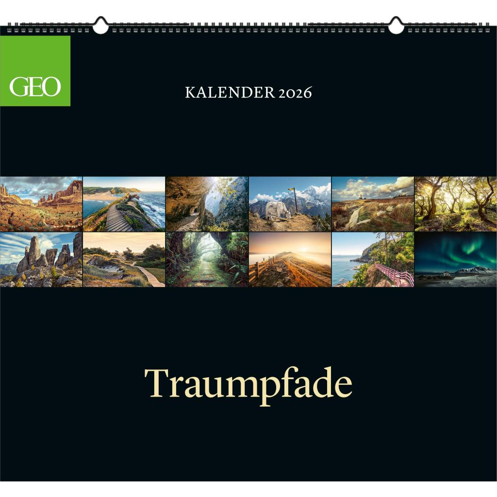 Der GEO Klassiker: Traumpfade 2026 Kalender präsentiert spektakuläre Traumpfade durch die Natur im eindrucksvollen Panorama-Hochformat. Monat für Monat eröffnet er neue Perspektiven auf die Schönheit der Natur – groß, elegant und inspirierend. Highlights: Einzigartige Fotografie: 12 Monatsblätter mit eindrucksvollen Naturaufnahmen - Panorama-Hochformat: 60 x 55 cm – vertikales Format für eindrucksvolle Bildwirkung - Deutsches Kalendarium: Dezente Gestaltung für klare Übersicht ohne Ablenkung - Hochwertige Ausstattung: Praktische Spiralbindung für sicheres Aufhängen & bequemes Umblättern - Geschenk-Edition: Edler Schuber – ideal zum Verschenken Der GEO Klassiker:Traumpfade Kalender 2026 vereint hochwertige Naturfotografie mit außergewöhnlichem Format – ein echtes Highlight für die Wand und ein stilvolles Geschenk für Naturfreunde.