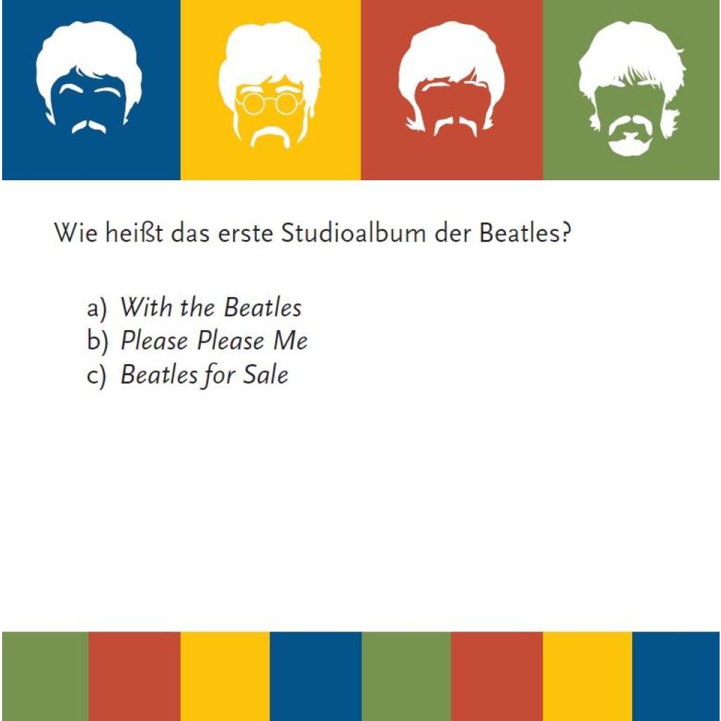 | Keyword: | allgemeinwissen quiz; beatles; beatles hits; beatles songs; die beatles; erwachsenenspiele; fragen und antworten; george harrison; gesellschaftsspiele für erwachsene; here comes the sun; hey jude; john lennon; let it be; love me do; lustige rätsel; musik; paul mccartney; penny lane; quizfragen; quizfragen allgemeinwissen; quizspiele; ringo; ringo starr; the beatles; the beatles let it be; wissensquiz; yellow submarine |