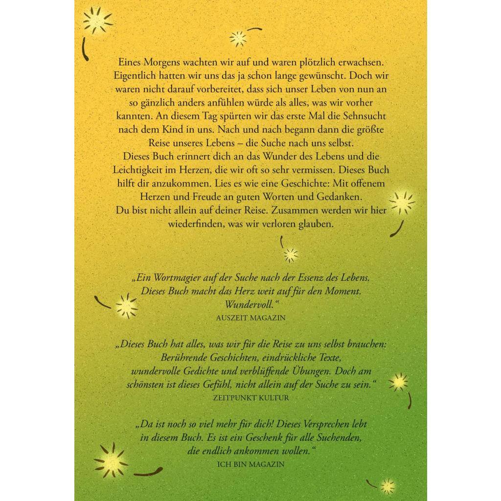Eines Morgens wachten wir auf und waren plötzlich erwachsen. Eigentlich hatten wir uns das ja schon lange gewünscht. Doch wir waren nicht darauf vorbereitet, dass sich unser Leben von nun an so gänzlich anders anfühlen würde als alles, was wir vorher kannten. An diesem Tag spürten wir das erste Mal die Sehnsucht nach dem Kind in uns. Nach und nach begann dann die größte Reise unseres Lebens - die Suche nach uns selbst. Dieses Buch erinnert dich an das Wunder des Lebens und die Leichtigkeit im Herzen, die wir oft so sehr vermissen. Dieses Buch hilft dir anzukommen. Lies es wie eine Geschichte: Mit offenem Herzen und Freude an guten Worten und Gedanken. Du bist nicht allein auf deiner Reise. Zusammen werden wir hier wiederfinden, was wir verloren glauben.