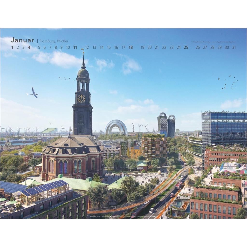 Eine Reise in die Welt von morgen. Visionärer Jahres-Wandkalender mit faszinierenden Beispielen für grüne Architektur in deutschen Städten der Zukunft