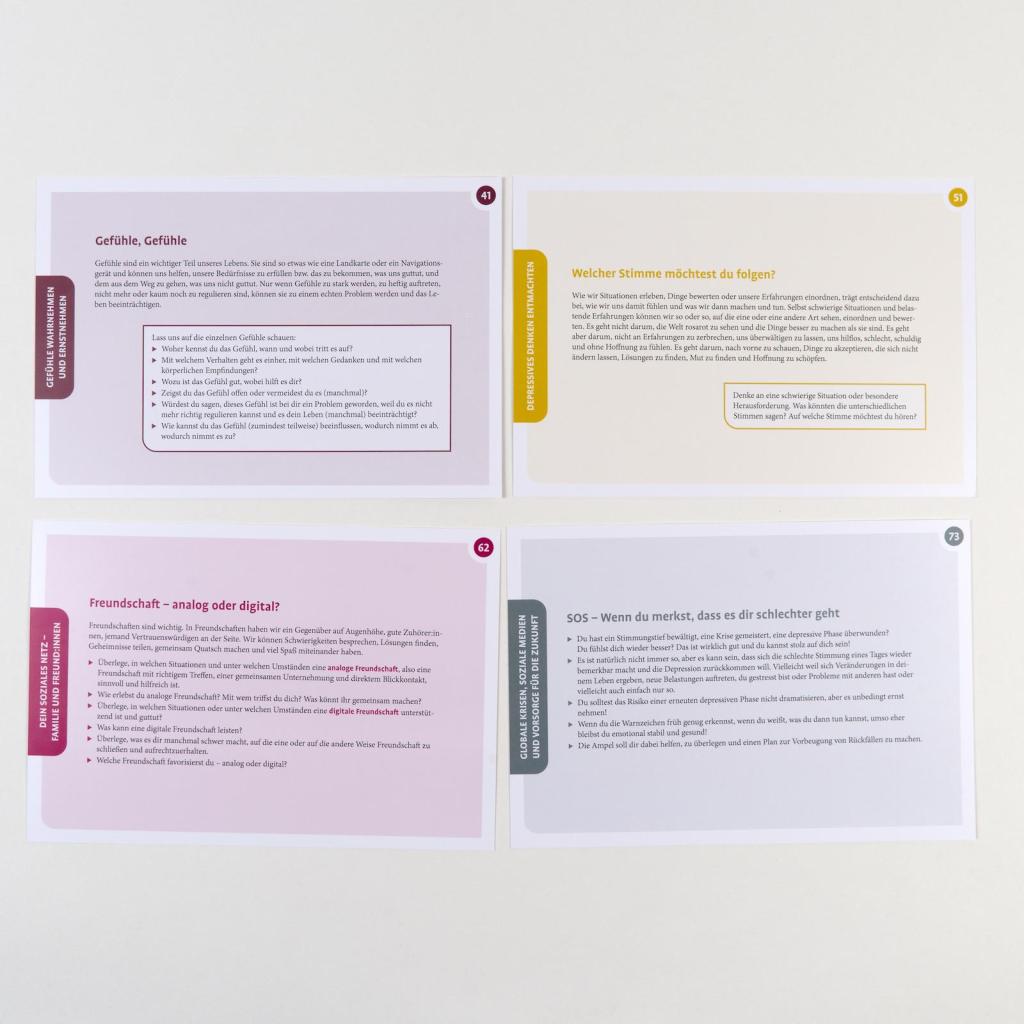 | Keyword: | Affektive Störung; Affektstörung; Bildkarten; Depression; Jugendliche; Jugendpsychiatrie; Jugendpsychotherapie; Kinder- und Jugendlichenpsychiatrie; Kinder- und Jugendlichenpsychotherapie; Kognitive Verhaltenstherapie; Therapiekarten; Therapiematerial |