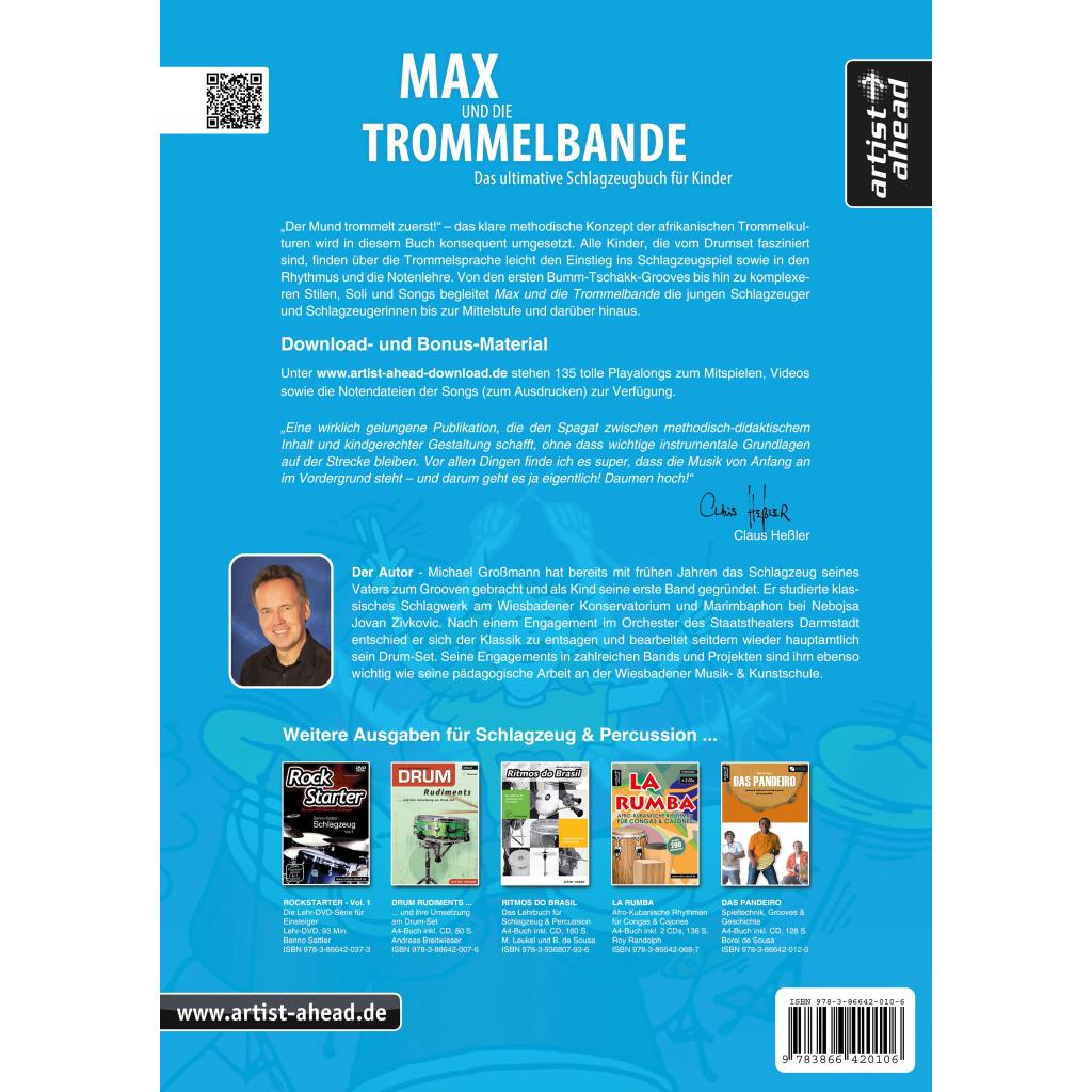 "Der Mund trommelt zuerst!" ... das klare methodische Konzept der afrikanischen Trommelkulturen wird in diesem Buch konsequent umgesetzt. Alle Kinder, die vom Drumset fasziniert sind, finden über die Trommelsprache leicht den Einstieg ins Schlagzeugspiel sowie in den Rhythmus und die Notenlehre. Von den ersten Bumm-Tschak-Grooves bis hin zu komplexeren Stilen, Soli und Songs begleitet Max und die Trommelbande die jungen Schlagzeuger und Schlagzeugerinnen bis zur Mittelstufe und darüber hinaus. Download, Bonus-Material & CD Unter artist-ahead-download.de stehen 135 tolle Playalongs zum Mitspielen, Videos sowie die Notendateien der Songs (zum Ausdrucken) zur Verfügung. Eine Audio-CD mit allen Hörbeispielen & Playalongs zu diesem Buch ist in unserem Onlineshop unter artist-ahead.de erhältlich. "Eine wirklich gelungene Neuerscheinung, die den Spagat zwischen methodisch-didaktischem Inhalt und kindgerechter Gestaltung schafft, ohne dass wichtige instrumentale Grundlagen auf der Strecke bleiben. Vor allen Dingen finde ich es super, dass die Musik von Anfang an im Vordergrund steht - und darum geht es ja. Daumen hoch!" - Claus Heßler .