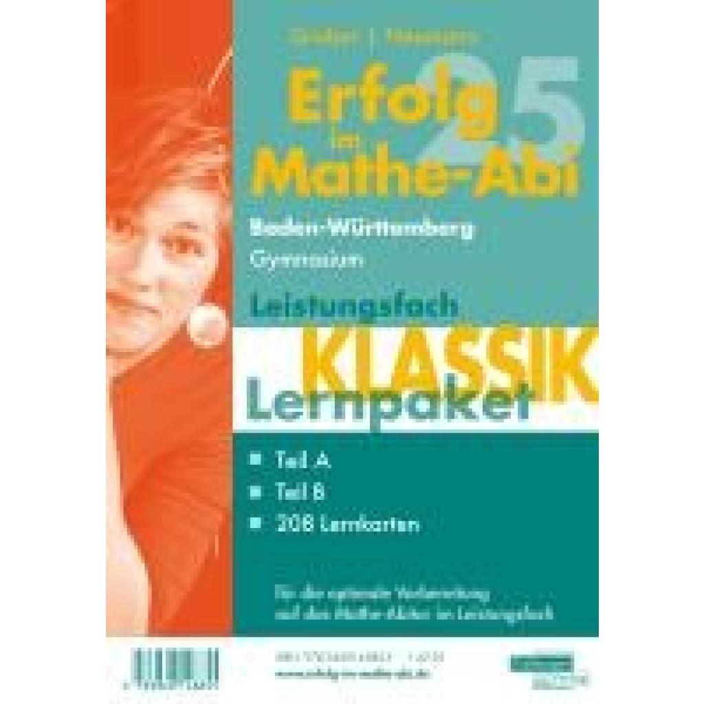 Lernpaket Leistungsfach 'Klassik' Baden-Württemberg 2025 Dieses Paket enthält die Bücher für Teil A und Teil B für das Abitur im Leistungsfach 2025 mit den inhaltlich perfekt an das neue Abitur angepassten Abituraufgaben von 2022 bis 2024 sowie 208 Lernkarten mit den wichtigen Formeln fürs Abitur. Lernkarten: In Baden-Württemberg sind im Pflichtteil des Leistungsfachs weder Taschenrechner noch Formelsammlung erlaubt. Alles was gefragt wird, muss man "im Kopf" haben. Die wichtigen Formeln für das Abitur 2025 sind auf diesen Lernkarten zusammengestellt. Einfache Rechenregeln sind mit einem gefüllten Kästchen markiert; zwei gefüllte Kästchen stehen für das geforderte Abiturwissen. Lernkarten sind eine bewährte Methode, solche Zusammenhänge zu lernen und sich dauerhaft zu merken. Teil A (bislang Pflichtteil): Mathematik lernen sollte nicht daran scheitern, dass man schon am Anfang einer Aufgabe hängen bleibt, zum Beispiel weil man nicht mehr weiß, welche Ableitungsregel zu benutzen ist. Wir möchten begleitend zum Unterricht einen guten Einstieg in das Abitur ermöglichen. Das dazu notwendige Üben fällt leichter, wenn schnell Erfolgserlebnisse auftreten. Das Übungsbuch für Teil A ist daher so konzipiert, dass man mit überschaubaren Aufgaben schnell zum Ziel kommt. So wächst das Selbstvertrauen, das Üben gelingt besser und die Angst vor der Mathematikprüfung sinkt. Teil B (bislang Wahlteil): Das Übungsbuch für Teil B ist ideal für die Endphase der Vorbereitung, wenn die Aufgaben für Teil A beherrscht werden und man mit Aufgaben auf Prüfungsniveau Teil B simulieren möchte. Den Schwerpunkt bilden anspruchsvolle anwendungsbezogene Aufgaben, die mithilfe eines wissenschaftlichen Taschenrechners bearbeitet werden können. Gefordert wird hier vor allem die Fähigkeit, Zusammenhänge herzustellen und Lösungsstrategien zu entwickeln. Mit diesem Paket kann man sich optimal auf das Mathematik-Abitur 2025 im Leistungsfach in Baden-Württemberg vorbereiten - und gegenüber dem Einzelkauf deutlich sparen.