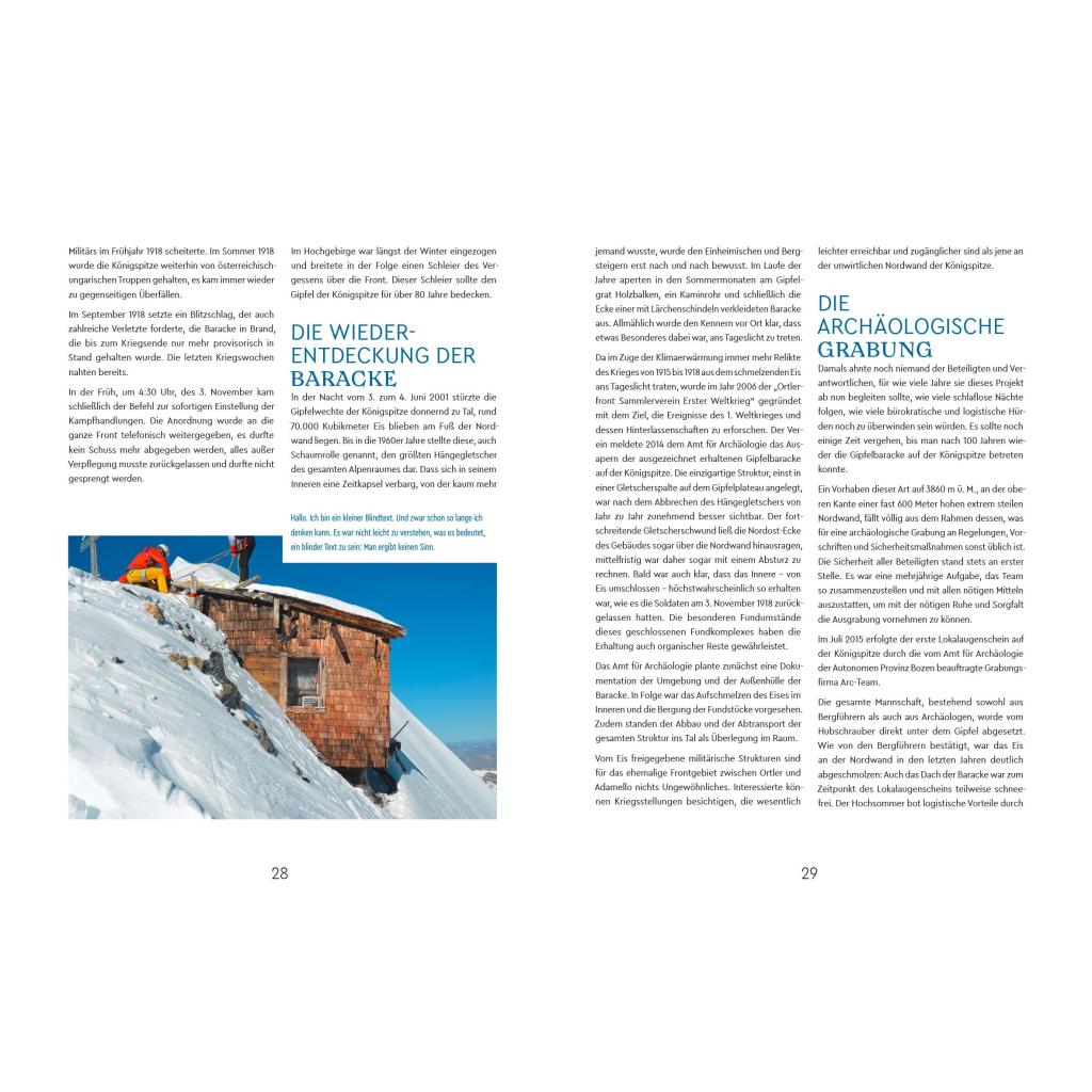 | Keyword: | Erderwärmung; Erster Weltkrieg; Gebirgskrieg; Gletscherarchäologie; Gletscherschwund; Klimawandel; Kriegsrelikte; Königspitze; Lawinen; Militärbaracke; Ortler; Rupert Gietl; Soldaten; Südtirol; Vinschgau; exklusiver Bergungsbericht |