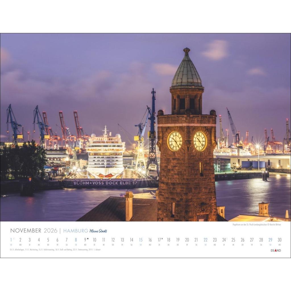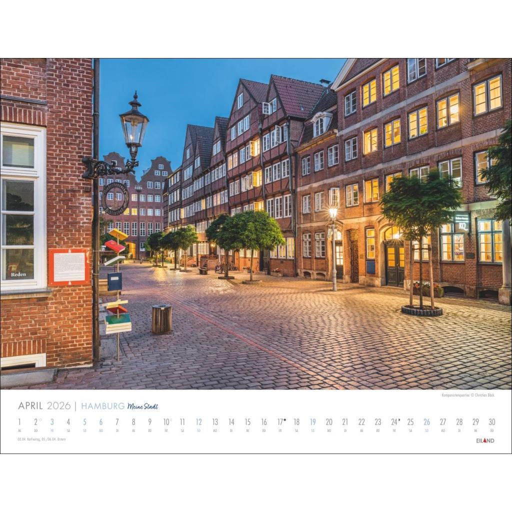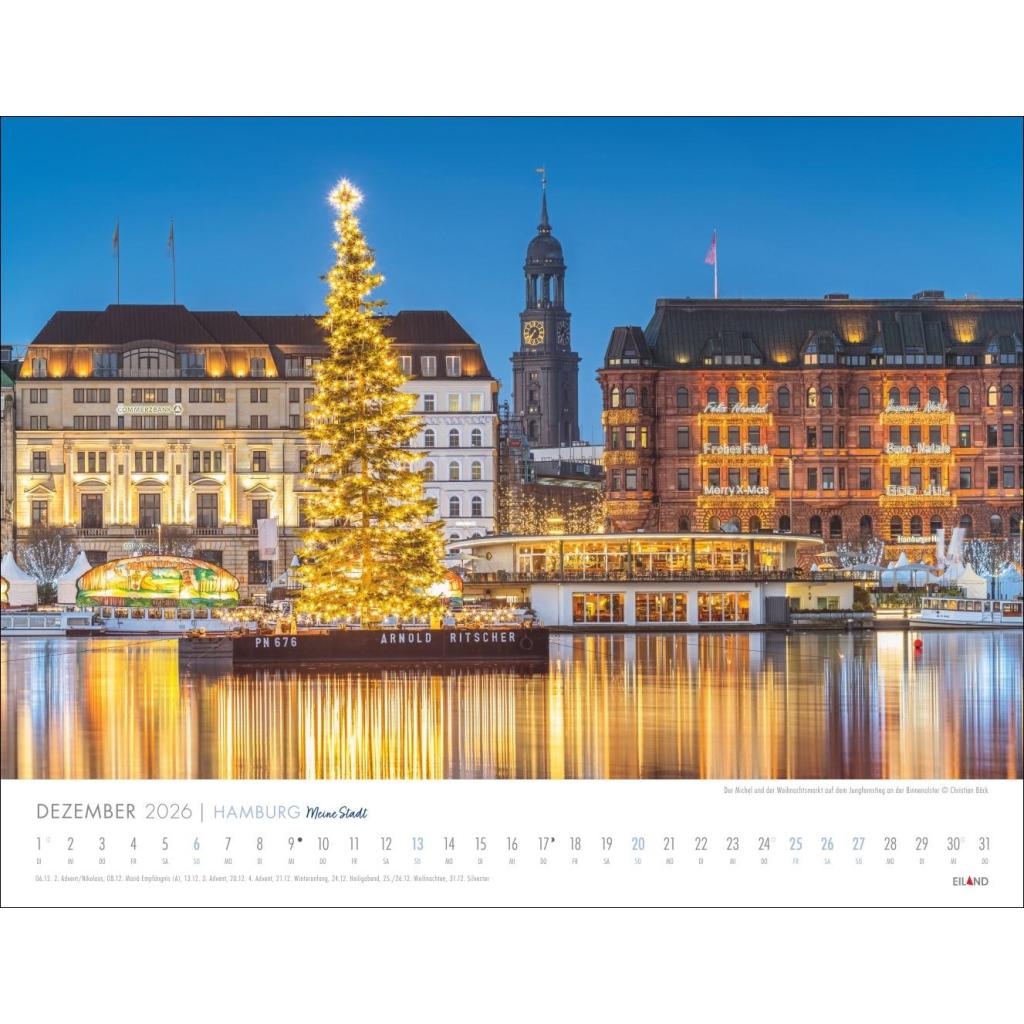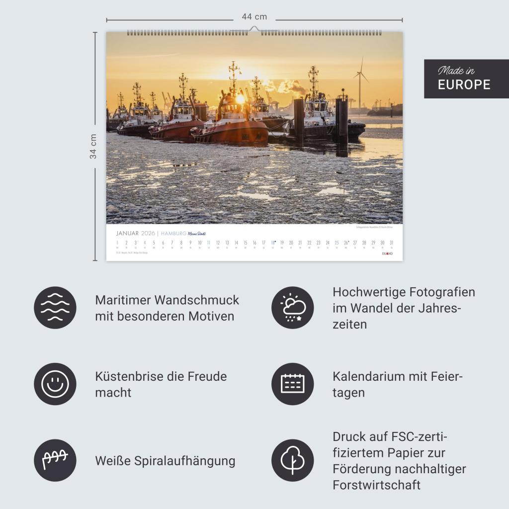 Reise-Wandkalender mit 12 atemberaubenden Fotografien der Hansestadt. Städte-Kalender 2026 zum Aufhängen. 44 x 34 cm. Querformat.