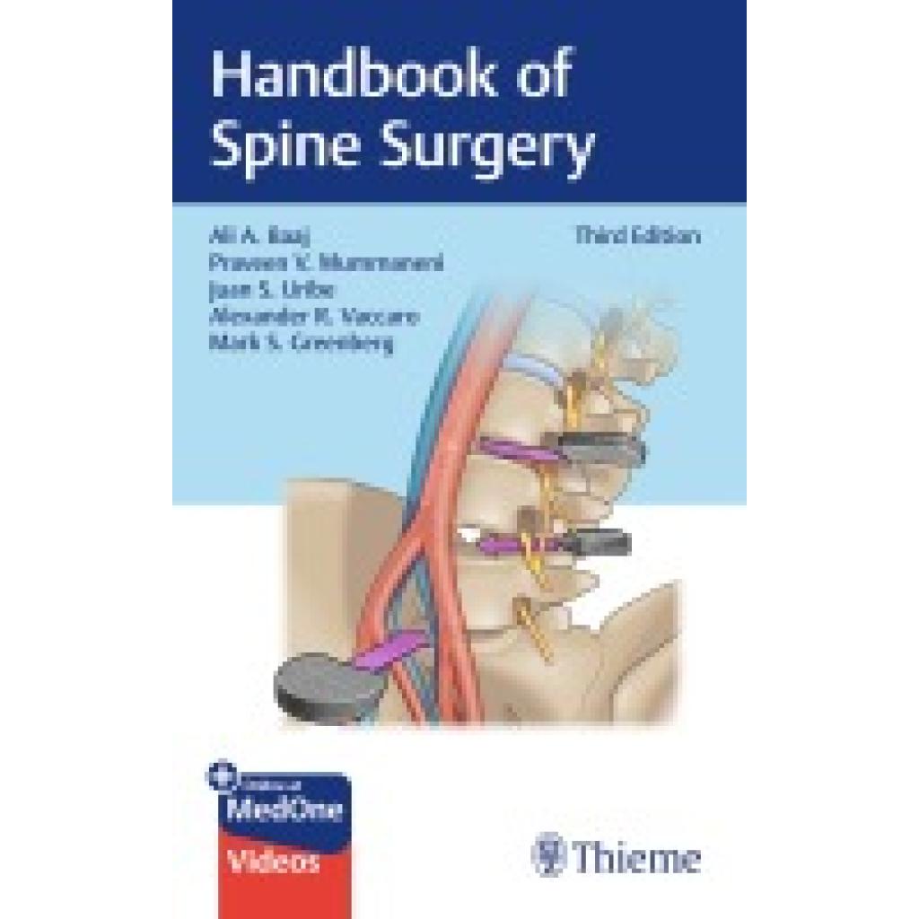 The go-to handbook on the current evaluation and surgical management of spinal disorders Handbook of Spine Surgery, Third Edition edited by renowned spine surgeons Ali A. Baaj, Praveen V. Mummaneni, Juan S. Uribe, Alexander R. Vaccaro, and Mark S. Greenberg reflects new techniques introduced into the practice since publication of the last edition, along with four-color images and videos. The book is organized into four parts and 66 chapters, starting with basic spinal anatomy. Part II covers the physical exam, electrodiagnostic testing, imaging, safety issues, intraoperative monitoring, bedside procedures, and the use of orthotics, pharmacology, and biologics. Part III discusses a full range of spinal pathologies and the final section concludes with 34 succinct procedural chapters. Key Highlights - Contributions from an expanded "who's who" of spine surgery experts - New chapters cover state-of-the-art techniques, including endoscopy, CT-guided navigation, robotics, augmented reality, and vertebral body tethering - Procedural chapters include key points, indications, diagnosis, preoperative management, anatomic considerations, techniques, surgical pearls, and more This is an invaluable resource for neurosurgical and orthopaedic residents, spinal surgical fellows, and practicing orthopaedic surgeons and neurosurgeons who specialize in spine surgery. This print book includes complimentary access to a digital copy on https://medone.thieme.com. Publisher's Note: Products purchased from Third Party sellers are not guaranteed by the publisher for quality, authenticity, or access to any online entitlements included with the product.