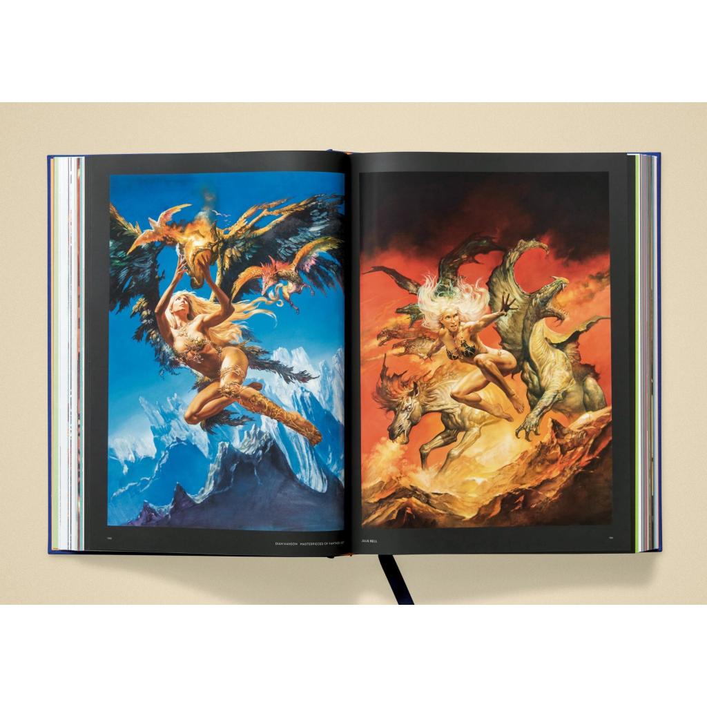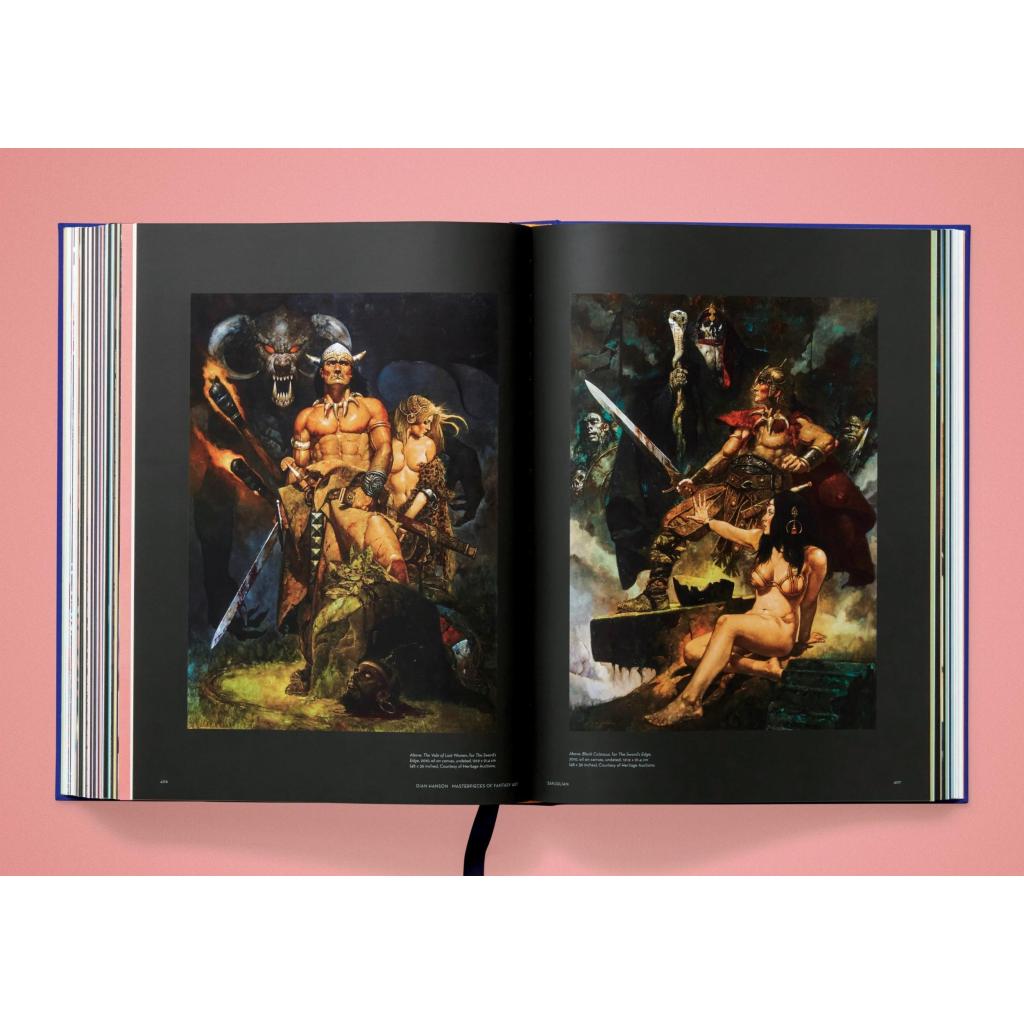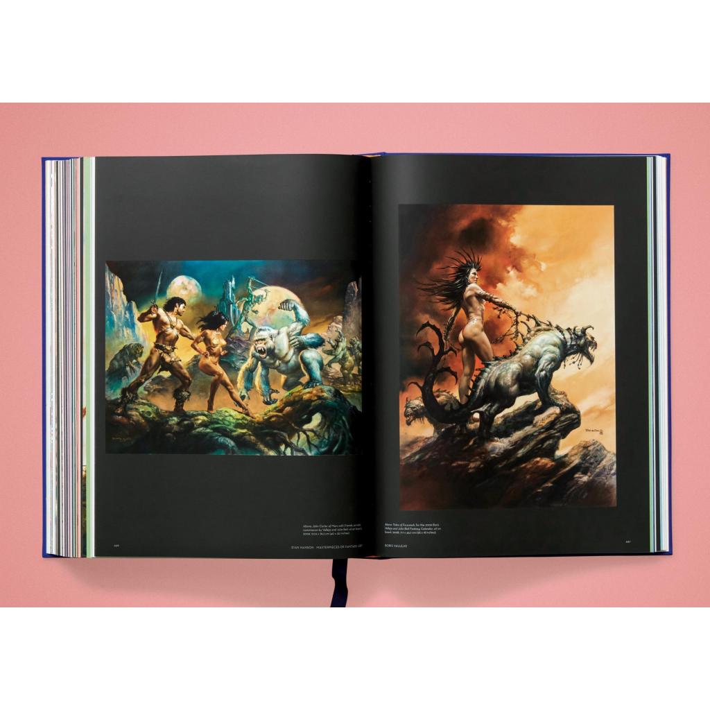 Fantasy Art , diese farbenfrohe Mischung aus Mythos, Muskeln und sexy Jungfrauen, geht zurück bis ins Jahr 1923, dem Jahr der Veröffentlichung des Weird Tales -Magazins. Das Genre wurde in den 1960er Jahren wiederbelebt, als Der Herr der Ringe eine Neuauflage erlebte, Conan der Barbar in Taschenbüchern mit Titelbildern von Frank Frazetta zahlreiche Abenteuer bestritt und Roger Dean Plattencover mit psychedelischen Fantasy-Szenen versah. Der endgültige Durchbruch jedoch gelang in den 1970er-Jahren mit dem Rollenspiel Dungeons & Dragons , der genialen französischen Zeitschrift Métal Hurlant und dem ersten Film der langen Star Wars -Reihe, Krieg der Sterne . Die Zahl der aktiven Künstler erreichte in diesem Jahrzehnt ihren Zenit. Durch das Aufkommen von Tausch- und Sammelkarten in den 1990er-Jahren entdeckte dann eine neue Generation von Fans das Genre für sich. Frank Frazettas Ölgemälde erzielten zuletzt Preise von mehr als 5 Millionen US-Dollar, wenn sie überhaupt auf den Markt kamen, und Fans stehen Schlange auf den Comic-Cons, um Boris Vallejo, Rodney Matthews, Greg Hildebrandt, Michael Whelan und Philippe Druillet zu treffen und verstorbener Ikonen wie HR Giger, Jeffrey Catherine Jones und Frazetta zu gedenken - die natürlich alle in diesem Band vertreten sind. Der Wälzer im Monsterformat zeigt die Originalgemälde , jeweils ergänzt durch Entwurfsskizzen, Skulpturen, Kalender, Zeitschriften und Taschenbücher , und bietet tiefe Einblicke in dieses dynamische, fantasievolle Genre. Informative Biografien zeichnen ein genaueres und aussagekräftigeres Bild der Künstler als jeder Wikipedia-Eintrag. Mit seinen Ausklappseiten und eingeklebten Kapitelopenern gilt History of Fantasy Art schon jetzt als edelster und informativster Führer zu diesem so populären wie faszinierenden Thema.