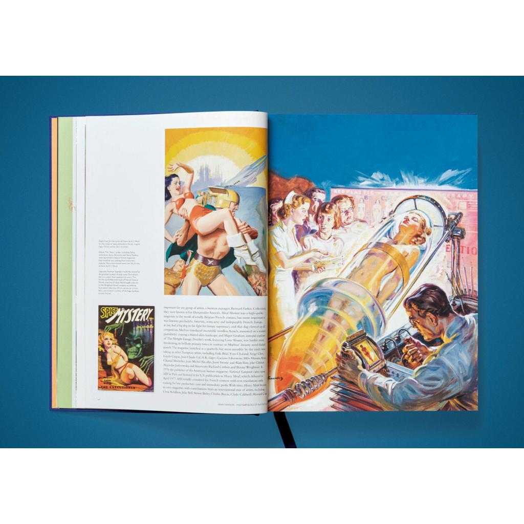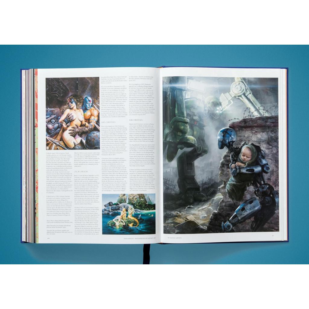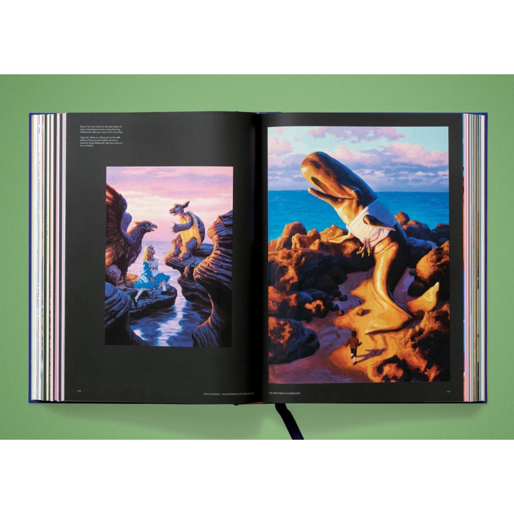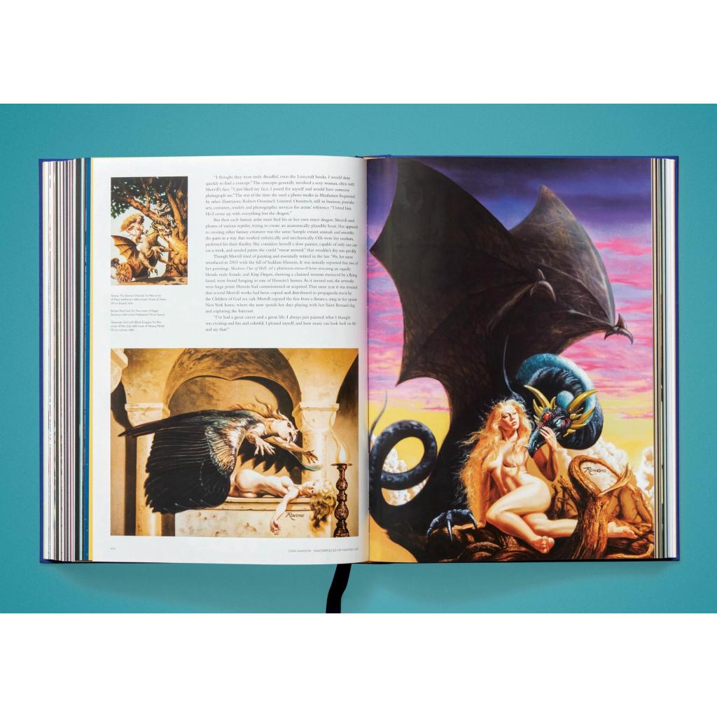 Fantasy Art , diese farbenfrohe Mischung aus Mythos, Muskeln und sexy Jungfrauen, geht zurück bis ins Jahr 1923, dem Jahr der Veröffentlichung des Weird Tales -Magazins. Das Genre wurde in den 1960er Jahren wiederbelebt, als Der Herr der Ringe eine Neuauflage erlebte, Conan der Barbar in Taschenbüchern mit Titelbildern von Frank Frazetta zahlreiche Abenteuer bestritt und Roger Dean Plattencover mit psychedelischen Fantasy-Szenen versah. Der endgültige Durchbruch jedoch gelang in den 1970er-Jahren mit dem Rollenspiel Dungeons & Dragons , der genialen französischen Zeitschrift Métal Hurlant und dem ersten Film der langen Star Wars -Reihe, Krieg der Sterne . Die Zahl der aktiven Künstler erreichte in diesem Jahrzehnt ihren Zenit. Durch das Aufkommen von Tausch- und Sammelkarten in den 1990er-Jahren entdeckte dann eine neue Generation von Fans das Genre für sich. Frank Frazettas Ölgemälde erzielten zuletzt Preise von mehr als 5 Millionen US-Dollar, wenn sie überhaupt auf den Markt kamen, und Fans stehen Schlange auf den Comic-Cons, um Boris Vallejo, Rodney Matthews, Greg Hildebrandt, Michael Whelan und Philippe Druillet zu treffen und verstorbener Ikonen wie HR Giger, Jeffrey Catherine Jones und Frazetta zu gedenken - die natürlich alle in diesem Band vertreten sind. Der Wälzer im Monsterformat zeigt die Originalgemälde , jeweils ergänzt durch Entwurfsskizzen, Skulpturen, Kalender, Zeitschriften und Taschenbücher , und bietet tiefe Einblicke in dieses dynamische, fantasievolle Genre. Informative Biografien zeichnen ein genaueres und aussagekräftigeres Bild der Künstler als jeder Wikipedia-Eintrag. Mit seinen Ausklappseiten und eingeklebten Kapitelopenern gilt History of Fantasy Art schon jetzt als edelster und informativster Führer zu diesem so populären wie faszinierenden Thema.