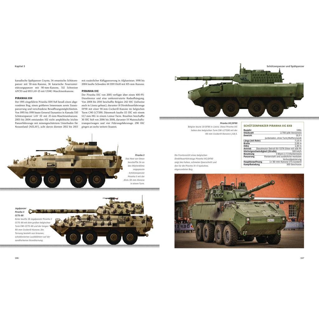 Dieses Buch beschreibt die Entwicklung von Panzern, Mannschaftstransportwagen, Schützenpanzern und Radpanzern vom Ende des Kalten Krieges bis in die Gegenwart. Vorgestellt werden zahlreiche Panzer, vom kaum bekannten Chonma-ho aus Nordkorea und dem Zulfiqar aus dem Iran bis hin zu den zahlreichen Versionen des Leopard und des T-72, die in aller Welt zu finden sind. Mit 250 farbigen Zeichnungen und Fotografien mit korrekten Erkennungszeichen sowie authentischen Tarnmustern und Farbschemata.