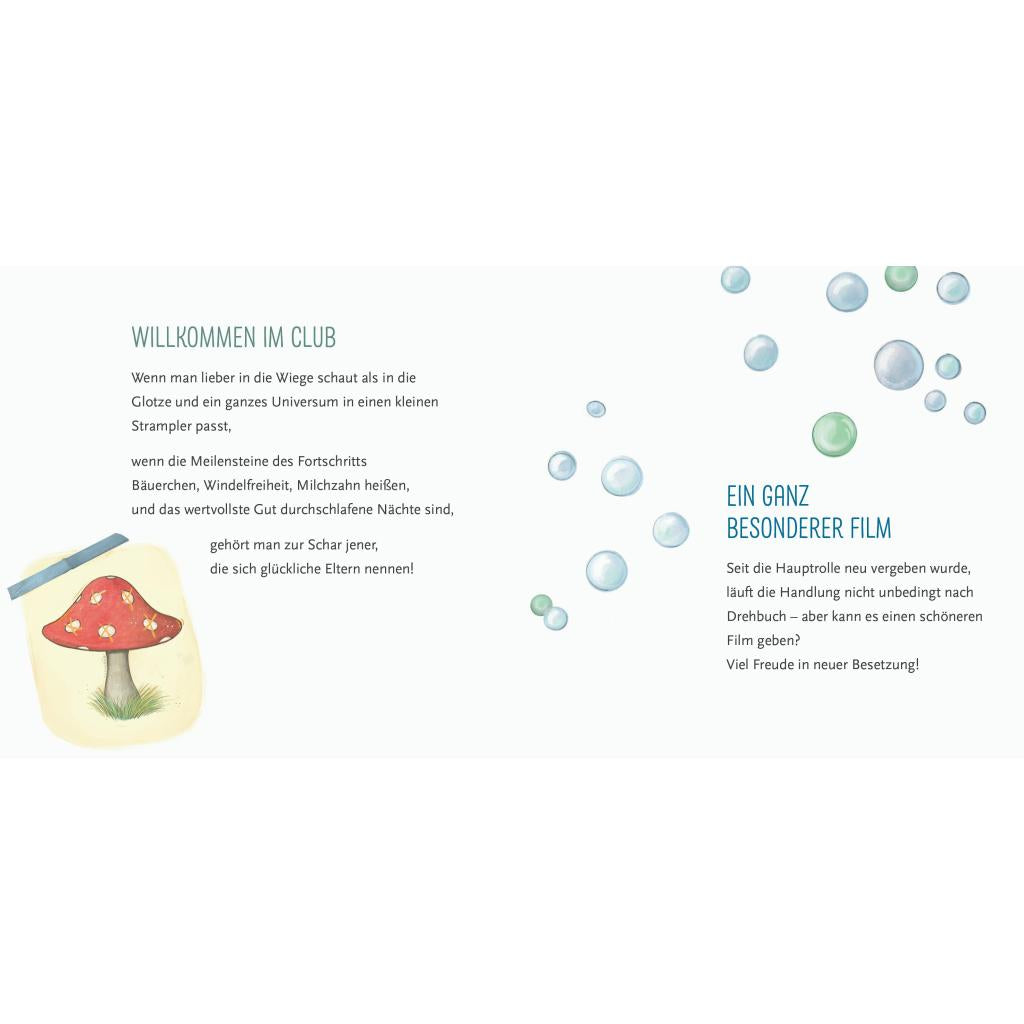 Plötzlich gehen die Uhren anders! Der Mittelpunkt des Universums verschiebt sich und zieht alle Aufmerksamkeit auf sich. Die leisen Töne werden bedeutsam, die Kleinigkeiten besonders und manches Wichtige unwichtig. Ein untrügliches Zeichen dafür, dass Ihr mittendrin seid im großen Abenteuer! Charmante und freche, nachdenkliche und tiefgründige Sprüche und gute Wünsche für frischgebackene Eltern.
