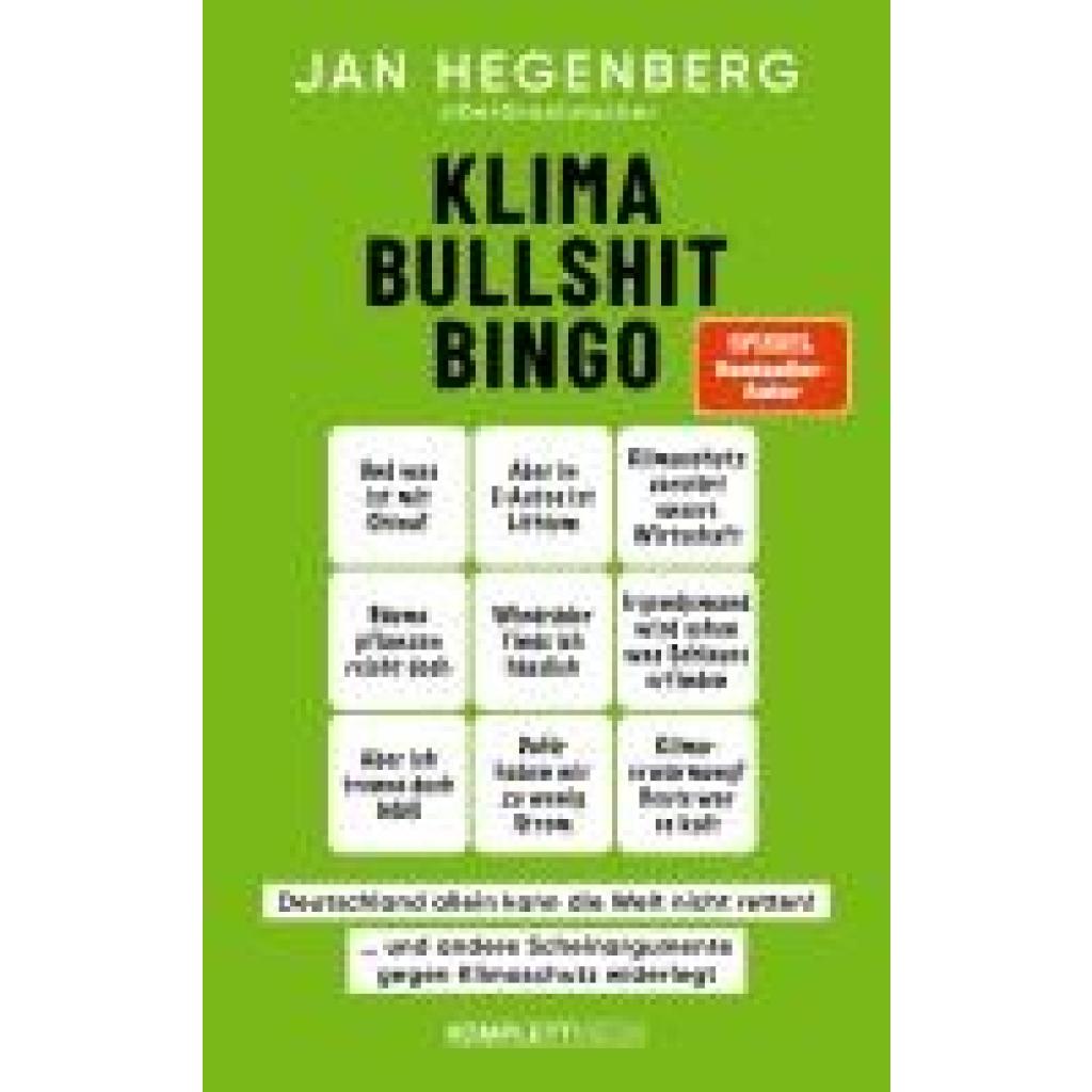 | Keyword: | Bestsellerautor; Der Graslutscher; Fakten; Gegenargumente; Jan Hegenberg; Klima-Bullshit-Bingo; Klimaleugner; Klimaschutz; Klimawandel; Nachschlagewerk; SPIEGEL-Bestseller; SPIEGEL-Bestsellerautor; Schainargumente gegen Klimawandel; Weltuntergang fällt aus; Wissen; fundierte Antworten; klimabullshit bingo |