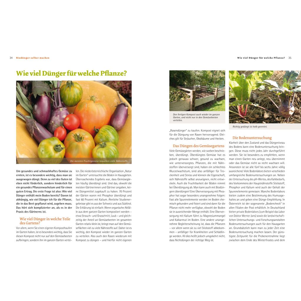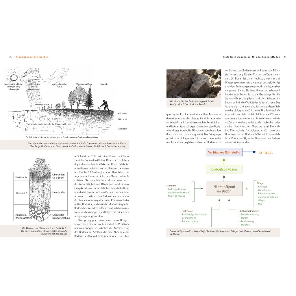 REICHE ERNTE AUS DEM EIGENEN SELBSTVERSORGER*INNEN-GARTEN: Im Praxishandbuch "Biodünger selber machen" erfährst du, wie deine Böden besonders fruchtbar werden und wie Obst und Gemüse bestmöglich gedeihen. Wieso sollte man Regenwürmer im eigenen Garten halten? Wie kann man Regenwurmhumus in einer Kompostkiste selber herstellen? Wie erzeugt man aus "Küchenabfällen" wie Kaffeesatz und Schalen fruchtbaren Kompost? Biogartenexpertin Andrea Heistinger sowie Biobauer und Biodüngerproduzent Alfred Grand erklären auf verständliche Weise, wie es ganz leicht gelingt, Biodünger selber zu machen. Sie verzichten auf komplizierte Anweisungen und beschreiben simple und benutzerfreundliche Systeme, die auch für Einsteiger*innen praktikabel sind. Das Buch ist ein STANDARDWERK für Hausgärtner*innen, Terrassen- oder Balkongärtner*innen, Biobäuer*innen sowie Lehrer*innen oder Kindergärtner*innen. Die beiden Gartenprofis geben Tipps und Tricks für alle Bedürfnisse und Situationen. Bei einem Hochbeet muss man beispielsweise auf andere Dinge achten, als bei großen Gartenflächen oder einem kleinen Schulgarten. Welche Methode zur Düngung für dich die richtige ist, findest du über den exklusiven Biodünger-Bestimmungsschlüssel heraus. Verwandle deine Anbaufläche in einen ERLEBNISGARTEN! Der praxisnahe Ratgeber gibt Aufschluss über verschiedenste Pflanzen: von Getreide über Rasen und Obstgärten bis hin zu Topfpflanzen. "Biodünger selber machen" empfiehlt sich ebenso für Hobbygärtner*innen mit kleinen Flächen, da sich z.B. die von Alfred Grand entwickelte Wurmkiste auch auf dem Balkon unterbringen lässt. Mithilfe anschaulicher Zeichnungen und Fotostrecken lernst du, wie man Wurmkisten selbst baut und wie man Regenwurmhumus gewinnen kann. Außerdem vereint das fundierte Gartenbuch die besten Techniken rund um Kompostierung, Mulchen, Gründüngung, Pflanzenjauchen und Komposttee. Das Buch ist ideal für Biogärtner*innen aus Leidenschaft, die sich mit dem Gedanken der Selbstversorgung identifizieren können. "Das Buch soll helfen, die Unabhängigkeit des Einzelnen zu erhalten, um Lebensmittel selbst produzieren zu können, wenn man dies will oder braucht", führt Alfred Grand aus. - Wissenswertes über das Düngen im biologischen Land- und Gartenbau - das unverzichtbare Nachschlagewerk für Biogärtner*innen - leicht verständlich und gleichzeitig informativ - effektive und geldsparende Methoden - mit zahlreichen Farbfotos und Zeichnungen - wertvolle Tipps für Selbstversorger*innen