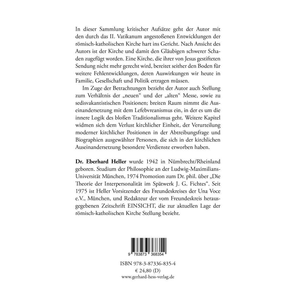 In dieser Sammlung kritischer Aufsätze geht der Autor mit den durch das II. Vatikanum angestoßenen Entwicklungen der römisch-katholischen Kirche hart ins Gericht. Nach Ansicht des Autors ist der Kirche und damit den Gläubigen schwerer Schaden zugefügt worden. Eine Kirche, die ihrer von Jesus gestifteten Sendung nicht mehr gerecht wird, bereitet seither den Boden für weitere Fehlentwicklungen, deren Auswirkungen wir heute in Familie, Gesellschaft und Politik ertragen müssen. Im Zuge der Betrachtungen bezieht der Autor auch Stellung zum Verhältnis der "neuen" und der "alten" Messe, sowie zu sedisvakantistischen Positionen; breiten Raum nimmt die Auseinandersetzung mit dem Lefebvreanismus ein, in der es um die innere Logik des bloßen Traditionalismus geht. Weitere Kapitel widmen sich dem Verlust kirchlicher Einheit, der Verurteilung moderner kirchlicher Positionen in der Abtreibungsfrage und Biographien ausgewählter Personen, die sich in der kirchlichen Auseinandersetzung besondere Verdienste erworben haben.