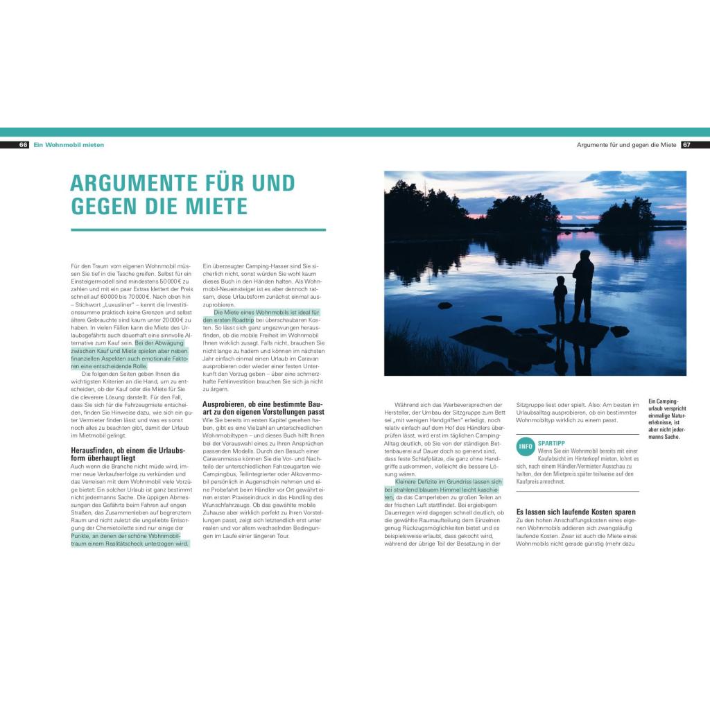 Auf in die große Freiheit! Ob epischer Roadtrip oder kleine Alltagsflucht übers Wochenende ¿ ein eigenes Reisemobil eröffnet die Freiheit, in den Urlaub aufzubrechen, wann immer es einem gefällt. Spontan, flexibel und frei. Das selbstbestimmte Reisen bringt auch viele Fragen mit sich: Welches Wohnmobil passt zu mir? Wie finde ich einen guten Vermieter oder Verkäufer? Wo fahre ich hin? Welches Zubehör brauche ich wirklich für eine gelungene Reise? Wo kann ich sicher übernachten? Die Experten der Stiftung Warentest liefern die Antworten im großen Wohnmobil-Handbuch. Der Ratgeber umfasst Grundwissen, Tipps und Tricks für Campinganfänger zum Thema Wohnmobil mieten, Wohnmobil kaufen, Bordtechnik, Zubehör und Ausstattung, Multimedia sowie zur Reiseplanung. Der Reiseführer ist mit vielen Bildern aus der Praxis aufbereitet, die bei der Vorbereitung helfen. Stimmungsvolle Bilder runden das Handbuch ab und laden zum Träumen ein. Der Outdoor-Journalist und Fotograf Michael Hennemann lebt und liebt das Reisen mit dem Wohnmobil und schreibt aus jahrelanger Erfahrung. Sie wollten schon immer eine Reise mit dem Wohnmobil machen, nur haben Ihnen die nötigen Informationen gefehlt? Worauf warten Sie denn dann jetzt noch? Los geht¿s! Welches Fahrzeug passt zu mir? Ob ein Bulli oder ein voll integriertes Wohnmobil die richtige Wahl ist, klären wir gleich zum Start. Was gibt es? Grundrisse, Multimediaoptionen, Bäder-, Betten und Küchenformen im Überblick. Alles gecheckt? Informationen rund um Miete und Kauf, Versicherung und Finanzierung, Fahrzeugübernahme & Co Wofür ist dieser Knopf? Heizungseinstellungen, Auffahrkeile und die sichere Toilettenentleerung - am Anfang gibt es viele Herausforderungen. Wir helfen. Wo wollen wir hin? So finden Sie den perfekten Urlaubsort und unvergessliche Stellplätze Darf man das? Regeln fürs Fahren im In- und Ausland, Tempolimits, Zuladungsbeschränkungen, Maut