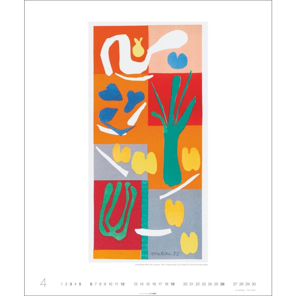 | Fachschema: | Kalender / Kunst / Einzelne Künstler u. Künstlergruppen~Kalender / Wandkalender~Matisse, Henri~Kalender / Kunst / Allgemeines~Kunst / Kalender |