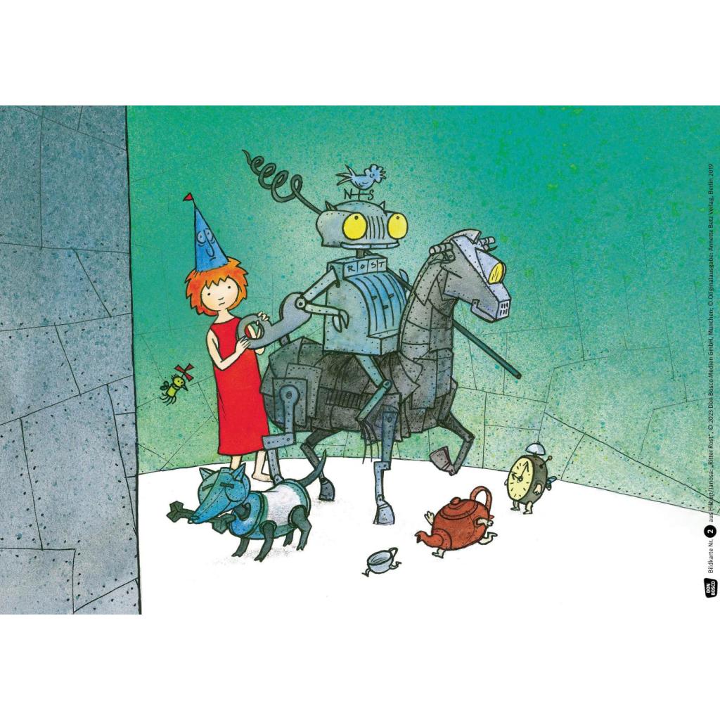 | Beilage: | DIN A3, 20 Bildkarten, einseitig bedruckt, auf festem 300g-Karton, farbig illustriert, inkl. Textvorlage und Liedern zum Streamen |