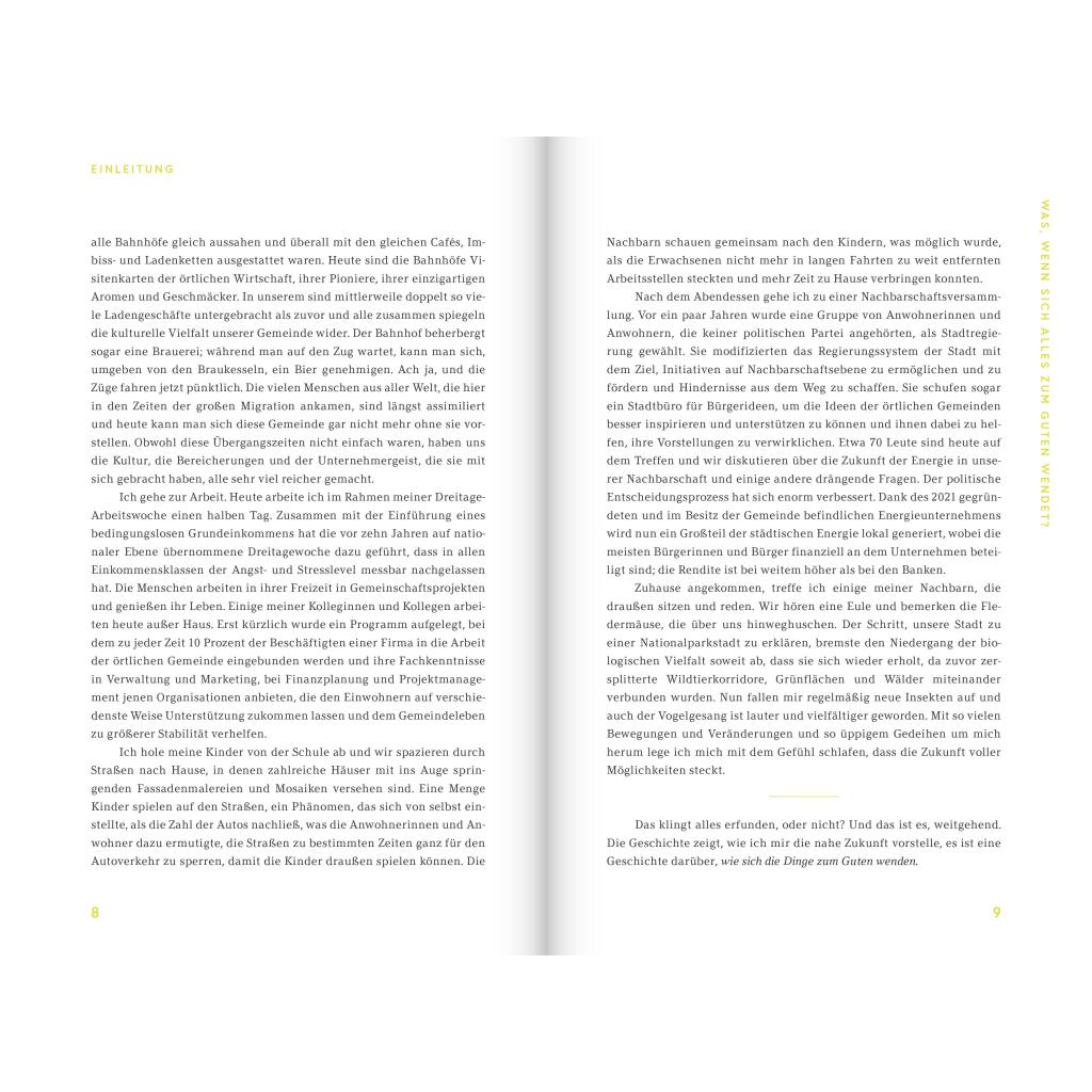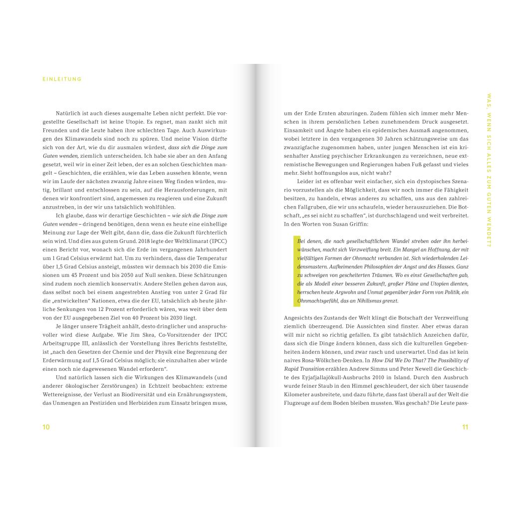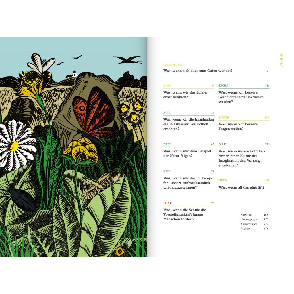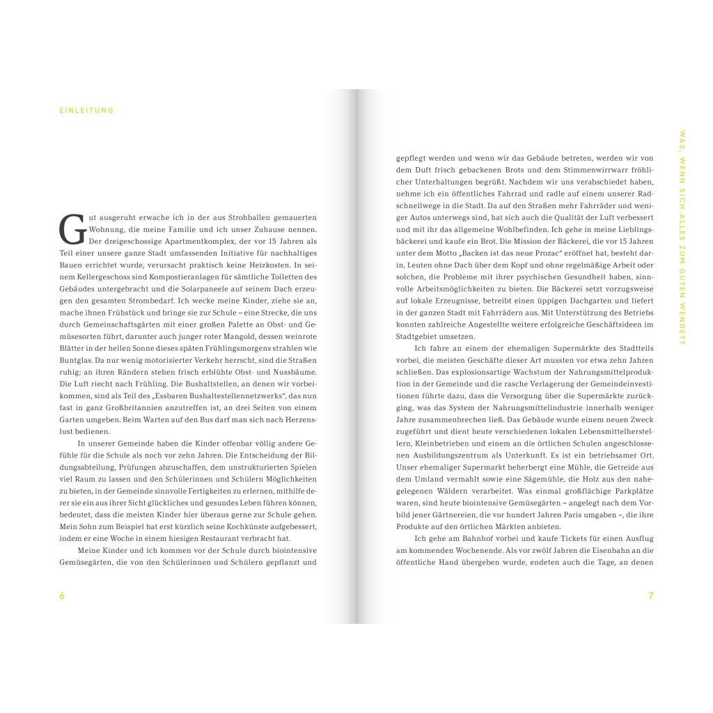 LASS UNS DIE WELT VERÄNDERN UND DIE ZUKUNFT NEU DENKEN: MIT MUT UND FANTASIE! Wir leben in einer Welt, die es uns NICHT GERADE EINFACH macht, DER ZUKUNFT VOLLER HOFFNUNG ENTGEGENZUBLICKEN: düstere Nachrichten zu Klimakrise, Artensterben, Ernährungsunsicherheit, dem Zerbrechen von Ökosystemen und radikalen politischen Bewegungen stehen an der Tagesordnung. Vertrauen in der Bevölkerung, dass sich alles zum Besseren wenden kann? Fehlanzeige. Aber warum scheint es eigentlich so schwierig, Lösungen für diese Probleme zu finden? Rob Hopkins gibt uns die Antwort: WEIL WIR VERLERNT HABEN, UNSERE WICHTIGSTE FÄHIGKEIT EINZUSETZEN: UNSERE VORSTELLUNGSKRAFT. Die einfache Frage zu stellen: WAS WÄRE, WENN? Um eine neue Welt zu kreieren, müssen wir sie uns zuerst vorstellen können. Wir müssen unsere Fantasie einsetzen. Und wenn wir das vollbringen, dann sehen wir sie plötzlich ganz klar, entdecken die Kraft unserer Gedanken, die uns zuflüstern, dass wir es - doch noch! - schaffen können. Hast du den Mut, dich darauf einzulassen? WAS, WENN ALLES RICHTIG GUT WIRD? Wie malt sich Rob Hopkins also diese neue, von Erfindungsgeist und Imagination sprühende Zukunft aus? Er sieht SCHULEN, IN DENEN NICHT MEHR WISSEN ABGEFRAGT, SONDERN DIE KREATIVITÄT DER KINDER GEFÖRDERT WIRD. Er sieht GRÜNE, BIODIVERSE STÄDTE, in denen an jeder Ecke Pflanzen und Gemüse in die Höhe sprießen und Verbrennungsmotoren und Straßenlärm ein Ding der Vergangenheit sind. Er sieht KLEINSTRUKTURIERTE, LOKALE UNTERNEHMEN, große SOLIDARITÄT, Unterstützung, ALLGEMEINEN WOHLSTAND. Und er sieht kommunale "Think tanks", Zusammenkünfte von Imaginations-Komitees, in denen alle Bürger*innen mitforschen, debattieren und sich eine bessere Welt für ihre Gemeinde ausmalen. Du denkst, das klingt unrealistisch und schwer umsetzbar? Dann hast du dich getäuscht: Das sind nämlich alles PROJEKTE UND IDEEN, DIE ES BEREITS GIBT. BRING DEINE WELT IN BEWEGUNG - UND STARTE DEN WANDEL! Genau deshalb ist dieses Buch SO UNGLAUBLICH MUTIG - UND SO WICHTIG. Rob Hopkins, MITBEGRÜNDER DER "TRANSITION TOWNS"-BEWEGUNG, zeigt uns, dass es Hoffnung gibt: dass sie da sind, die Lösungen, die genialen Ideen, die innovativen Einfälle. Völlig gebannt begleiten wir ihn und LERNEN MENSCHEN KENNEN, DIE ES GESCHAFFT HABEN, scheinbar unmögliche Gedankenexperimente IN DIE REALITÄT UMZUSETZEN. Klingt riskant? Gut so: Denn ohne Mut, Fantasie und Risikobereitschaft können wir radikale und dringend notwendige Veränderungen auf unserem Planeten nicht umsetzen. Also: Lass uns einen neuen Weg finden, unsere Probleme zu lösen und über unsere Zukunft nachzudenken. Der SCHLÜSSEL DAZU IST UNSERE VORSTELLUNGSKRAFT. Wenn wir unsere KOLLEKTIVE IMAGINATION BELEBEN, NÄHREN UND TRAINIEREN, gibt es nichts, was wir nicht planen, erarbeiten und umsetzen können. Bist du dabei, wenn wir die Welt auf den Kopf stellen? - WIE WIR DIE WELT VERÄNDERN KÖNNEN? MIT VORSTELLUNGSKRAFT! Wenn wir ihr erst freien Lauf lassen, können wir einfach alles schaffen. Also, stellen wir uns die simple, aber alles entscheidende Frage: WAS WÄRE, WENN? - UNSERE ZUKUNFT? ANDERS, KNALLBUNT UND GUT FÜR ALLE: Lies dieses Buch und gewinne den Glauben an eine chancenreiche Zukunft und die Möglichkeit zur Veränderung zurück. - UNGLAUBLICHE GESCHICHTEN, SCHOCKIERENDE FAKTEN, FASZINIERENDE MENSCHEN: Mitreißend erzählt Hopkins von Leuten, die ihre IDEEN VON EINER BESSEREN ZUKUNFT UMSETZEN - und zeigt, dass der Wandel nur eine Kopfreise entfernt ist.