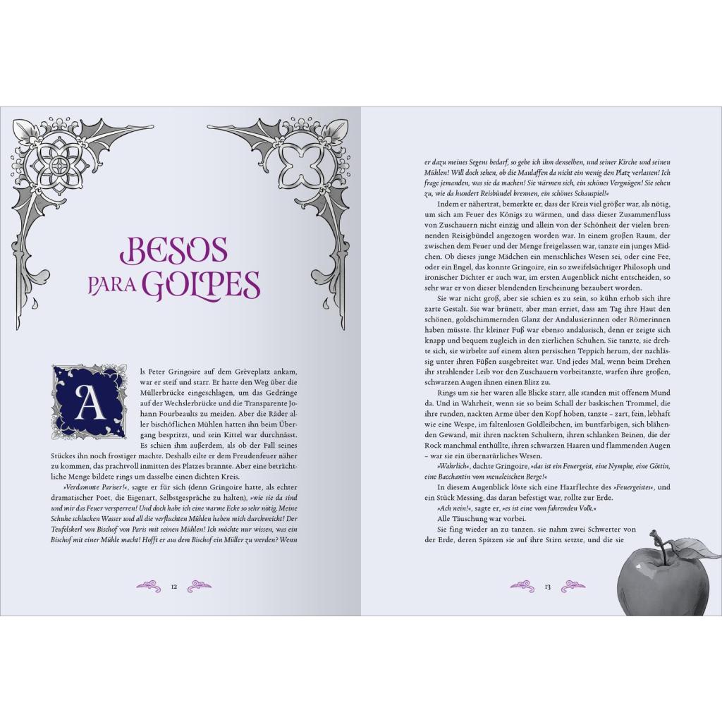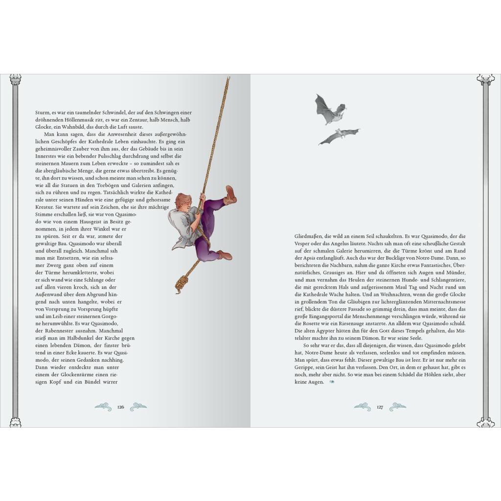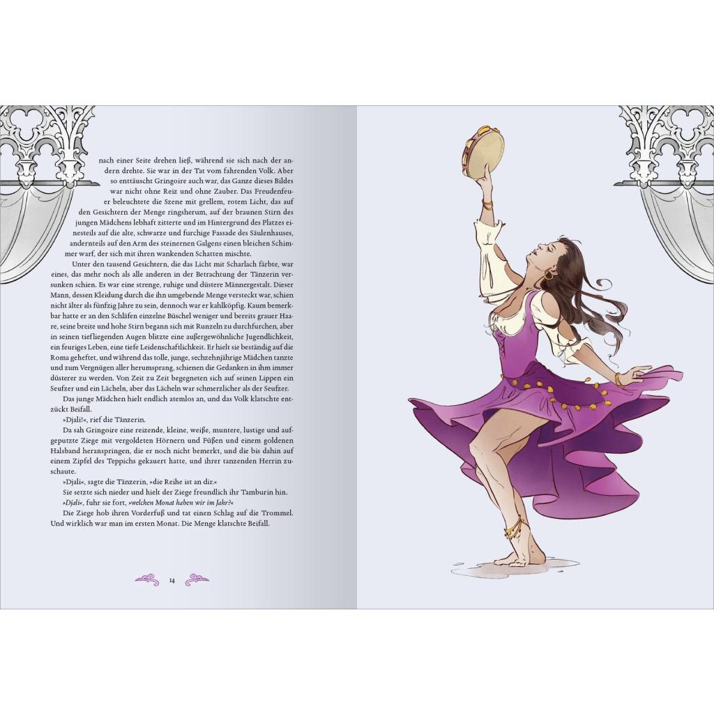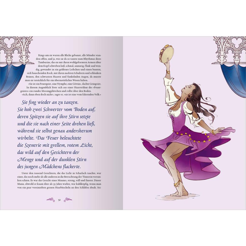 Victor Hugos Meisterwerk in einem opulenten Geschenkband Im Paris des 15. Jahrhunderts spielt die vielschichtige Handlung dieses bunten Sittengemäldes mit den unterschiedlichsten Charakteren. Der bekannteste Protagonist ist der missgestaltete Glöckner Quasimodo. Innerhalb der Mauern der Kathedrale Notre-Dame und auf den belebten Straßen von Paris entspinnt sich seine tragische Liebe zur schönen Tänzerin Esmeralda - eine Geschichte um Hexerei, Aberglauben, Vorurteile und die starren Konventionen der damaligen Zeit. Victor Hugos Klassiker der französischen Romantik erhält in dieser Schmuckausgabe durch die düster-hintergründigen Illustrationen von Anna Frohmann ein unverwechselbares neues Gewand. Ein besonders hochwertiges Geschenk für alle, die Literatur und Bücher lieben! Weltliteratur, künstlerisch illustriert: Anna Frohmanns mitreißende Bilder zeigen eine Welt voller Liebe, Vorurteile, Menschlichkeit und Mitgefühl Zeitloses Thema: Victor Hugos "Der Glöckner von Notre-Dame" erzählt von der Suche nach Identität in einer von sozialer Ungerechtigkeit geprägten Welt Literaturklassiker zum Sammeln: Die aufwendig illustrierte Schmuckausgabe mit Farbschnitt und edler Folienprägung auf dem Einband darf in keiner literarischen Sammlung fehlen Megatrend #darkacademia: Für alle Fans von großer Literatur aus vergangenen Zeiten und der Geschichten, die sie erzählt Eine Liebeserklärung an die klassische Literatur: Das perfekte Buchgeschenk für alle kunstaffinen Liebhaberinnen und Liebhaber spannender und düsterer Geschichten - zum Geburtstag, zu Weihnachten oder allen anderen besonderen Anlässen Dark Academia für die eigene Bibliothek Die bibliophile Reihe Biblioteca Obscura ist nicht nur als schöne Dekoration im Bücherregal ein Muss. Sie eignet sich perfekt für alle Büchersammler und Leseratten, die französische Romantik, Klassiker der Weltliteratur und ästhetische Gestaltung lieben.