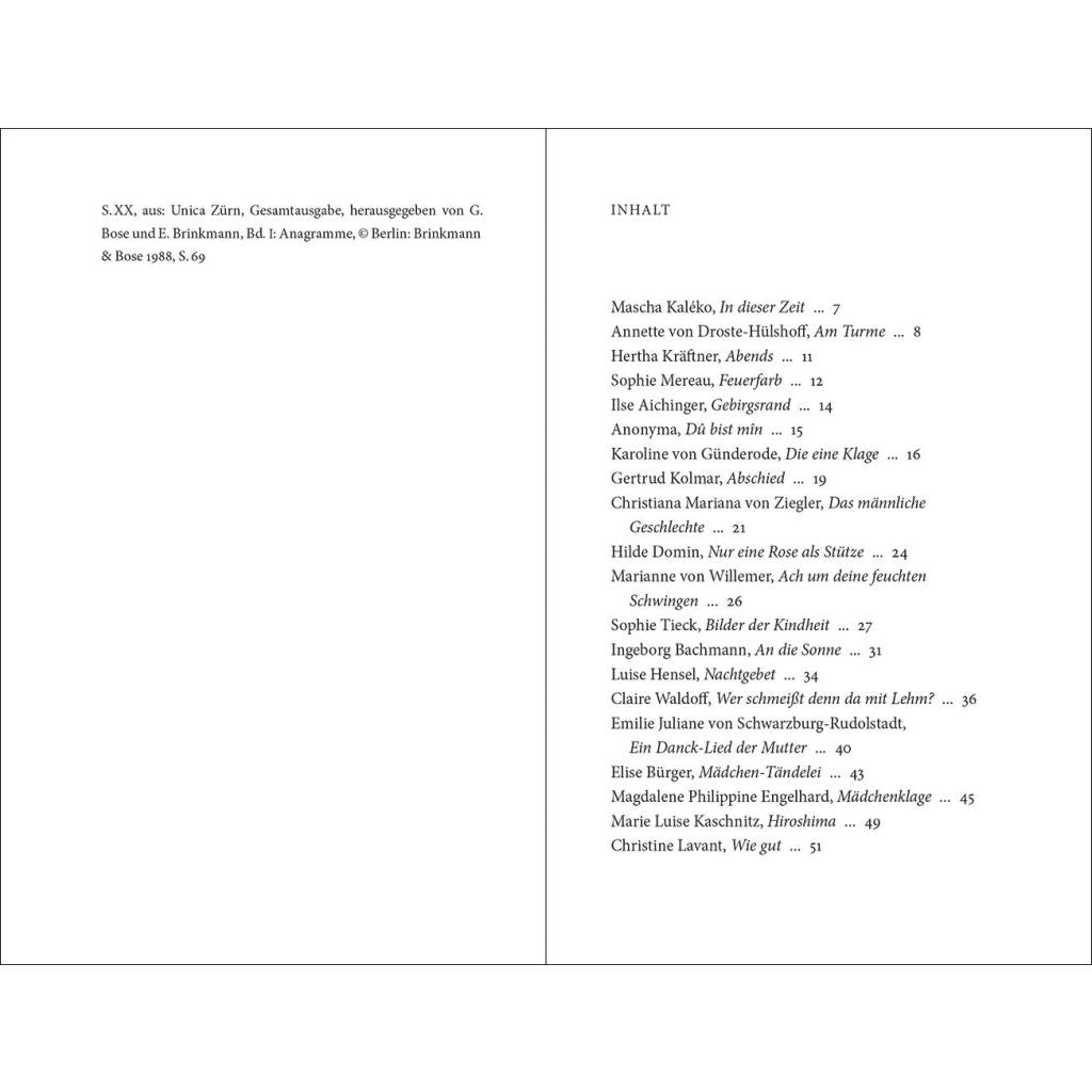 | Keyword: | Bücher Neuererscheinung; Elfriede Gerstl; Else Lasker-Schüler; Gedichte von Frauen; Geschenke für Frauen; Hertha Kräftner; IB 1538; IB1538; Ingeborg Bachmann; Insel-Bücherei 1538; Lesebuch; Mascha Kaléko; Mechthild von Magdeburg; Neuererscheinung; Sophie Mereau; aktuelles Buch; neues Buch |