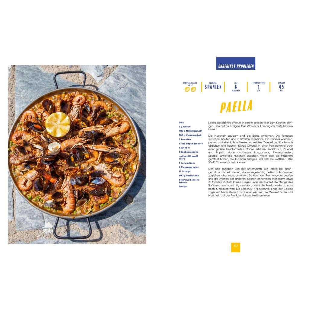 Die beliebtesten Rezepte aus dem Mittelmeerraum von Spanien über Italien bis Israel. Paella, Pizza, Pasta, Falafel, Gyros, Tajine, Ratatouille