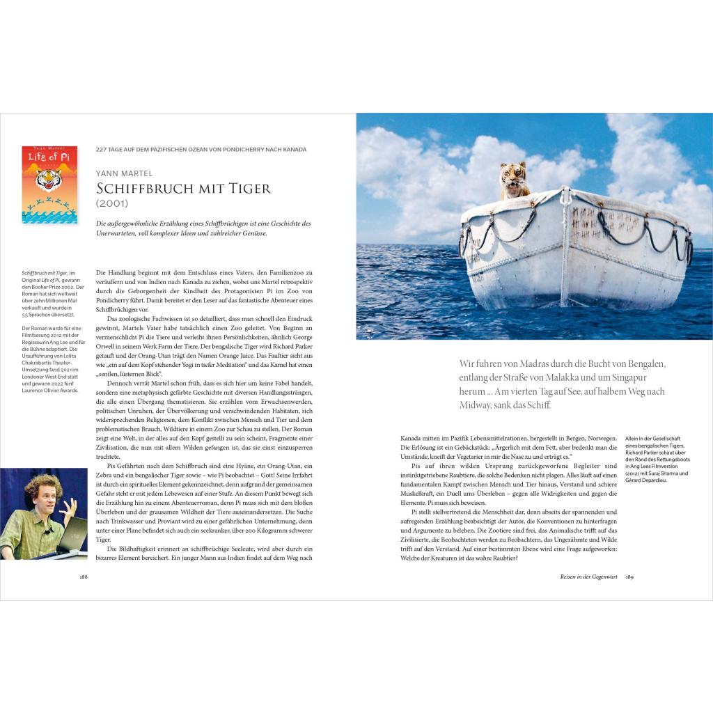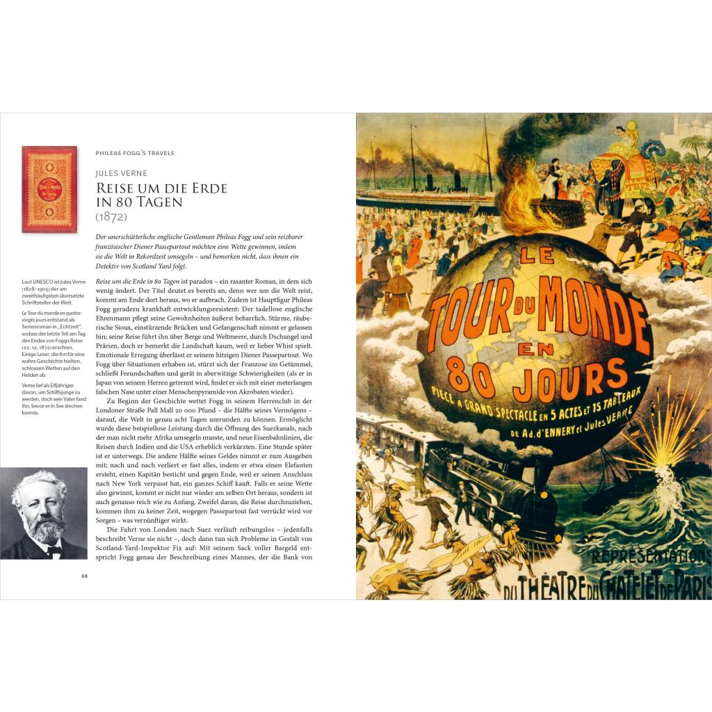 Für Abenteuerlustige und Wissensdurstige: Mit Büchern um die Welt und durch alle Zeiten Warum hielten die Menschen Jules Vernes' Reise um die Welt in 80 Tagen für eine wahre Geschichte? Wie entstand die Idee zu Mary Shelleys Frankenstein? Wann verfilmte Ang Lee Schiffbruch mit Tiger? Von der Odyssee zu Americanah, von Robinson Crusoe zu Tschick: Dieser prachtvoll ausgestattete Bildband ist eine Bereicherung für Ihre Bibliothek und ein ideales Geschenk für Buchliebhaber und Reiselustige! Reisebeschreibungen der Weltliteratur: 80 Werke von der Antike bis heute Ein besonderer Literatur-Bildband, der Fernweh und Abenteuerlust weckt Verführt zum Weiterlesen in den Romanen berühmter Schriftsteller und Schriftstellerinnen Ein Schatz voller Fakten, Anekdoten und Hintergründen für alle, die Bücher und Literaturverfilmungen lieben Mit hochwertigen Reproduktionen von Gemälden, Landkarten, Covern und Fotos Das nächste Abenteuer ist immer nur eine Seite entfernt Nachdem Sie in 'Wonderlands' fantastische Welten entdecken konnten, führt die Reise Sie dieses Mal hinaus in die weite Welt und hinein in Lieblingsbücher aus 8 Jahrhunderten. Gern gelesene Klassiker der Weltliteratur, berühmte Reiseerzählungen und moderne Bestseller lassen Sie fremde Kontinente erkunden und an den unglaublichsten Abenteuern teilnehmen. Ob als Outlaw, Flugpionier, Taucher, Romantiker, Walfänger oder Prinzessin: Dieser Streifzug durch die Abenteuerliteratur lässt Sie tief in Bücherwelten eintauchen - ein fabelhafter Spaß für reiselustige Leseratten!