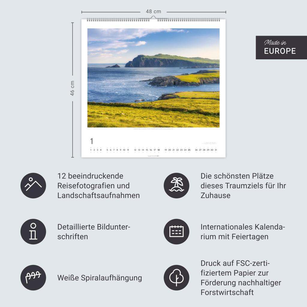 Natur und mystische Sehnsuchtsorte voller irischem Flairs und Lebensgefühl. Großer Wandkalender im Querformat 46 x 48 cm