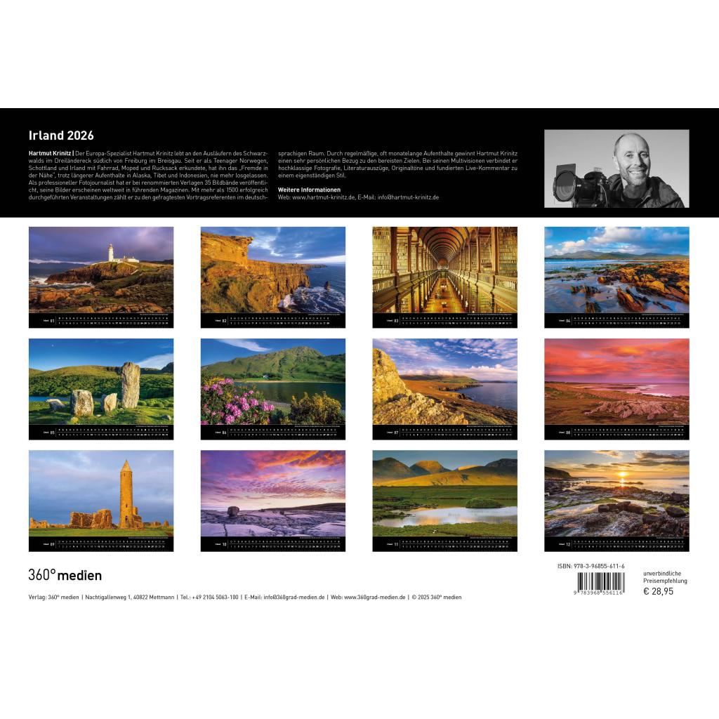 Aus traumhaften Irland-Aufnahmen des Fotografen Hartmut Krinitz hat die Redaktion von 360° medien die 13 schönsten Motive ausgewählt und in diesem Kalender zusammen gestellt. Präsentiert werden die Fotos auf hochwertigem Papier im Format 50 cm x 35 cm.