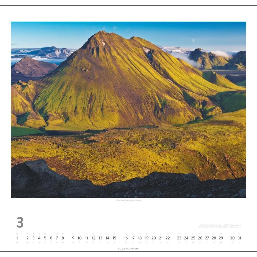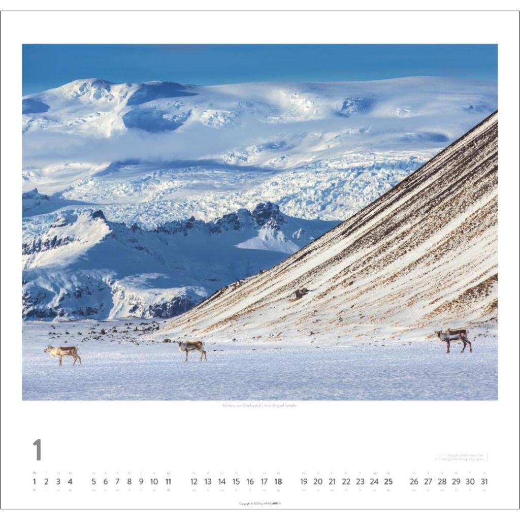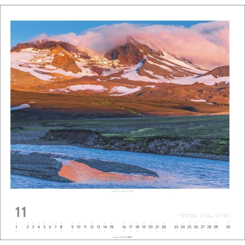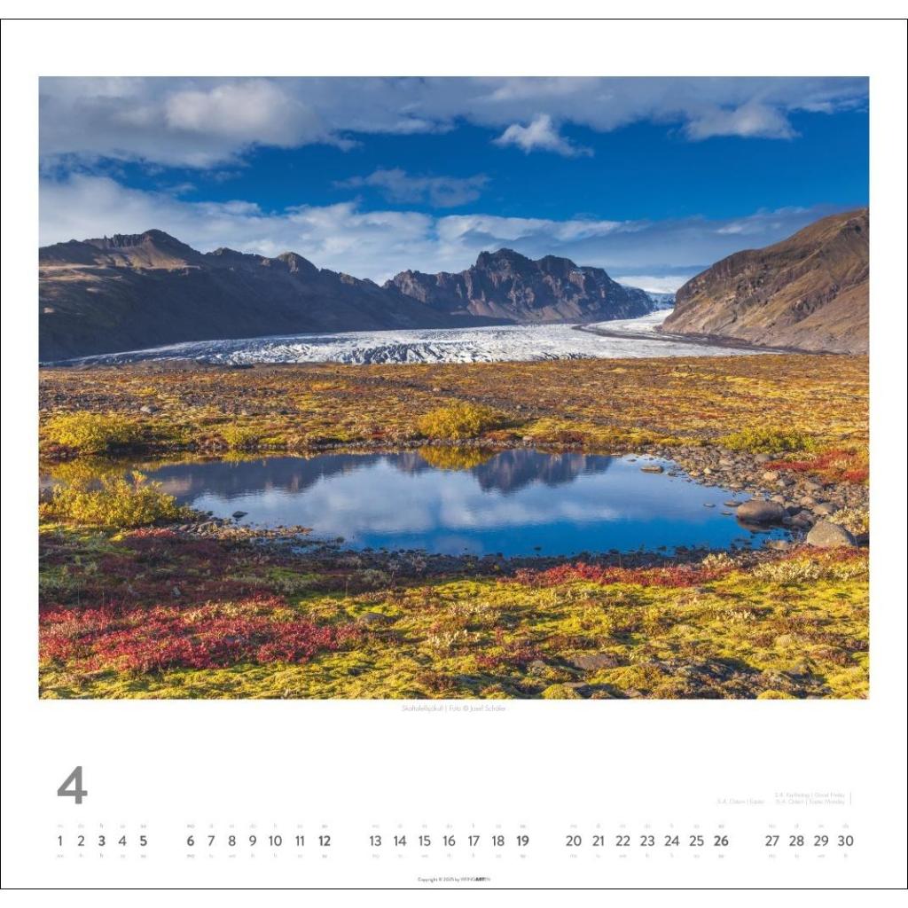 Wandkalender XXL mit 12 atemberaubenden Fotos von Islands Gletschern, Vulkan-Landschaften und unberührter Natur. Kalender im Großformat 48 x 46 cm