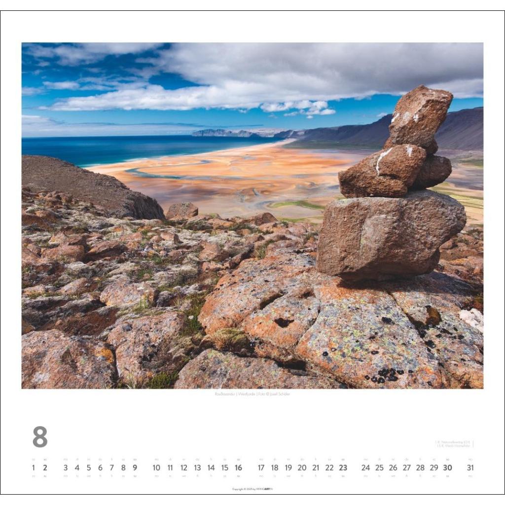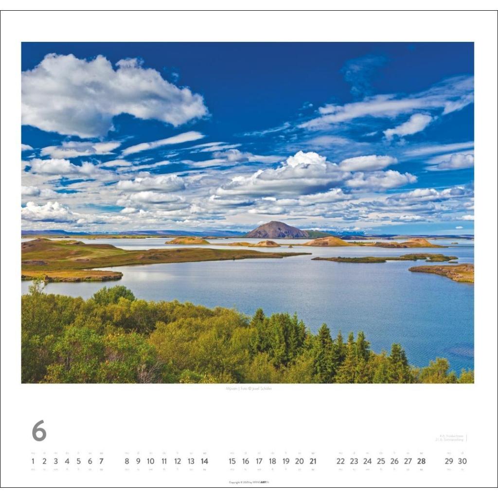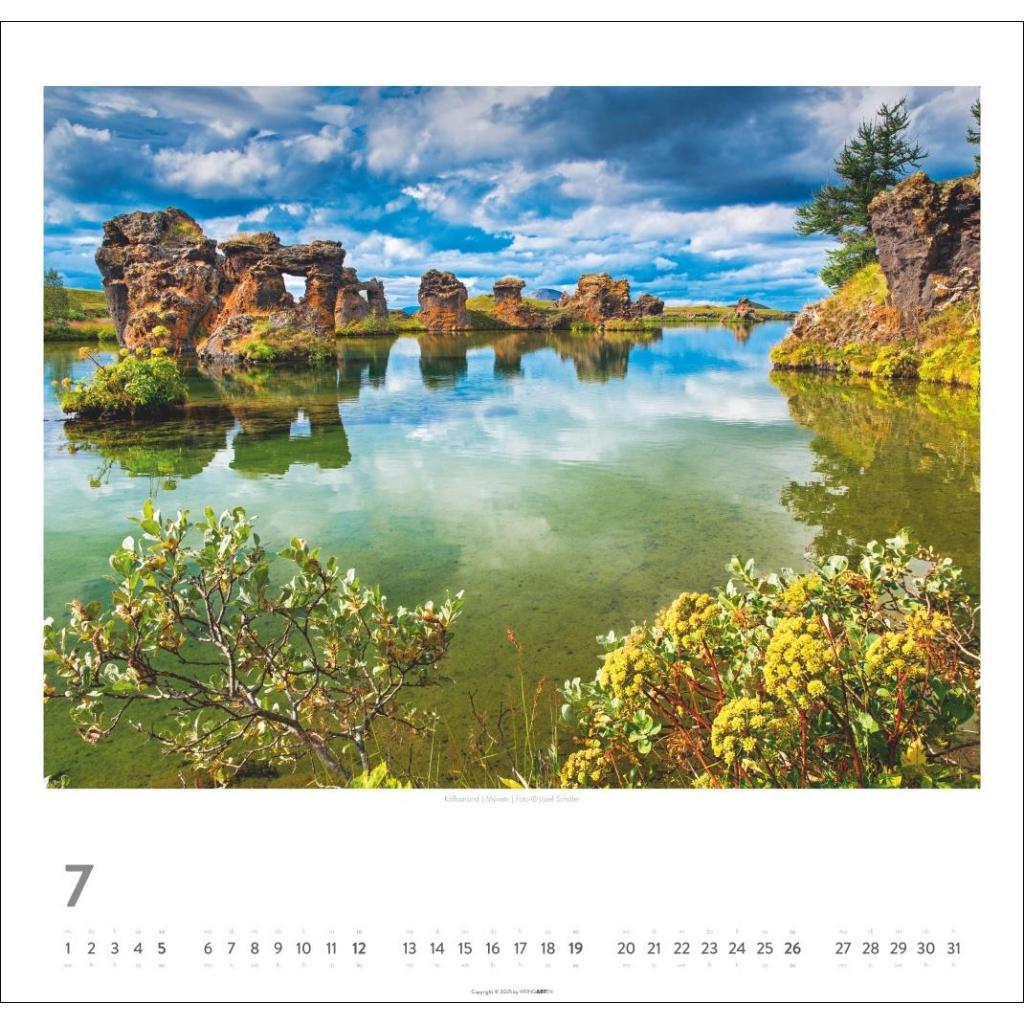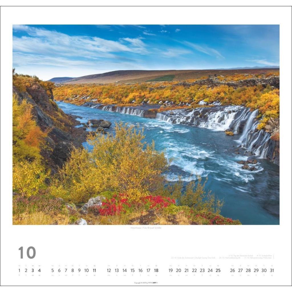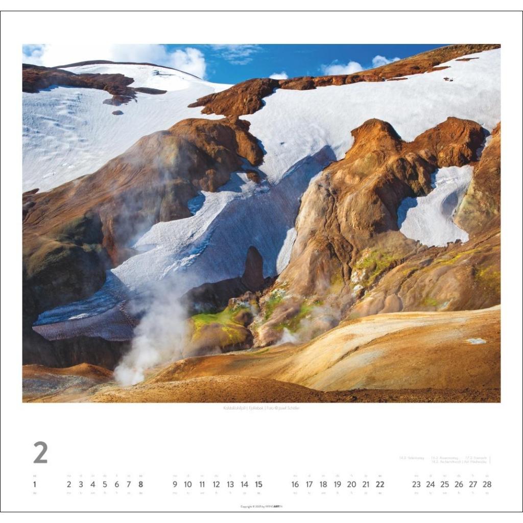 Wandkalender XXL mit 12 atemberaubenden Fotos von Islands Gletschern, Vulkan-Landschaften und unberührter Natur. Kalender im Großformat 48 x 46 cm