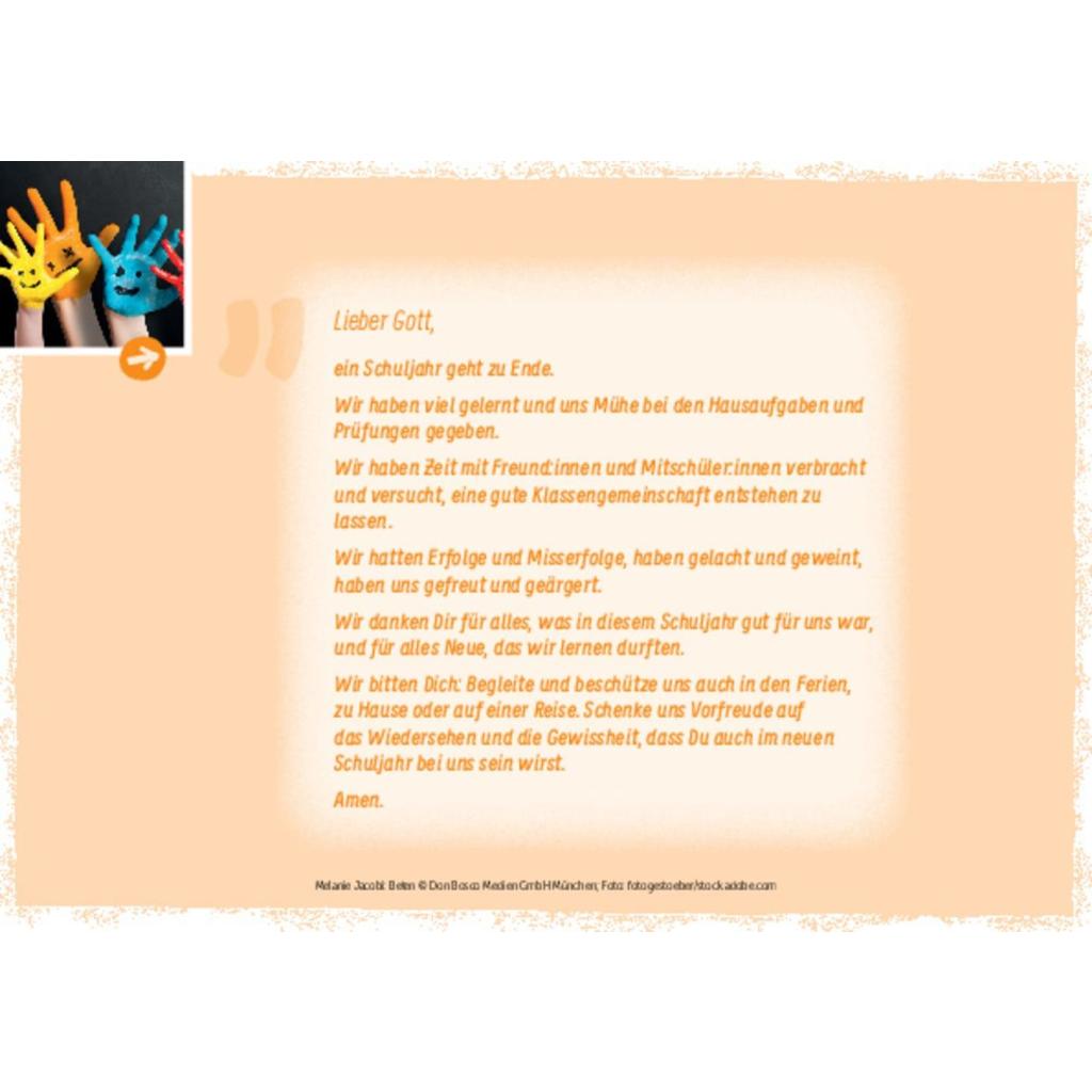 | Keyword: | bildkarten; dankesgebet; fürbitten dankbarkeit; gebet schulanfang; gebet zur einschulung; gebete bei sorgen; gebete für schüler; gebete grundschule; gebete vor prüfungen; kindergebete schule; kurze kindergebete; kurze schulgebete; morgengebet grundschule; religionsunterricht material; schulgottesdienst |