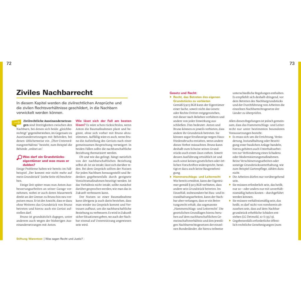 Auf gute Nachbarschaft | Eine angenehme Nachbarschaft bildet die Grundlage, um sich in den eigenen vier Wänden wohlzufühlen. Ob im Eigenheim oder in der Mietwohnung: Konflikte mit den Nachbarn lassen sich nicht immer vermeiden. Der eine hört gerne Musik oder hat viel Besuch, der andere möchte lieber in Ruhe ein Buch lesen. Jeder Nachbar hat andere Ansprüche an das Wohnen und das ist auch gut so! Der Ratgeber "Nachbarschaftsrecht" zeigt Strategien, Wege und Meditationstechniken zur gütlichen Einigung, bevor der Streit eskaliert und vor Gericht landet. Die Experten für Mietrecht der Stiftung Warentest stellen die typischen und häufigsten Problemfälle lebendig dar. Das beginnt bei den lärmenden Kindern der Nachbarn, schließt die klassischen "Kleinkriege" am Gartenzaun ein und führt bis zu ganz neuartigen Streitfällen: Darf man eine Drohne über das Nachbargrundstück fliegen lassen? Und was darf die Videokamera zur Einbrecherabwehr alles aufnehmen? Ganz entscheidend ist immer der richtige Umgang mit Konflikten. Wie reagiert man auf Störungen angemessen? Und wie redet man am besten mit schwierigen Nachbarn? Hier helfen die Autoren mit Meditationstechniken, die sich in ihrer Arbeit seit vielen Jahren bewährt haben. Praktische Musterschreiben im Ratgeber zeigen, wie man seine Interessen sachlich und formal korrekt darstellt. Und für den Fall, dass die Mediation scheitert, geben die Autoren wichtige Empfehlungen, wie man am besten vorgeht, um sich im Nachbarschaftsstreit vor Gericht erfolgreich durchzusetzen. Gar nicht so einfach: die rechtlichen Grundlagen in den verschiedensten Konfliktfällen kennen. Richtig vorgehen: Strategien, Wege und Techniken zur gütlichen Einigung. Helfende Profis: Durch Meditation und Schlichtung Gerichtsprozesse vermeiden. Vor Gericht: Gut vorbereitet Recht bekommen.