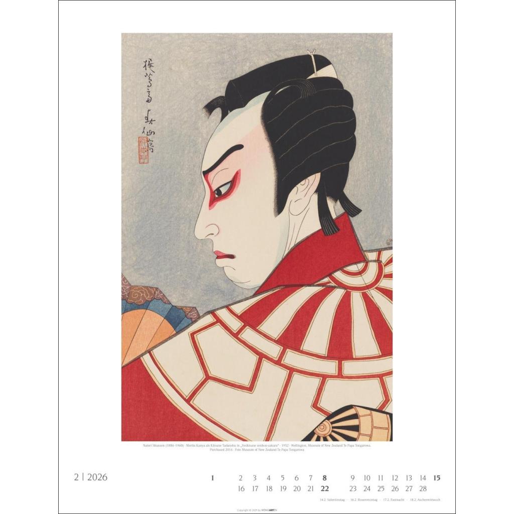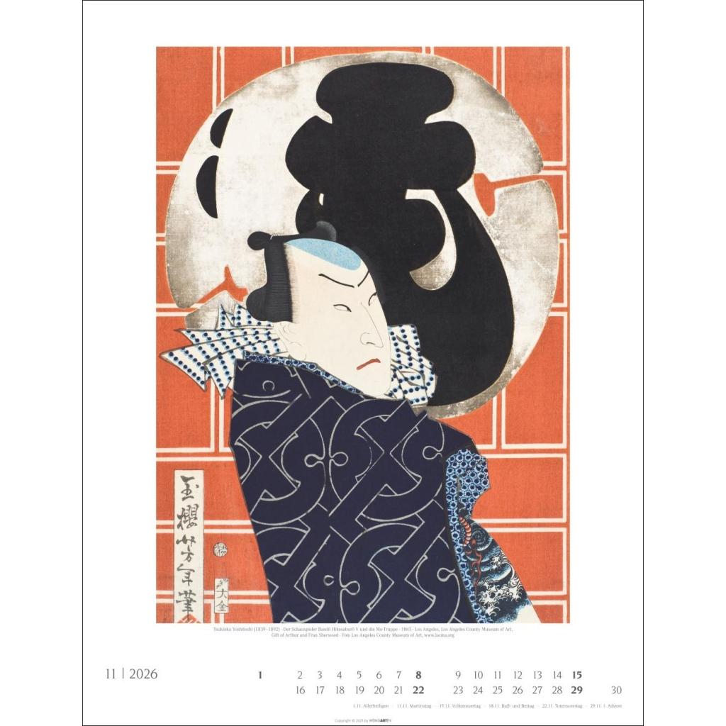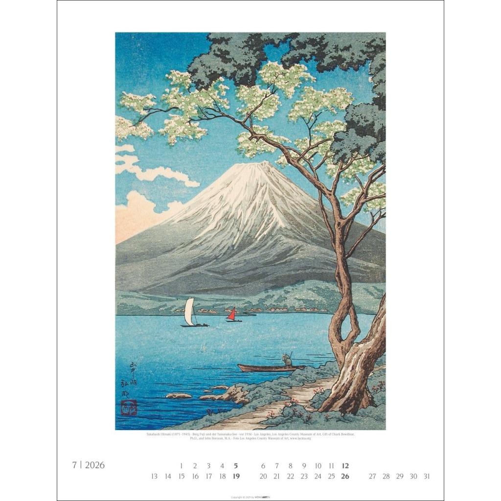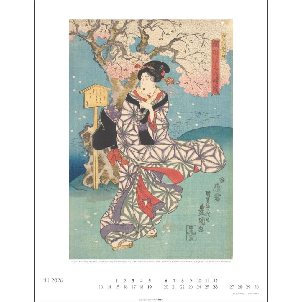 Berühmte japanische Farbholzschnitte des 19. und 20. Jhdts. in einem Wandkalender 2026. Kalender für Kunstliebhaber im Hochformat. 34 x 44 cm