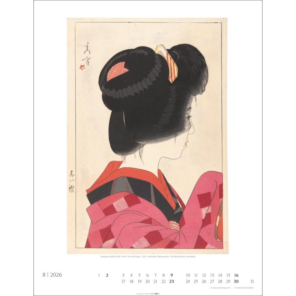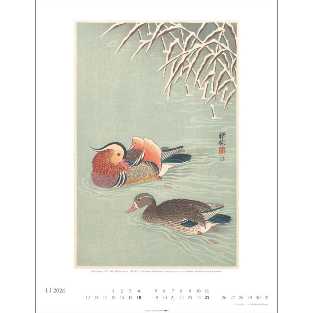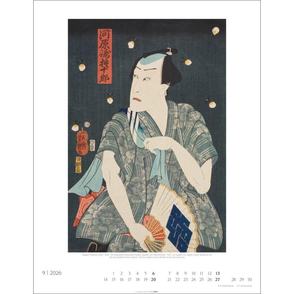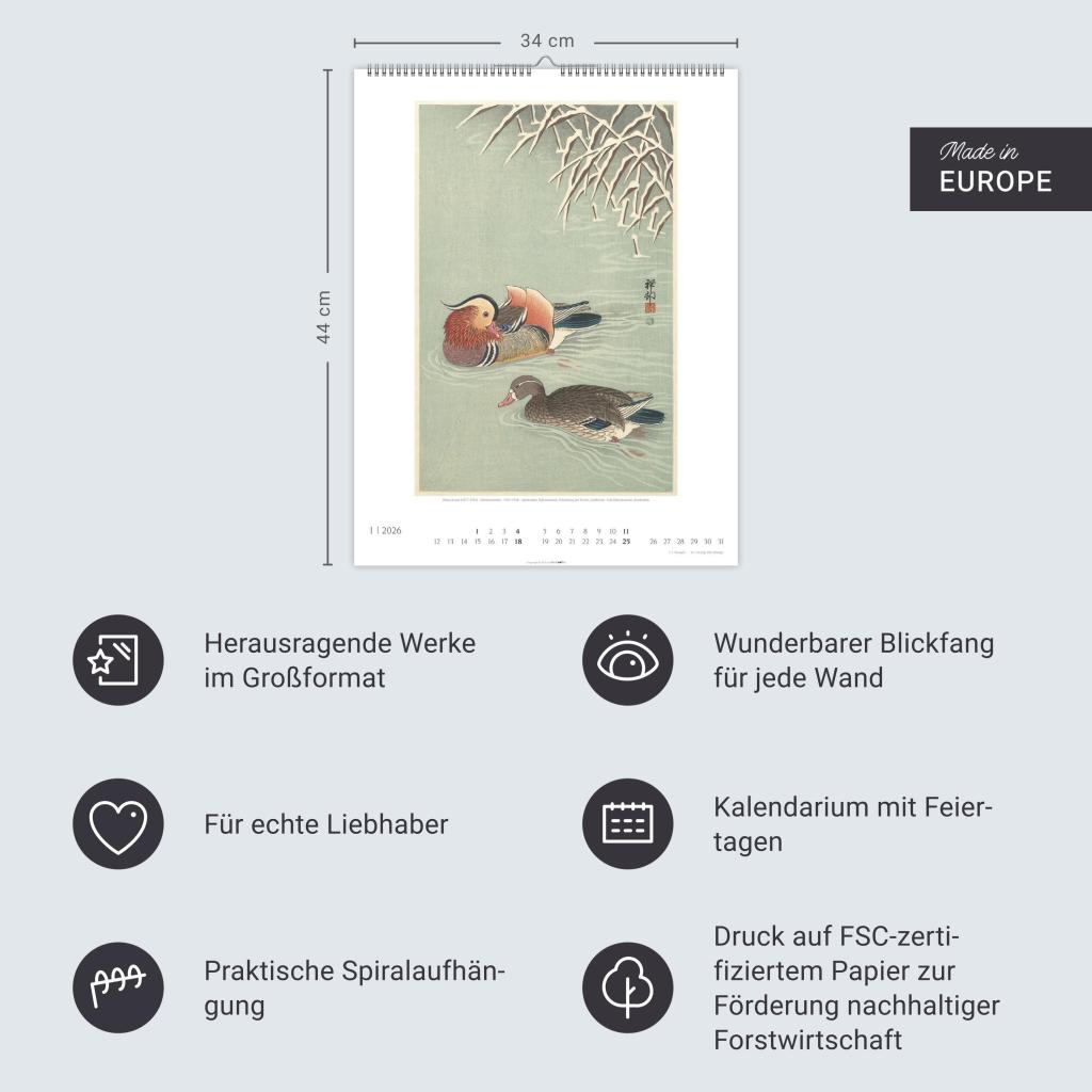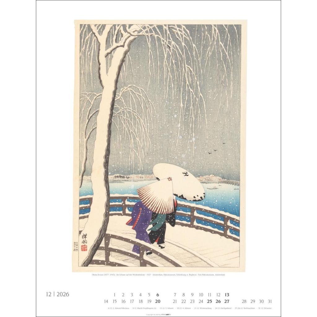 Berühmte japanische Farbholzschnitte des 19. und 20. Jhdts. in einem Wandkalender 2026. Kalender für Kunstliebhaber im Hochformat. 34 x 44 cm