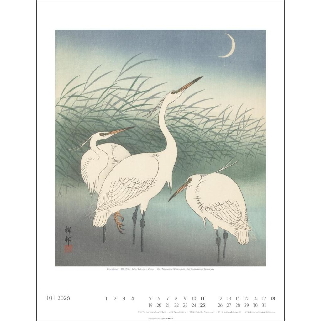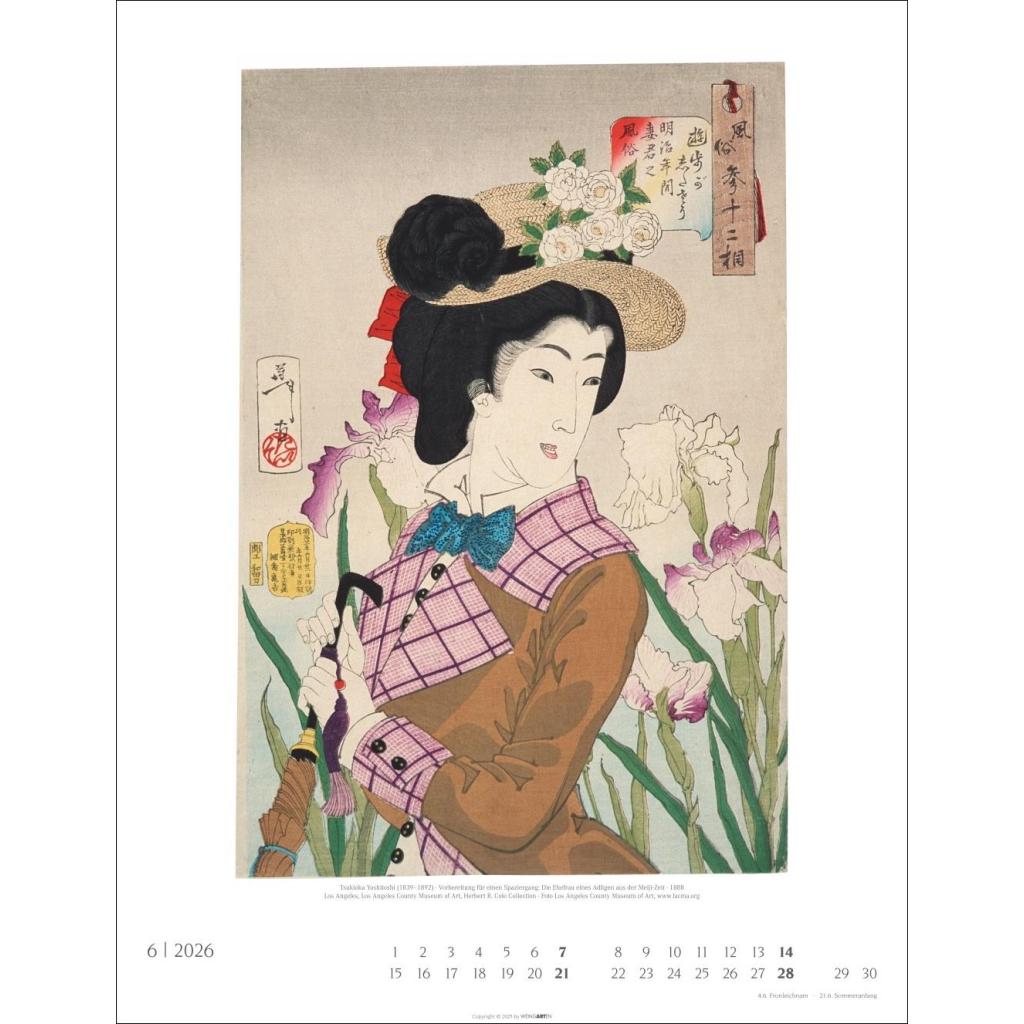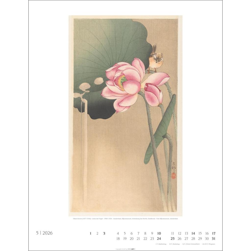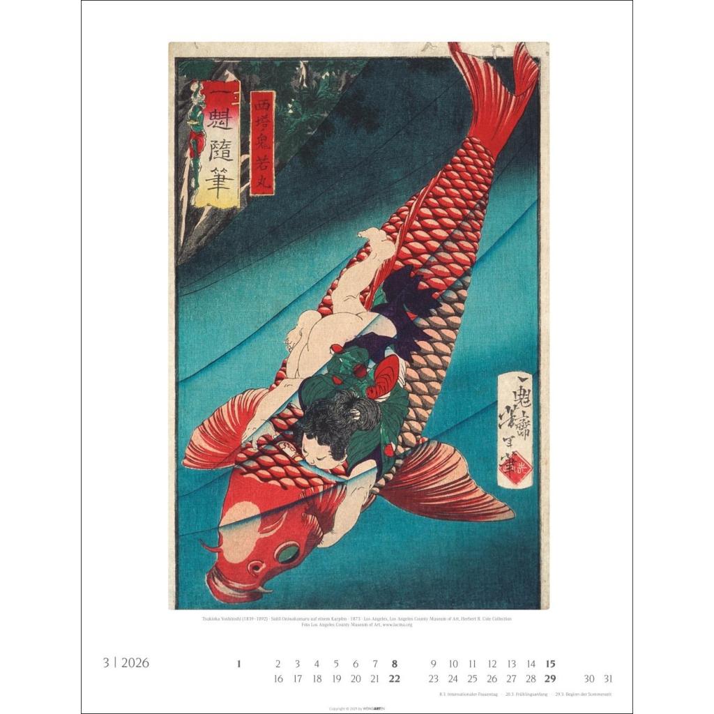 Berühmte japanische Farbholzschnitte des 19. und 20. Jhdts. in einem Wandkalender 2026. Kalender für Kunstliebhaber im Hochformat. 34 x 44 cm
