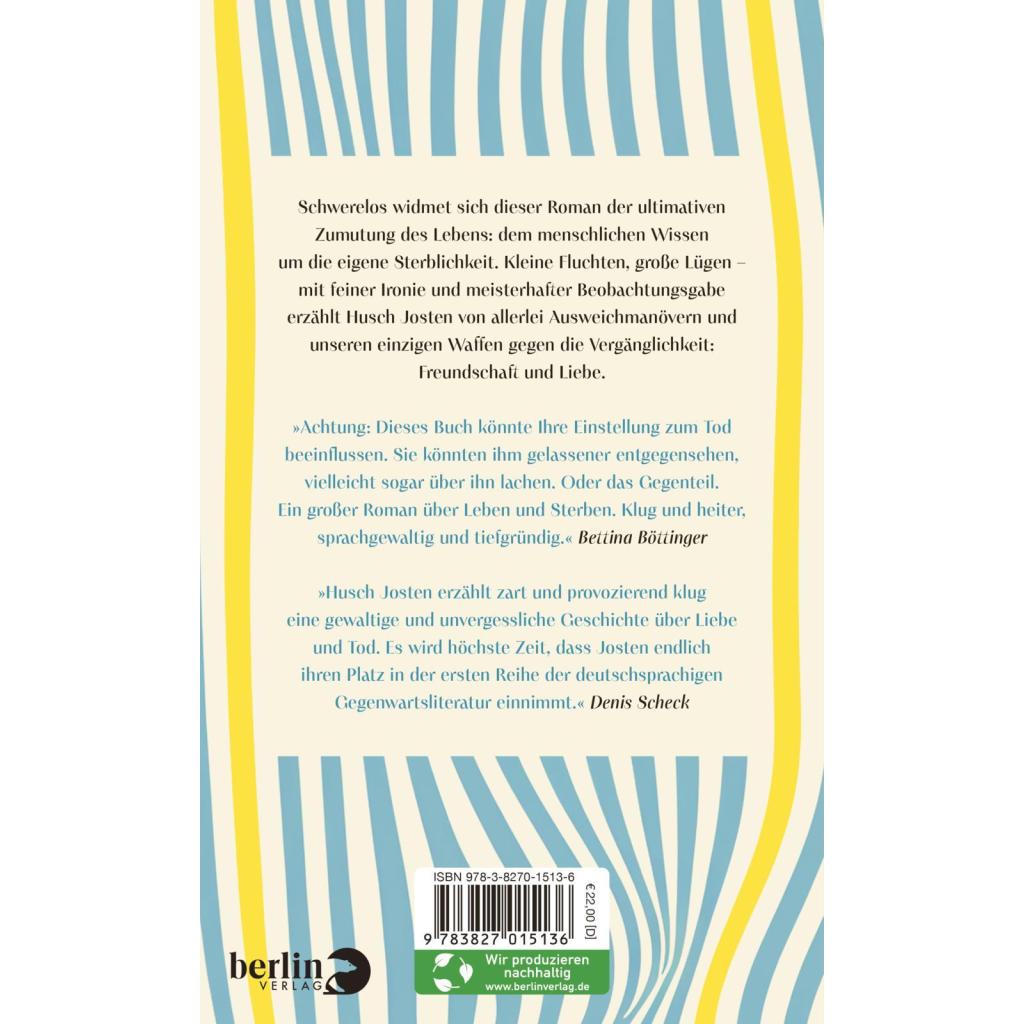 | Keyword: | Affäre; Affäre mit älterer Frau; Altwerden; Belletristik; Denis Scheck Buchempfehlung; Freundschaftsgeschichte; Köln; Leben; Philosophie; Selbstfindung; Sterbebegleitung; besonderer Liebesroman; deutsche Gegenwartsliteratur; literarisch; preisgekrönte Autorin; ältere Frau - jüngerer Mann |