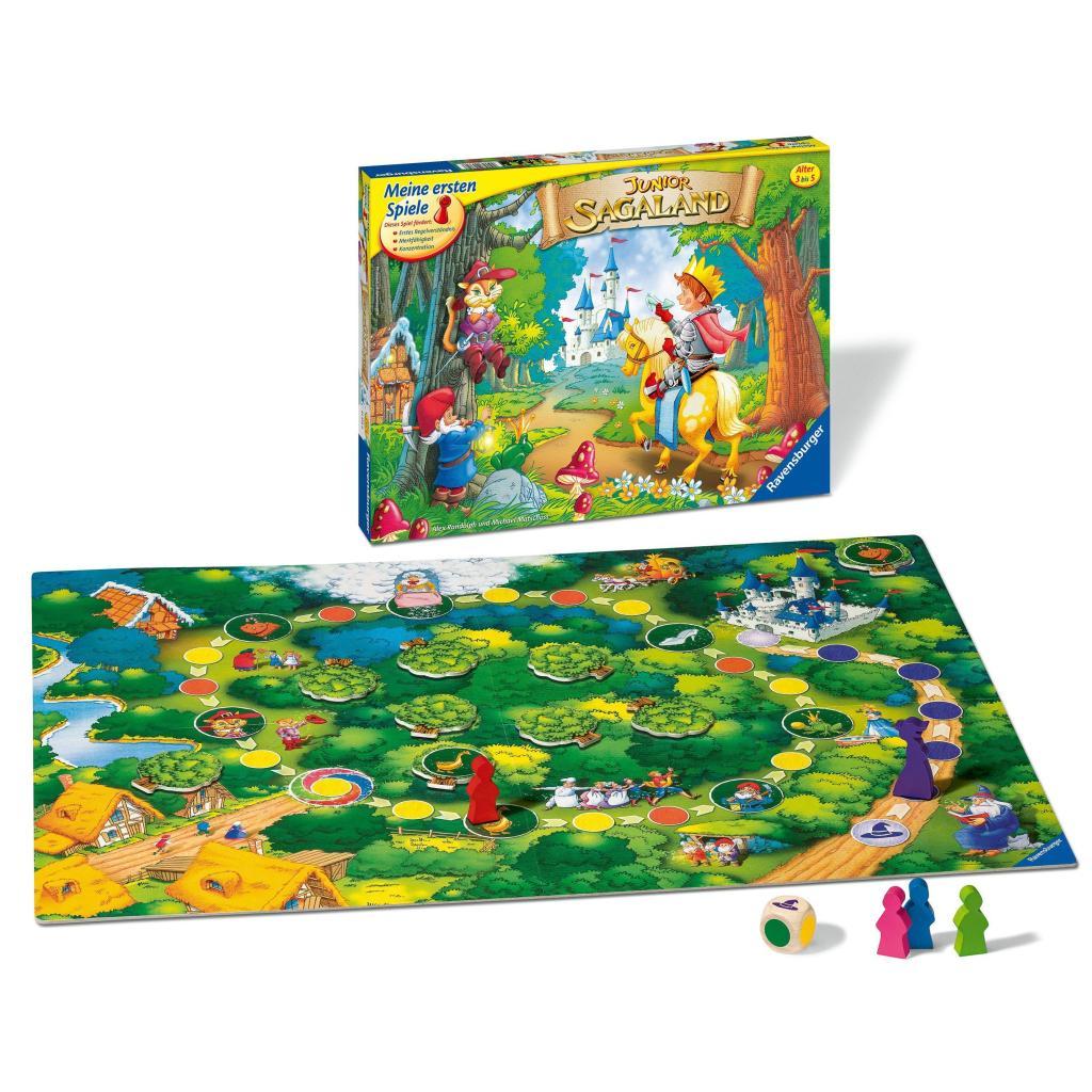 Sagaland ist seit mehr als 30 Jahren ein Spieleklassiker. Diese Juniorausgabe macht es möglich, dass auch schon Kinder ab 3 Jahren mitspielen und somit den Wald erkunden können. Ziel des Spiels ist es für alle gemeinsam, drei märchenhafte Gegenstände zu finden, bevor der Zauberer beim Schloss angekommen ist. Außerdem gibt es die Möglichkeit die Schwierigkeit des Spielablaufs für ältere Kinder zu erhöhen. Junior Sagaland ist eine tolle Geschenkidee und macht den Kleinen großen Spaß.