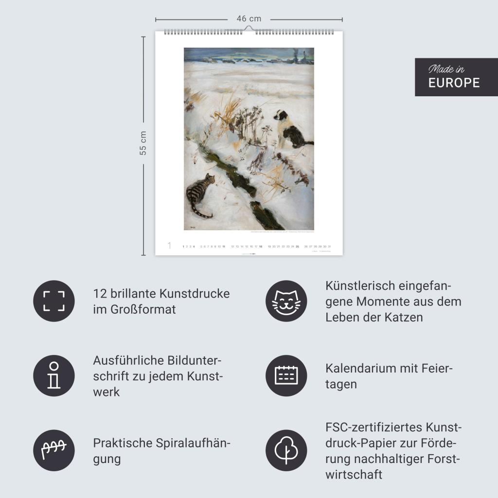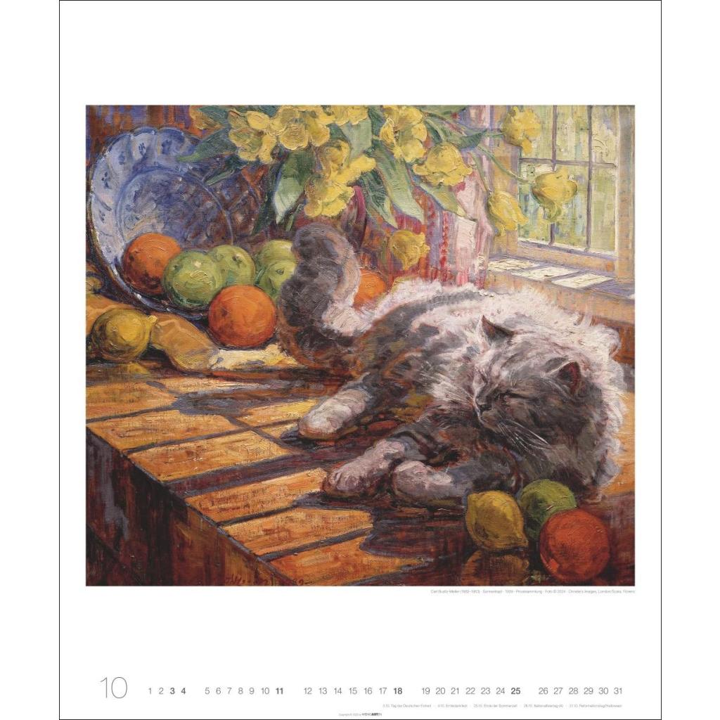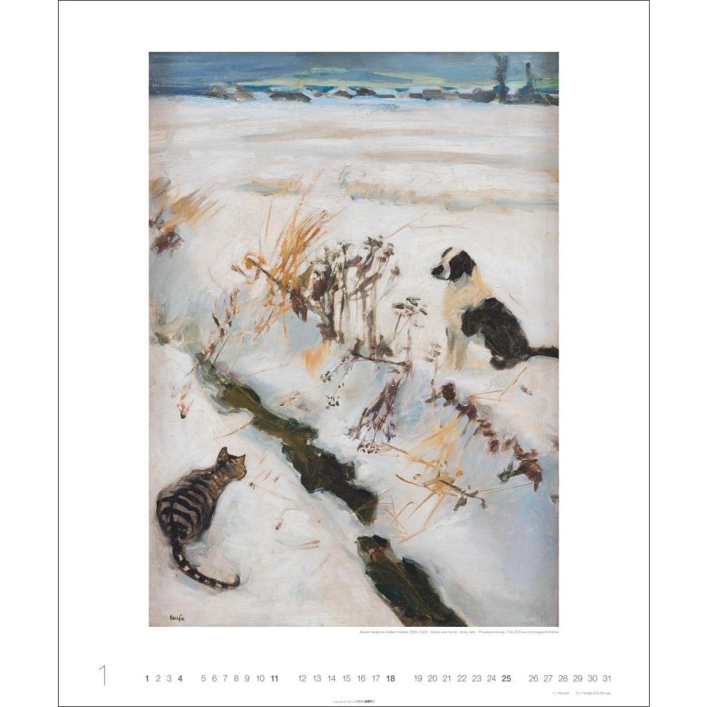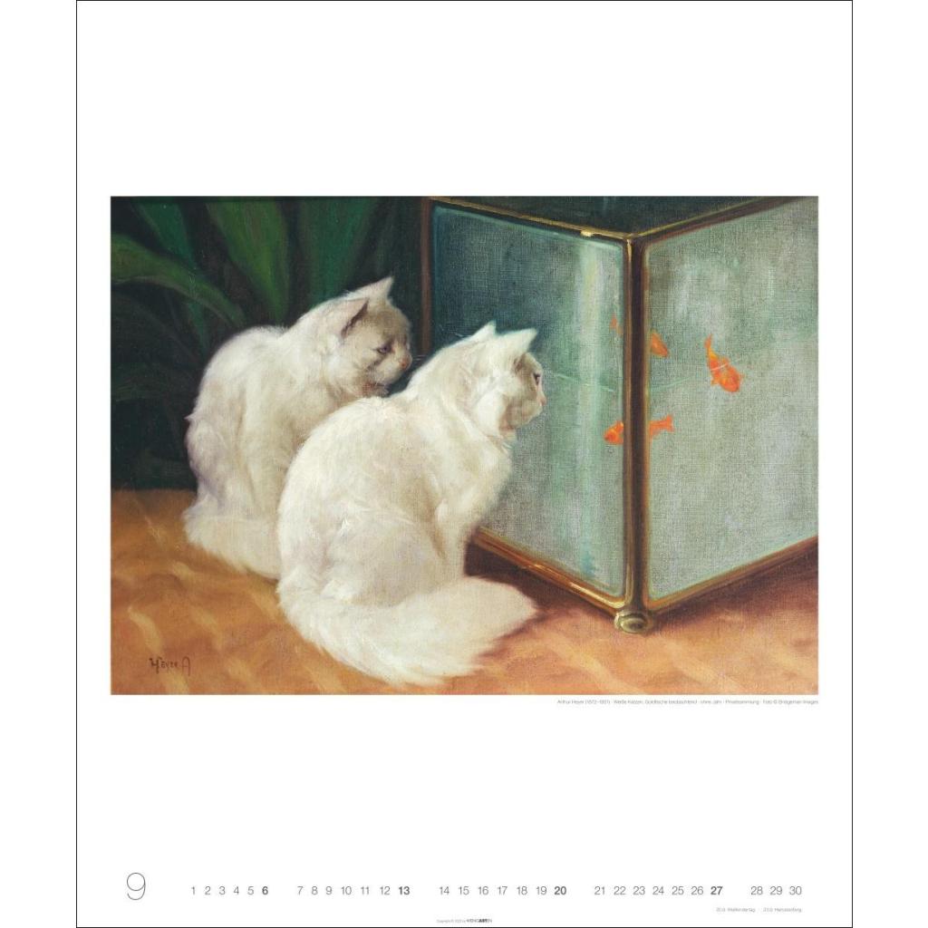 Samtpfoten im wohlverdienten Mittelpunkt: Katzen in der Malerei in einem Tier-Kunstkalender im Hochformat 46 x 55 cm