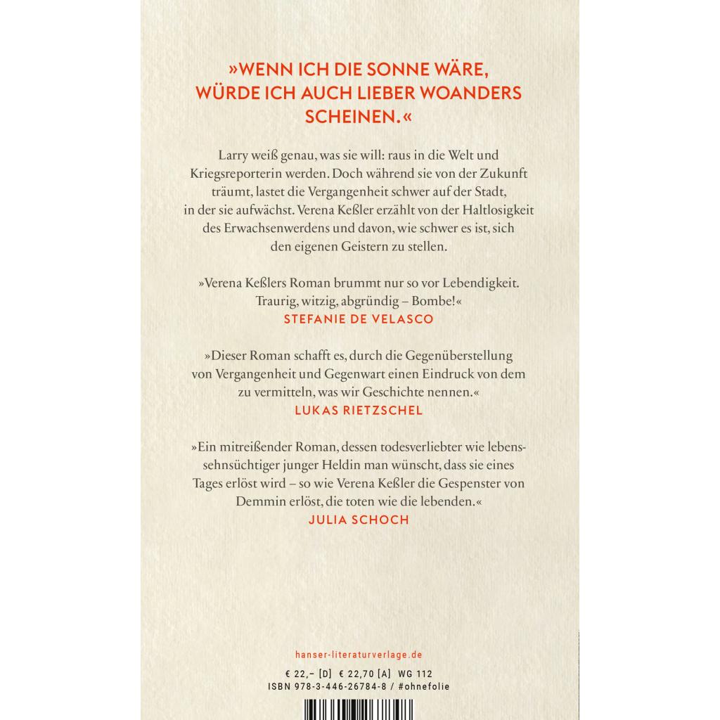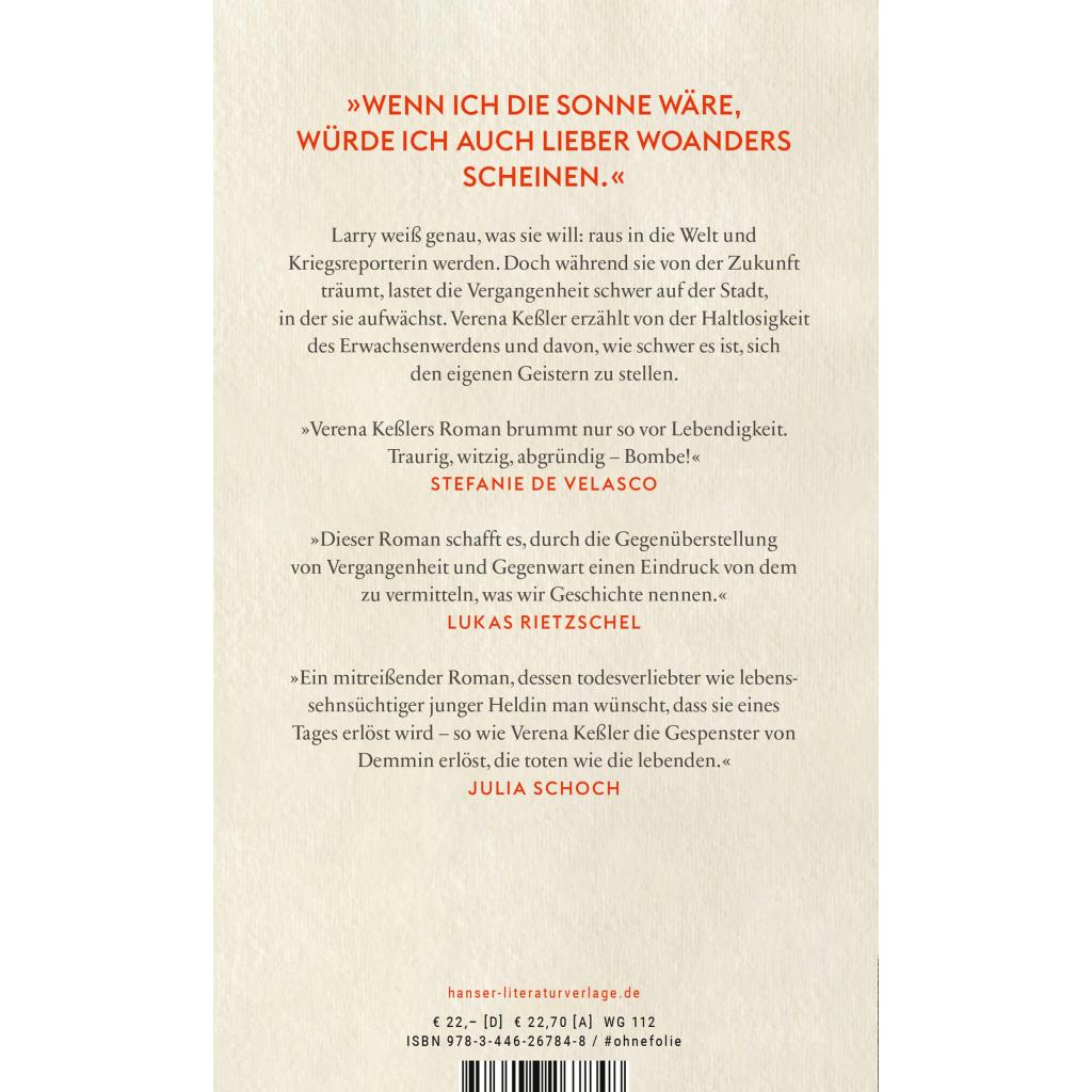 Wie sehr bestimmt die Geschichte unsere Gegenwart? Verena Keßlers Debüt über die Haltlosigkeit des Erwachsenwerdens "brummt nur so vor Lebendigkeit. Traurig, witzig, abgründig - Bombe!" Stefanie de Velasco Larry lebt in einer Stadt mit besonderer Geschichte - Ende des Zweiten Weltkriegs fand in Demmin der größte Massensuizid der deutschen Geschichte statt. Für Larry ist ihre Heimatstadt aber vor allem eins: langweilig. Sie will so schnell wie möglich raus in die Welt und Kriegsreporterin werden. Während Larry mit den Unzumutbarkeiten des Erwachsenwerdens kämpft, steht einer alten Frau der Umzug ins Seniorenheim bevor. Beim Aussortieren ihres Hausstands erinnert sie sich an das Kriegsende in Demmin und trifft eine folgenschwere Entscheidung. Mit Leichtigkeit und Witz erzählt Verena Keßler von Trauer und Einsamkeit, von Freundschaft und der ersten Liebe. Ein Roman über die Sprachlosigkeit zwischen den Generationen und die Möglichkeit, sie zu überwinden.