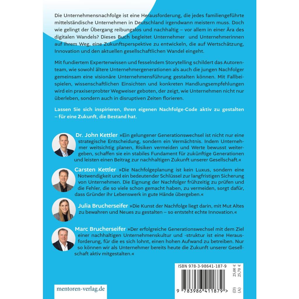 Unternehmensnachfolge ist eine der wichtigsten Entscheidungen im Leben eines Unternehmers - und oft eine der schwierigsten. Der Nachfolge-Code zeigt Schritt für Schritt, wie eine Übergabe gelingt, ohne Chaos, Konflikte oder unnötige Risiken. Die Autoren Dr. John Kettler, Carsten Kettler, Julia Brucherseifer und Marc Brucherseifer verbinden fundiertes Fachwissen mit echter Praxiserfahrung und machen komplexe Zusammenhänge leicht verständlich. Leserinnen und Leser erfahren, wie sie rechtzeitig planen, typische Fallstricke vermeiden und eine Nachfolge gestalten, die Zukunft sichert - für das Unternehmen, die Familie und die Menschen, die dahinterstehen. Ein klarer, kompakter und hilfreicher Leitfaden für alle, die eine erfolgreiche und wertbewahrende Übergabe anstreben.