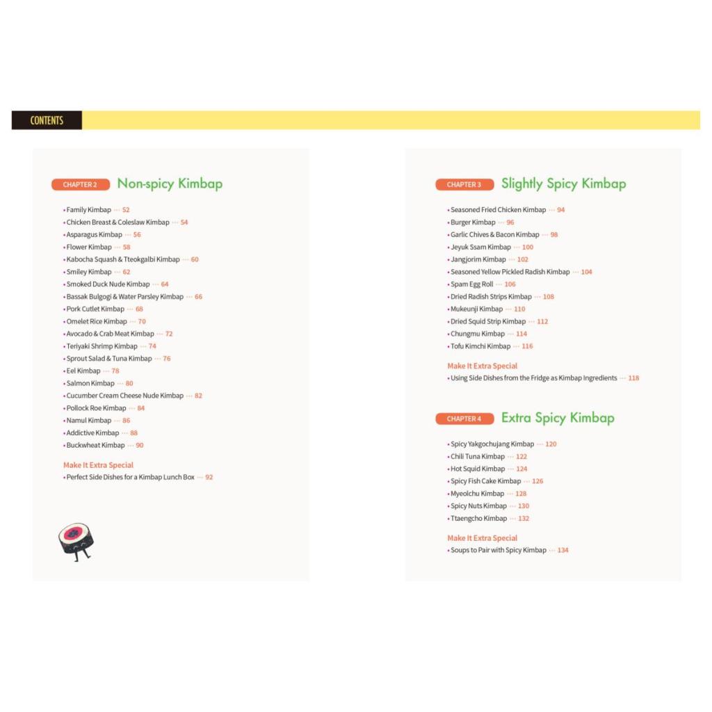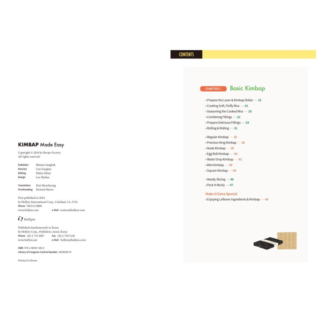 Explore Classic Korean Rice Rolls - 46 Easy-to-follow Kimbap recipes From basic kimbap to extra-special kimbap, this cookbook will help you make kimbap at home while capturing the texture and flavor of each ingredient. You'll find 46 mouth-watering kimbap recipes here, each developed and tested by the test kitchen team at Recipe Factory, a company that has long specialized in menu development. At the beginning of the book, everything about the process of making kimbap is explained from A to Z in an easy-to-understand manner so that even beginners who have never made kimbap before can follow along. There are also detailed tips on how to overcome common mistakes, with answers provided to many of the questions you may have during the preparation process. From the middle part of the book, the recipes are organized by spiciness level so that you can choose the kimbap that best suits your preferred taste. The book also introduces ways to customize your kimbap by adding different seasonings and fillings, as well as by changing the type of rice you add and the way you roll it. Through this compact-sized book, which is as easy to hold in one hand as a piece of bite-sized kimbap, readers unfamiliar with this Korean classic dish can now make and enjoy authentic Korean kimbap.