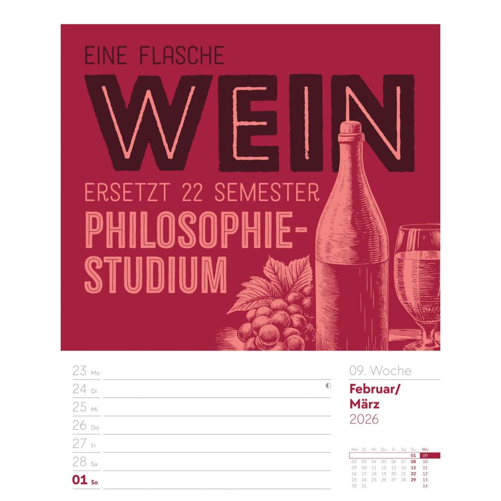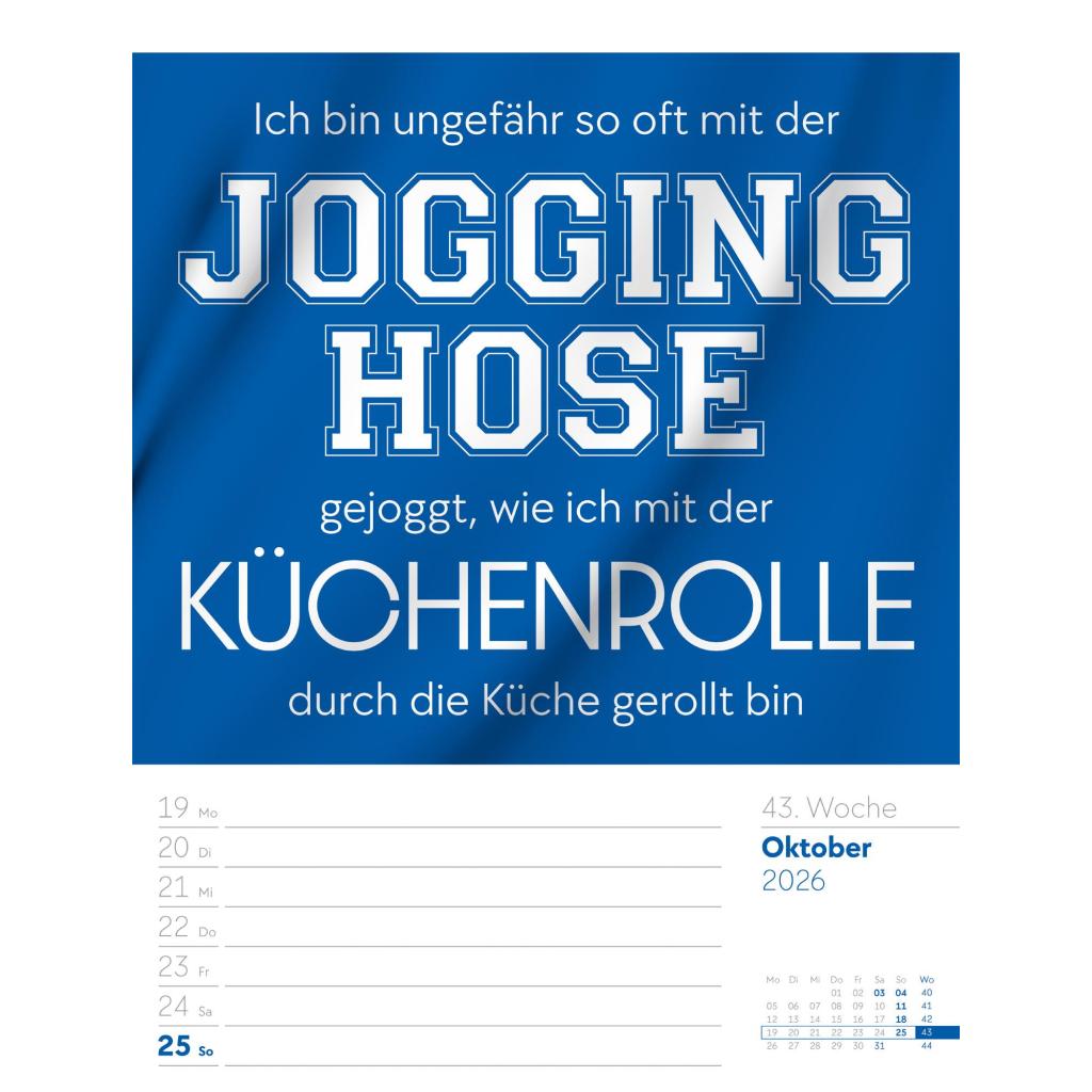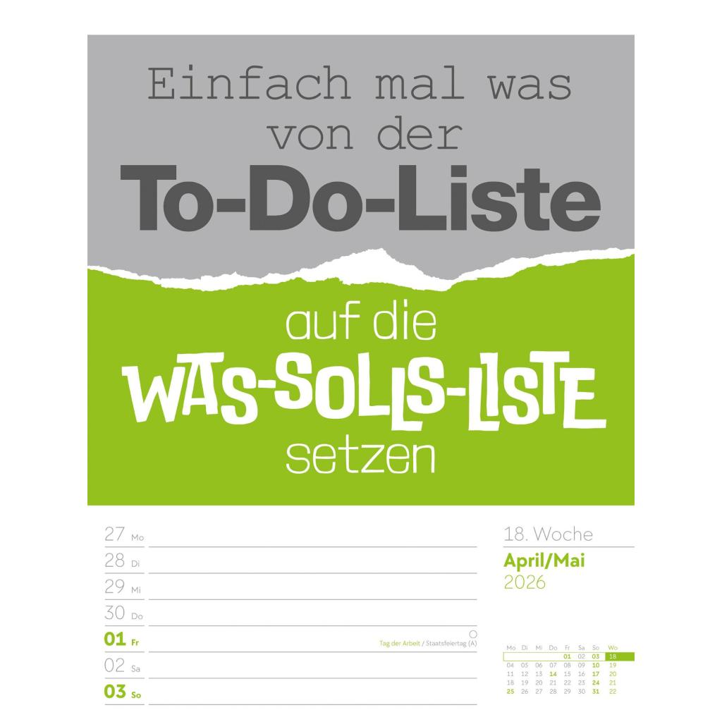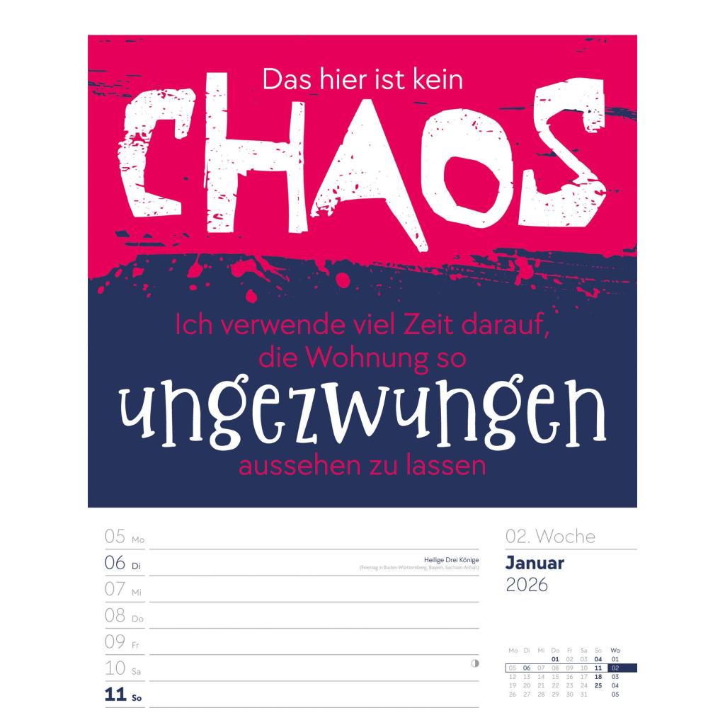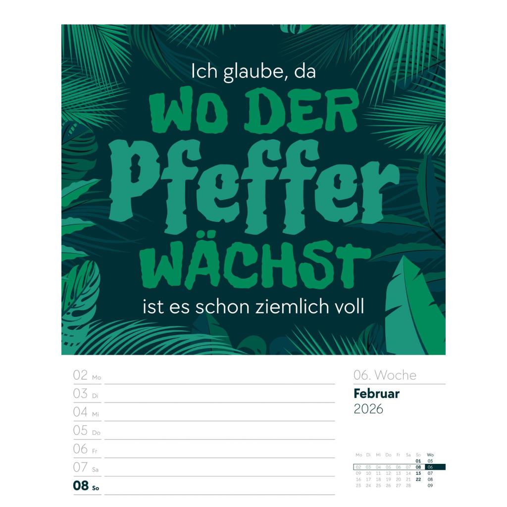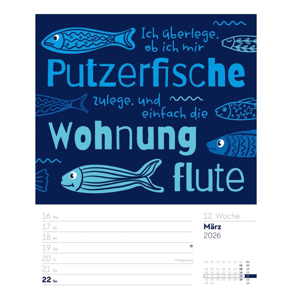 Humorvoller Typo-Wochenkalender im Hochformat (25x33 cm) | Mit lustigen Sprüchen und Rätseln