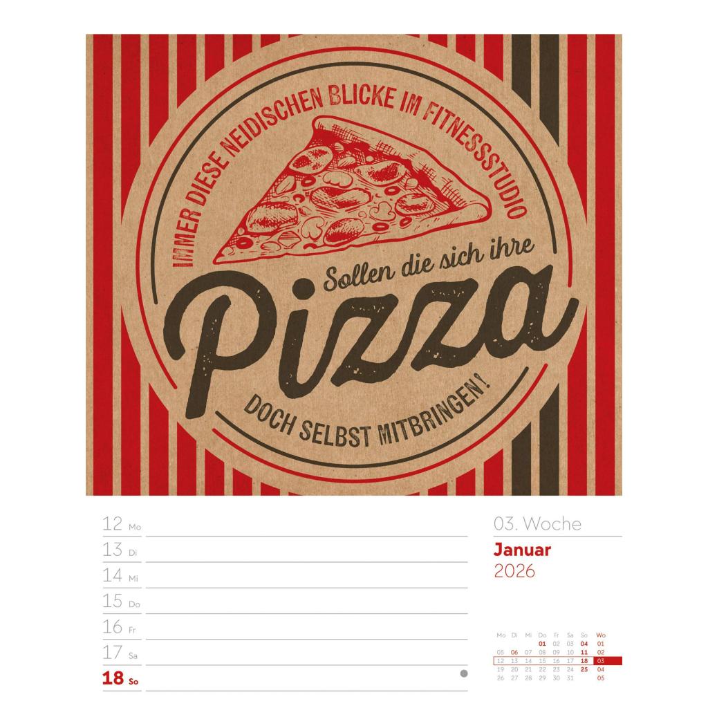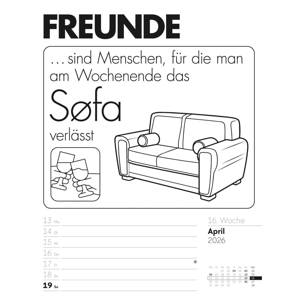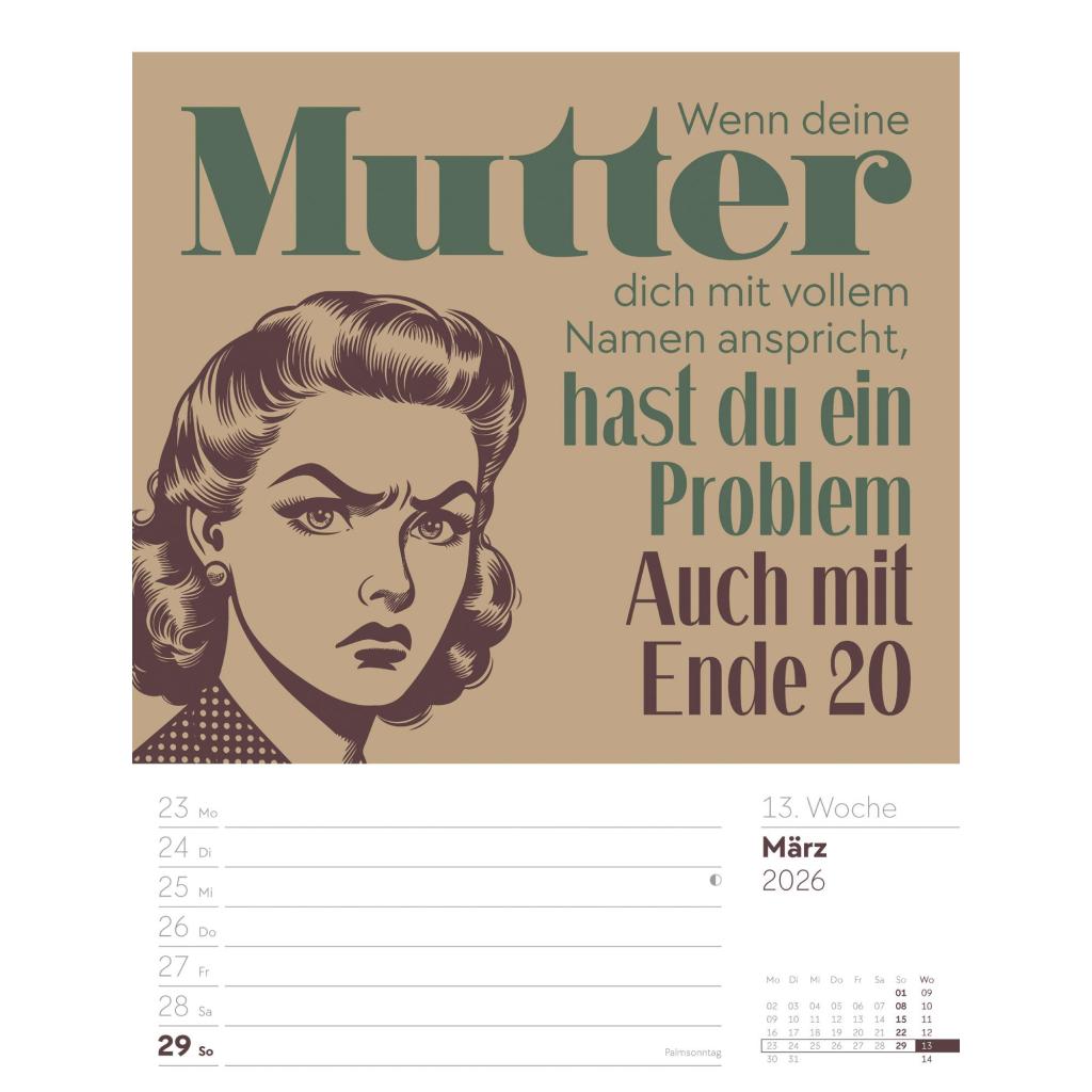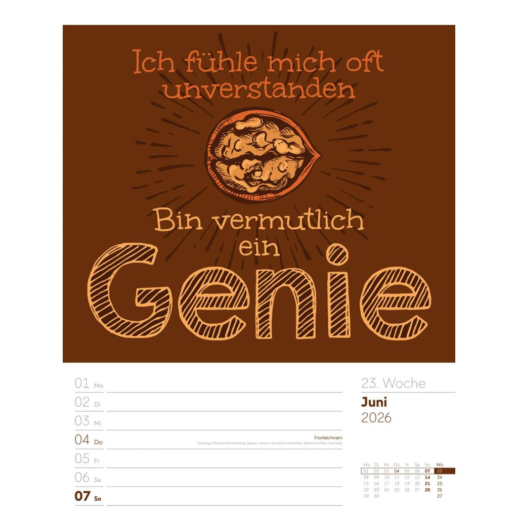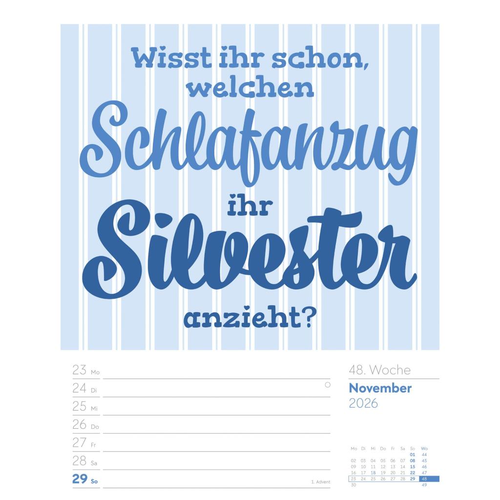 Humorvoller Typo-Wochenkalender im Hochformat (25x33 cm) | Mit lustigen Sprüchen und Rätseln