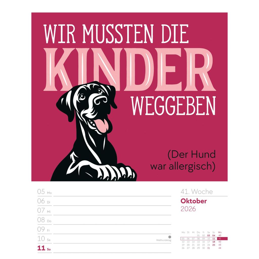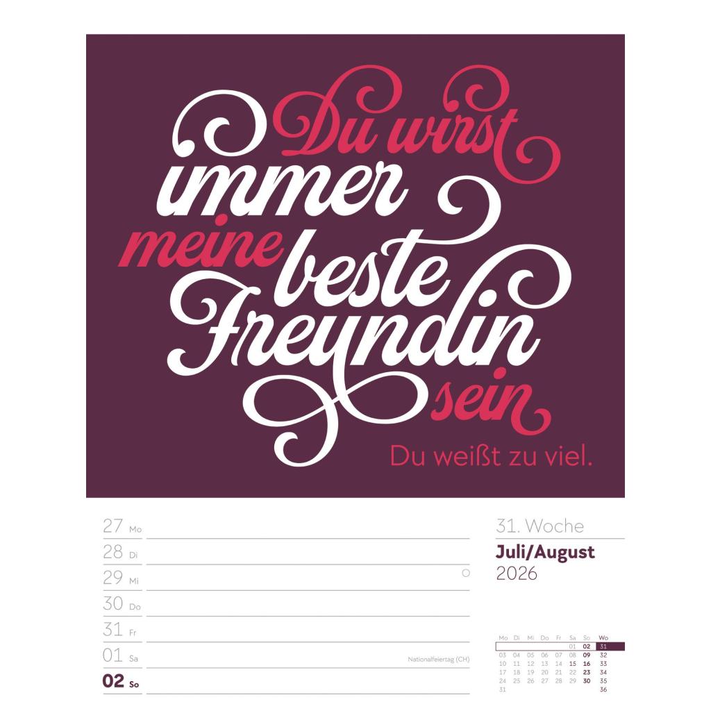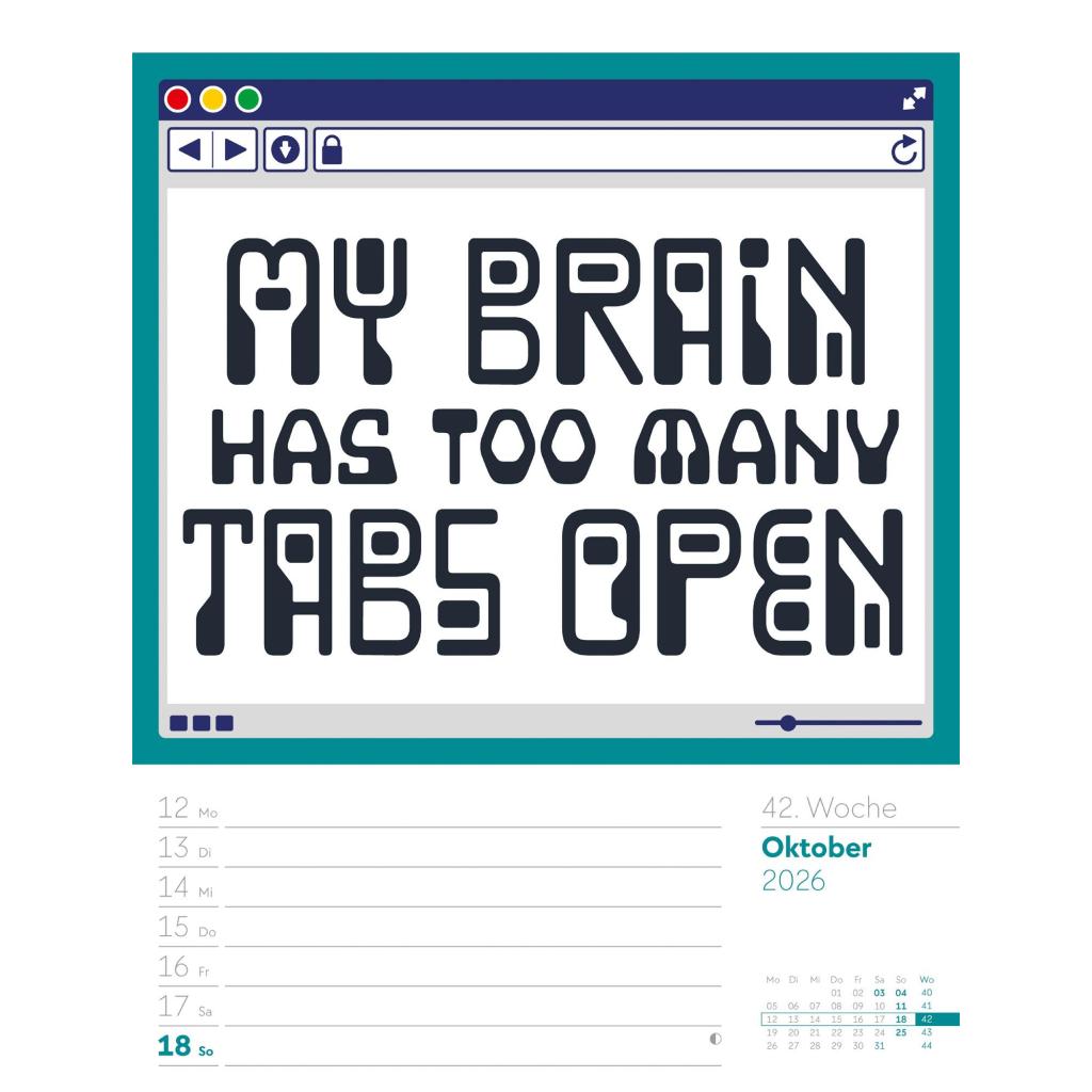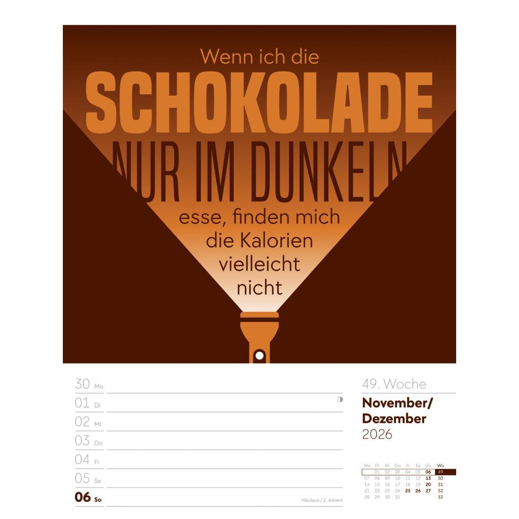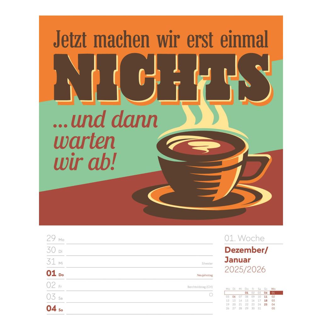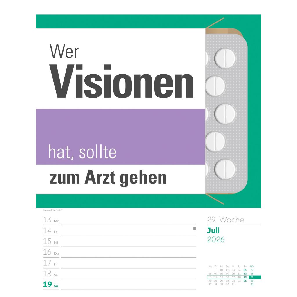 Humorvoller Typo-Wochenkalender im Hochformat (25x33 cm) | Mit lustigen Sprüchen und Rätseln
