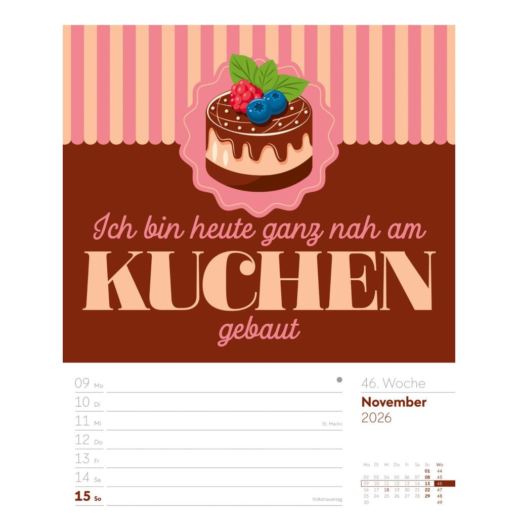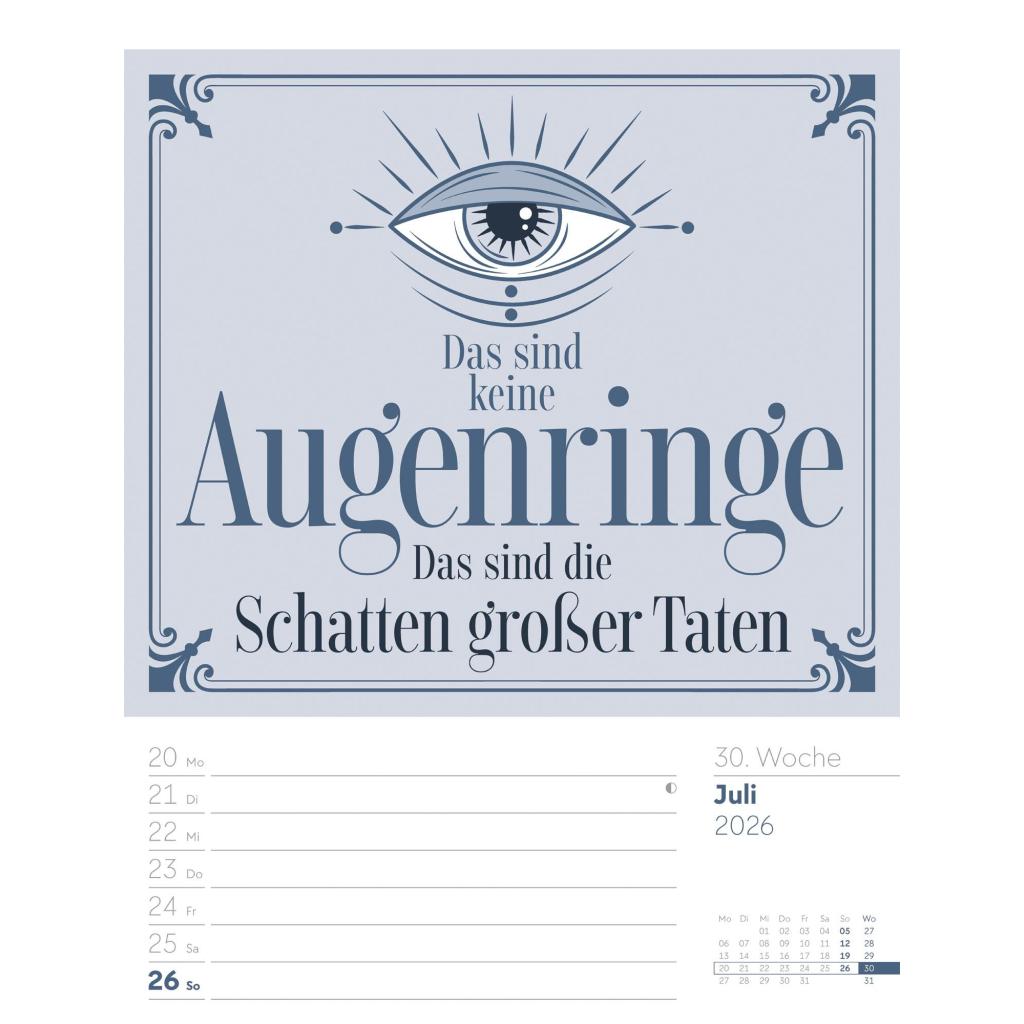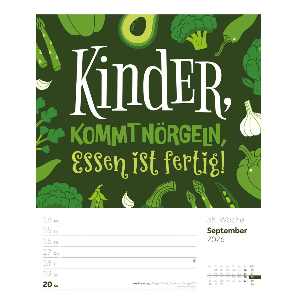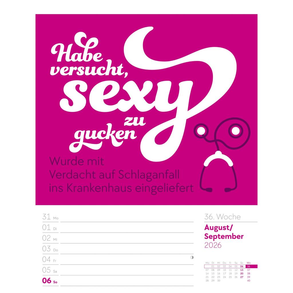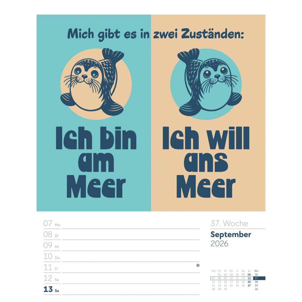 | Fachschema: | Kalender / Humor, Satire, Cartoons, Comic~Kalender / Wandkalender~Kalender / Zitate, Sprüche~Kunst / Kalender~Rätsel / Kalender |