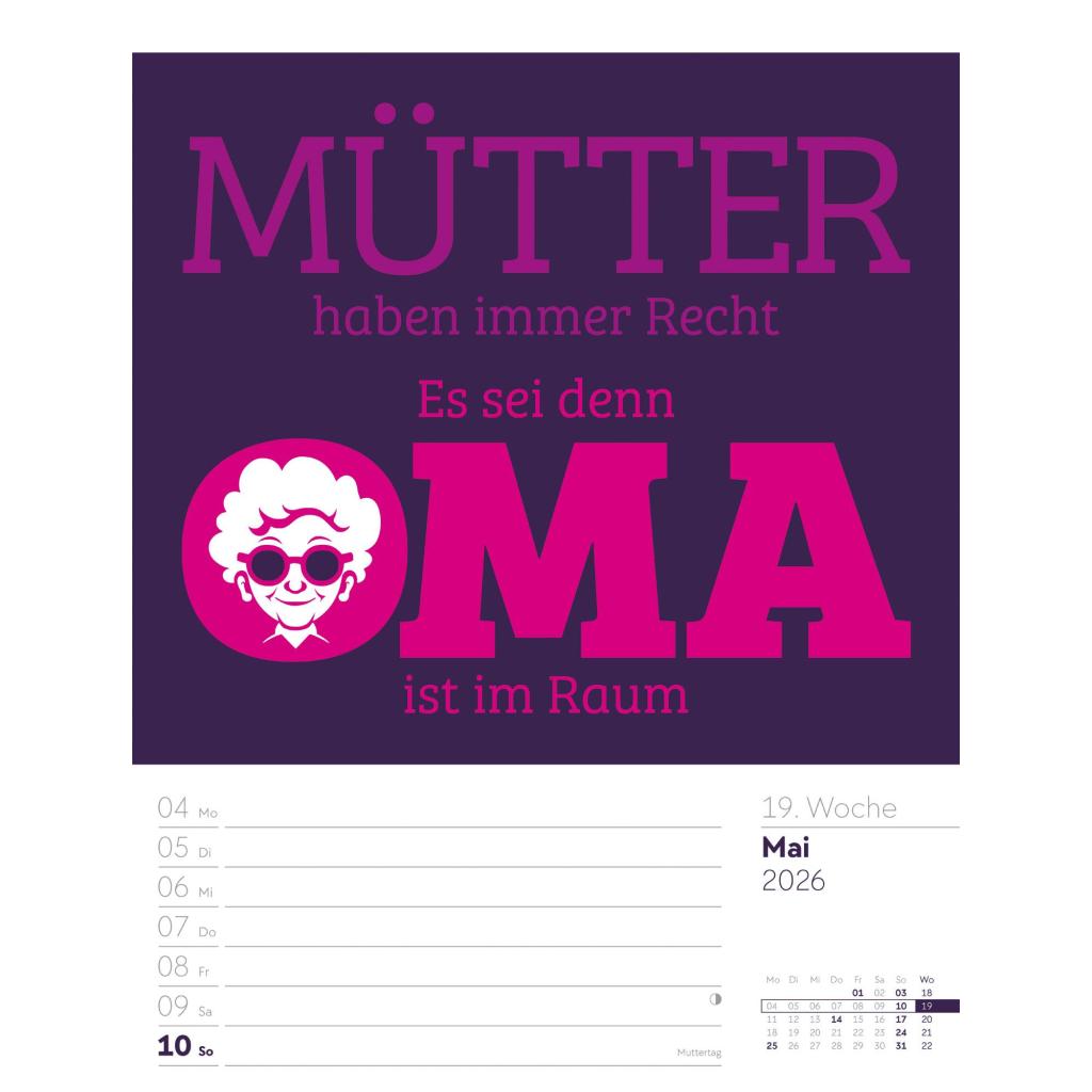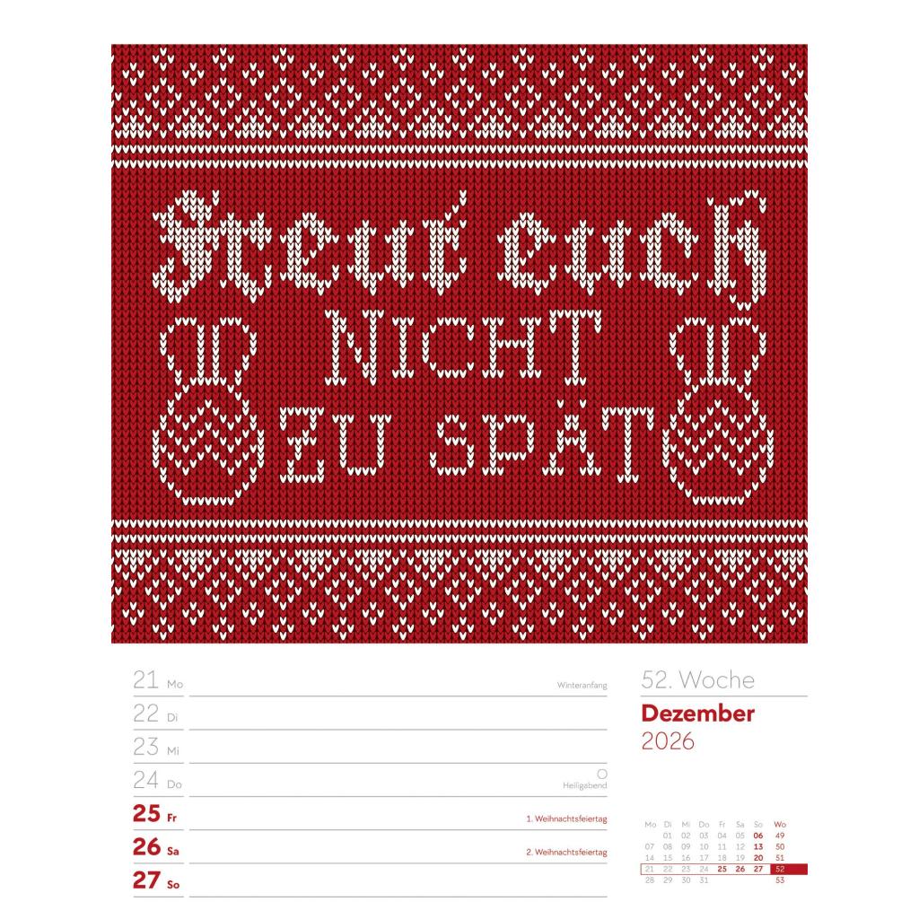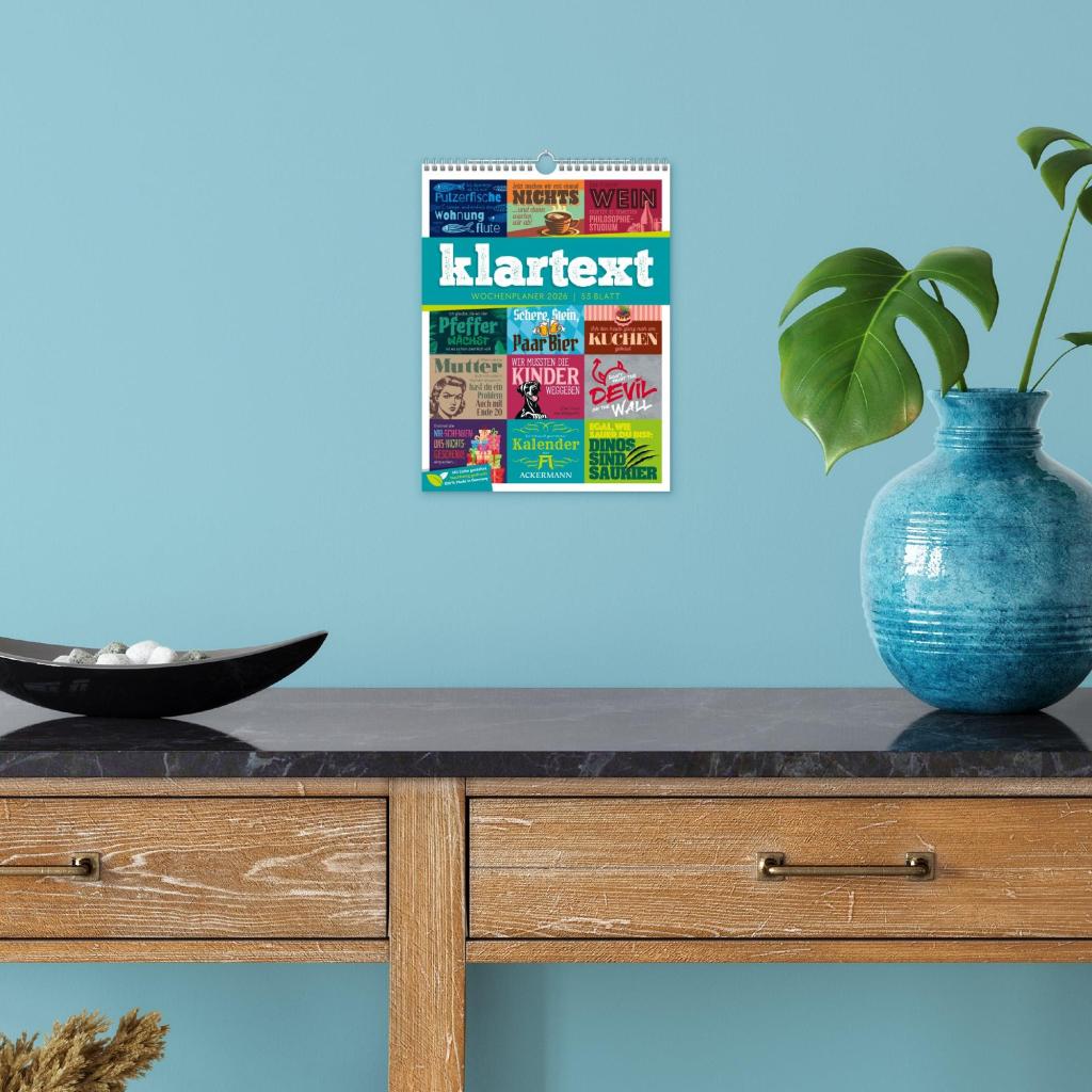 | Keyword: | Ackermann; Rätsel; Sprüche; Typo; Wandplaner; Wochenkalender |